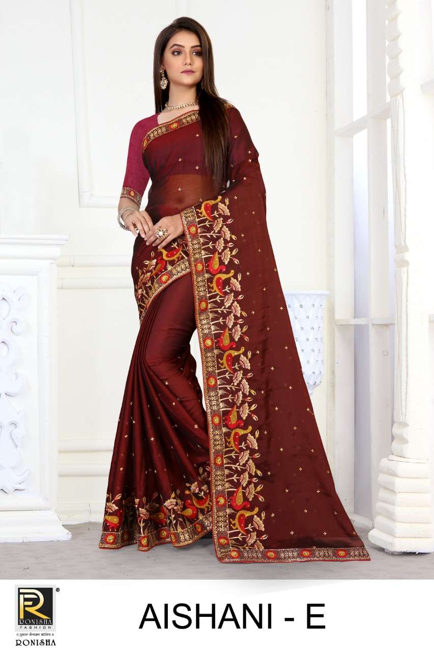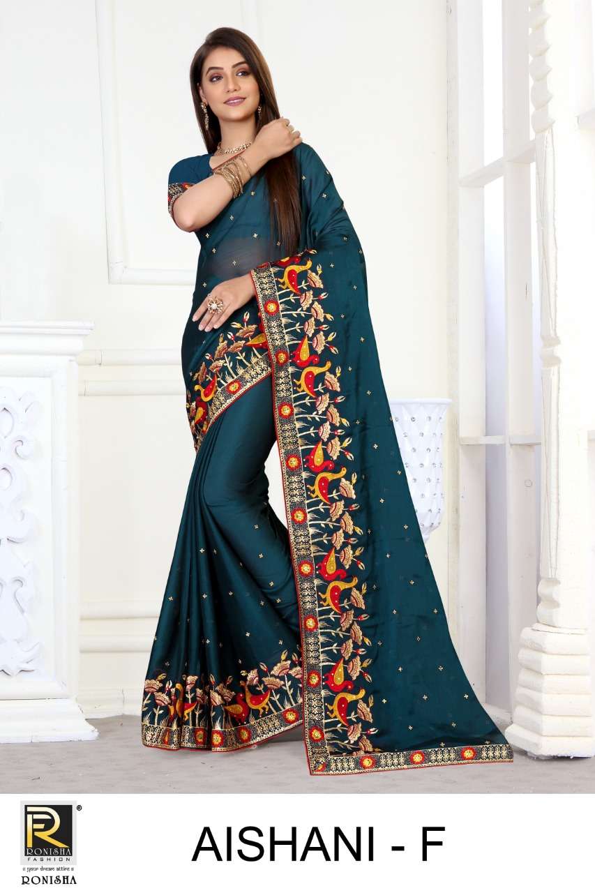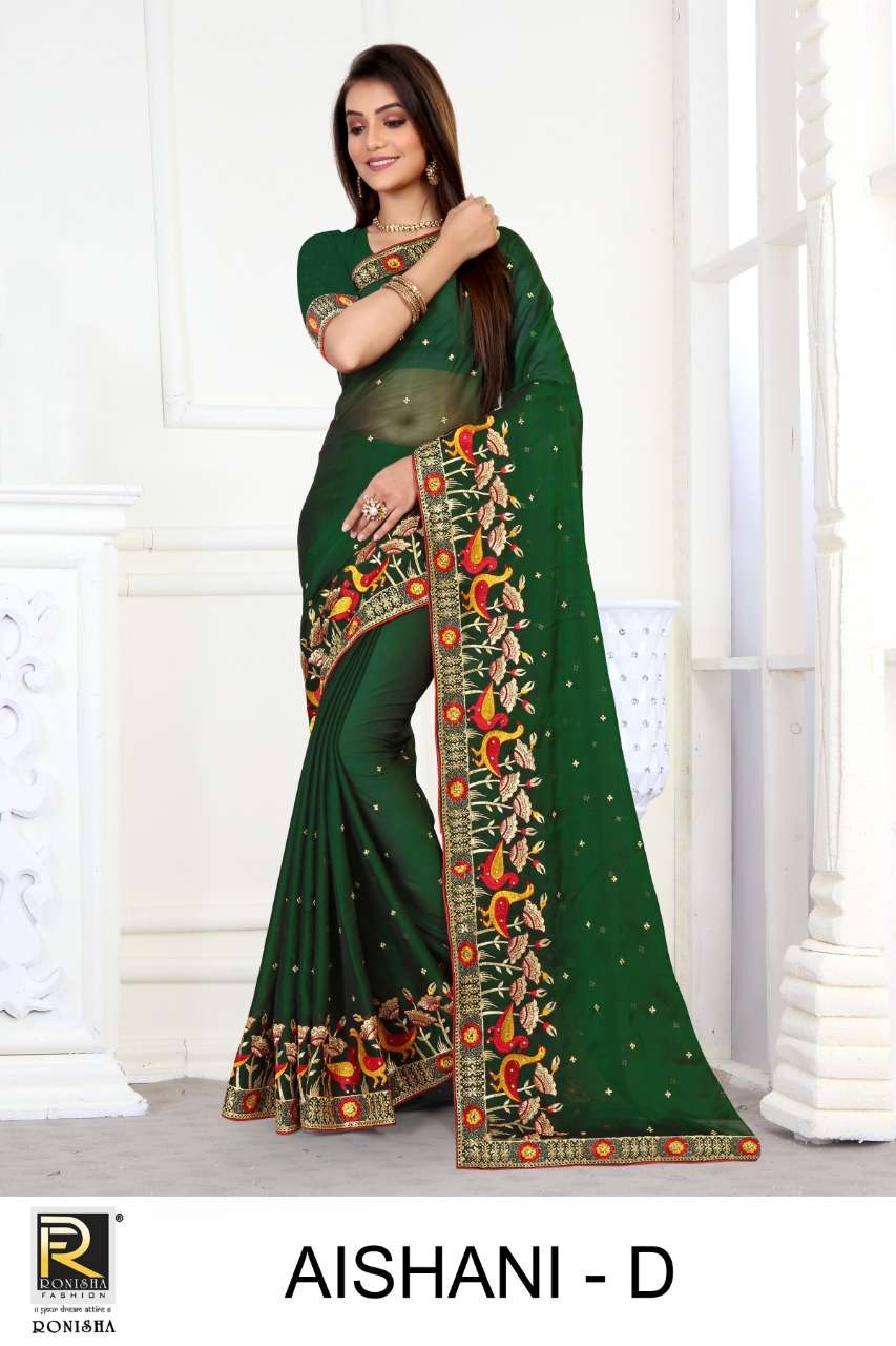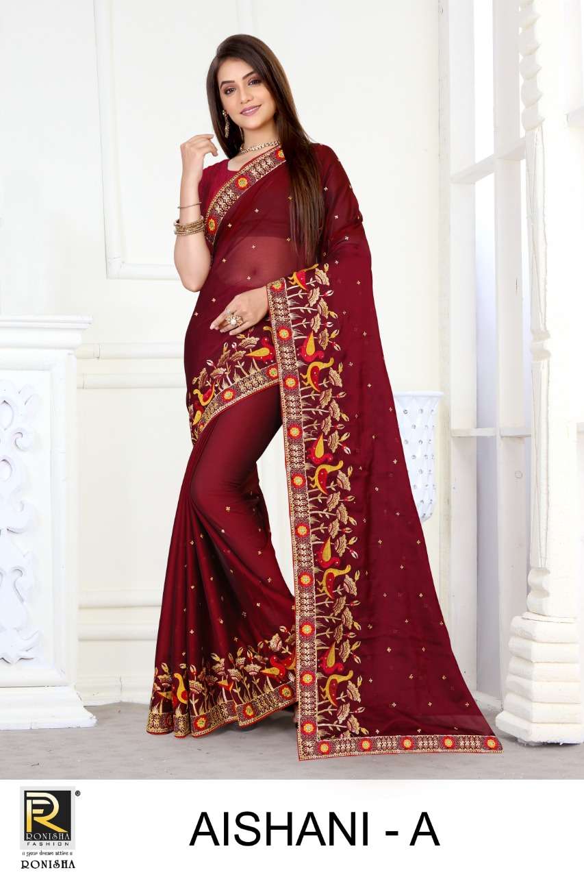 AISHANI BY RANJNA SAREES CIFFONE EMBROIDERY WORK HEAVY DIAMOND SAREES COLLECTION
