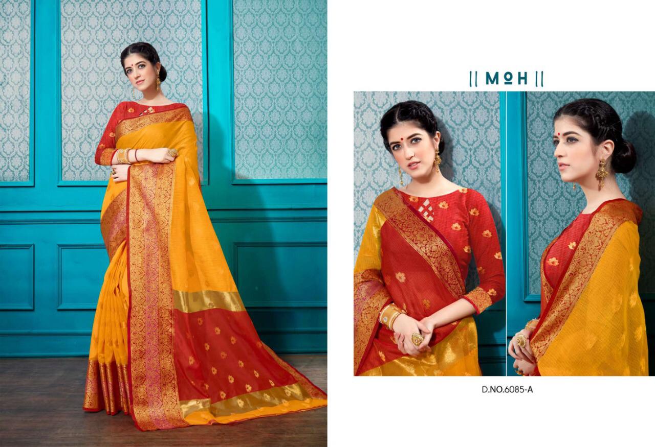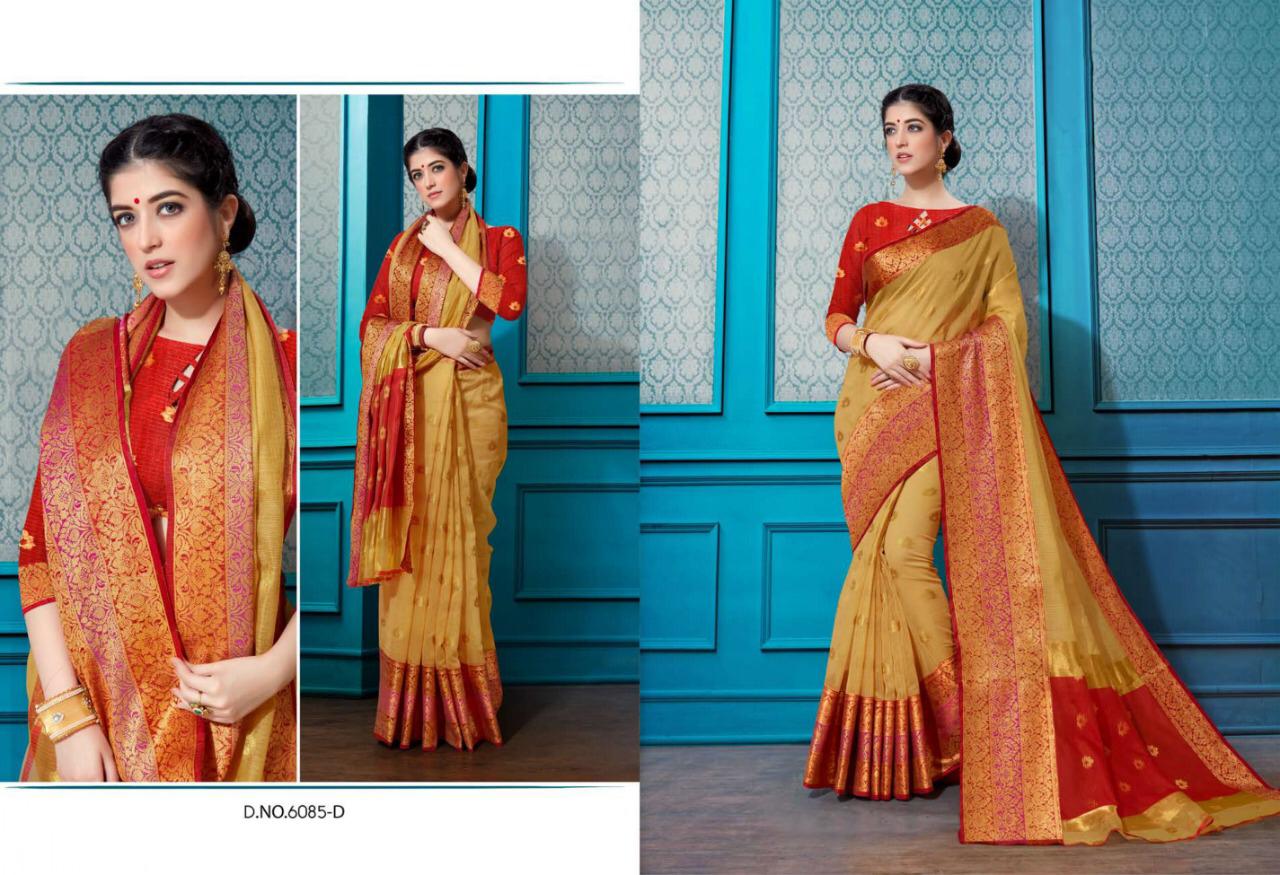 Type - saree. Catlog name - KANYADAN VOL-3. Fabric- Cotton silk . Rate- 495 per Pcs . Set to set. GST 5 Percent Extra. Delivery from today. |