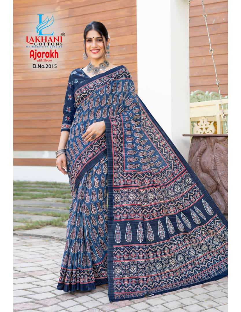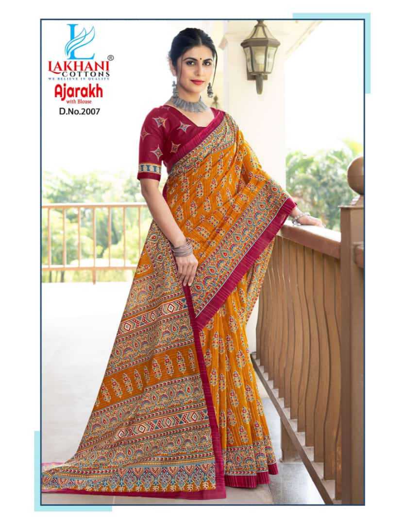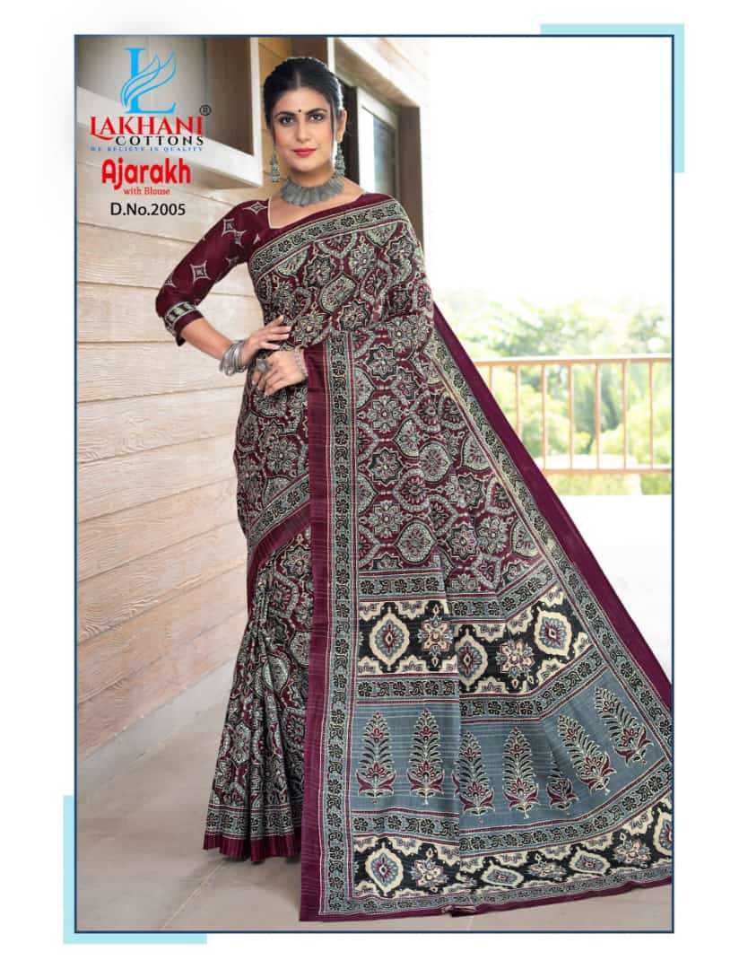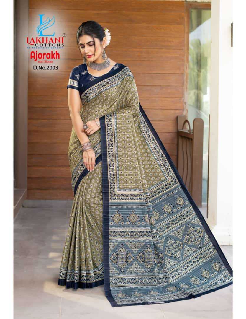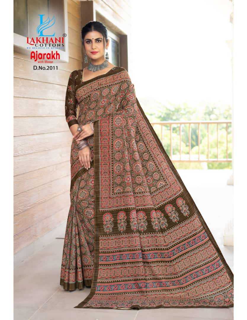 LAKHANI COTTON AJARAKH VOL 2 PURE COTTON MALAI COTTON SAREE WITH BLOUSE PCS :- 20 |