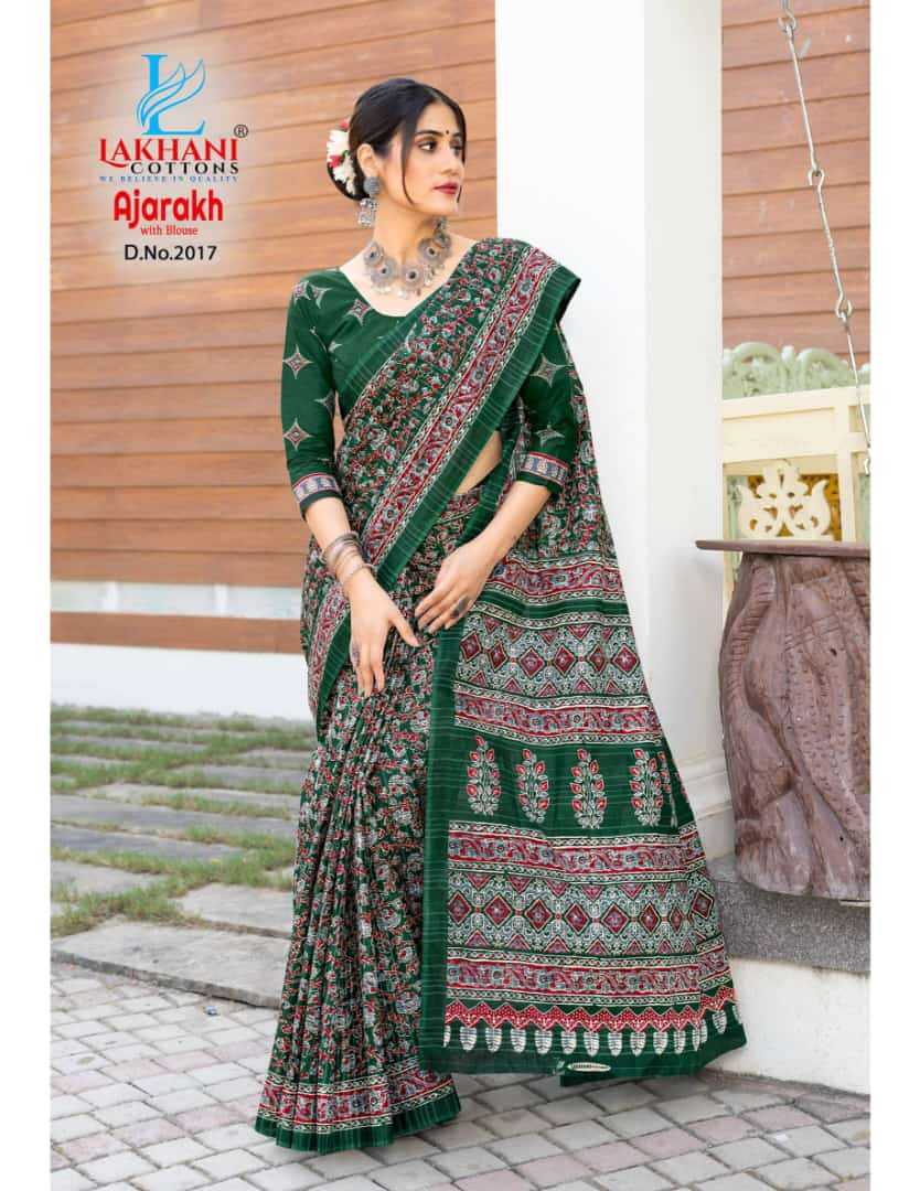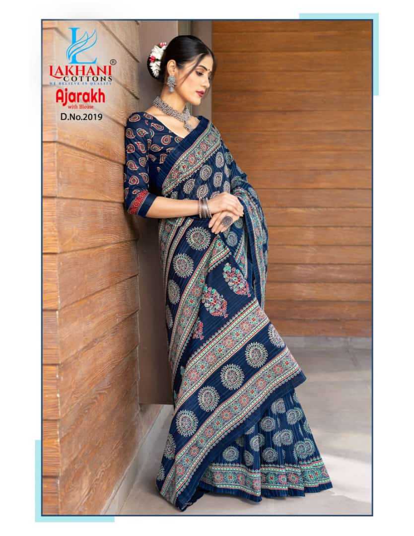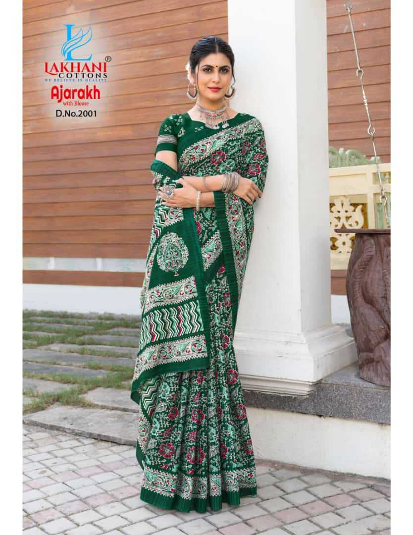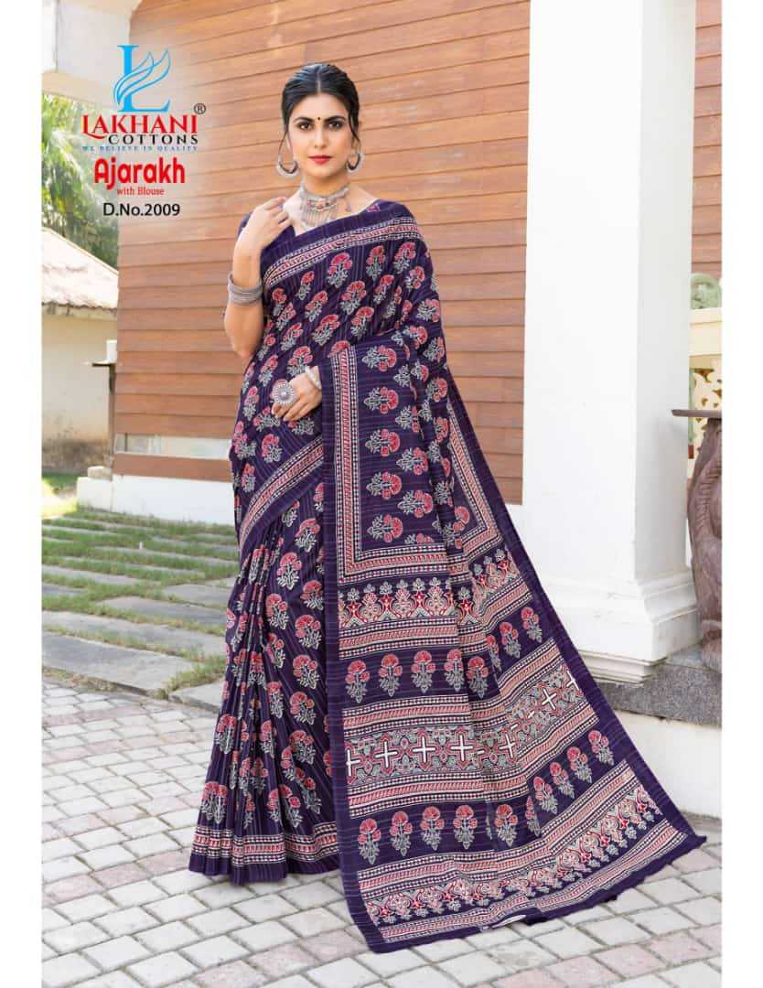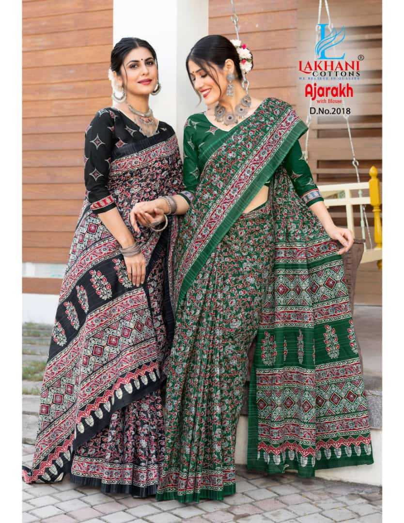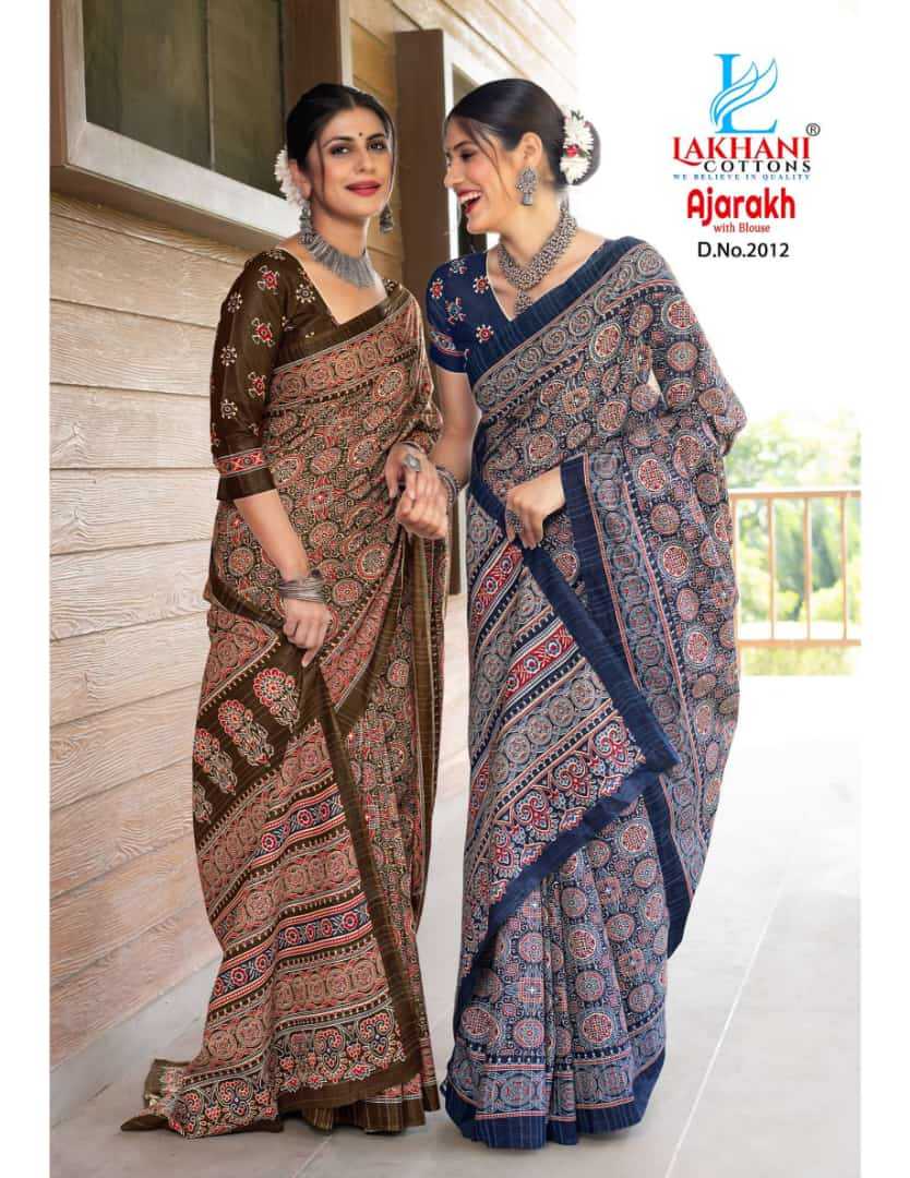 LAKHANI COTTON AJARAKH VOL 2 PURE COTTON MALAI COTTON SAREE WITH BLOUSE PCS :- 20 |