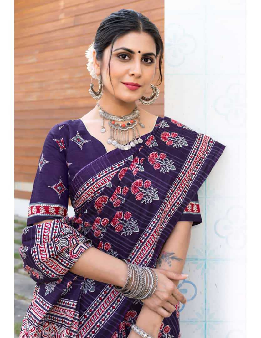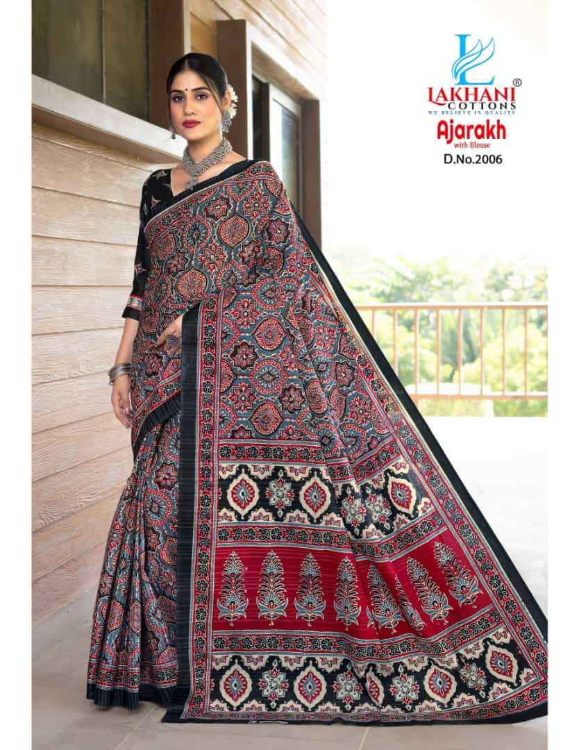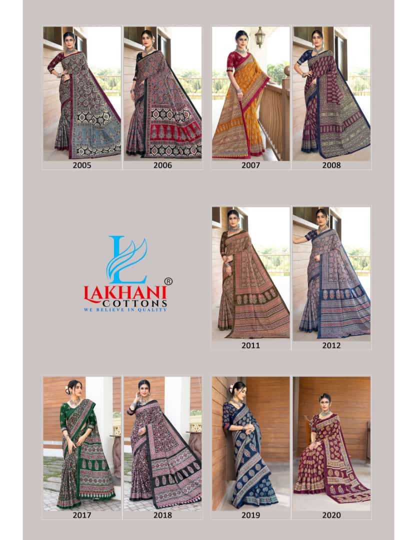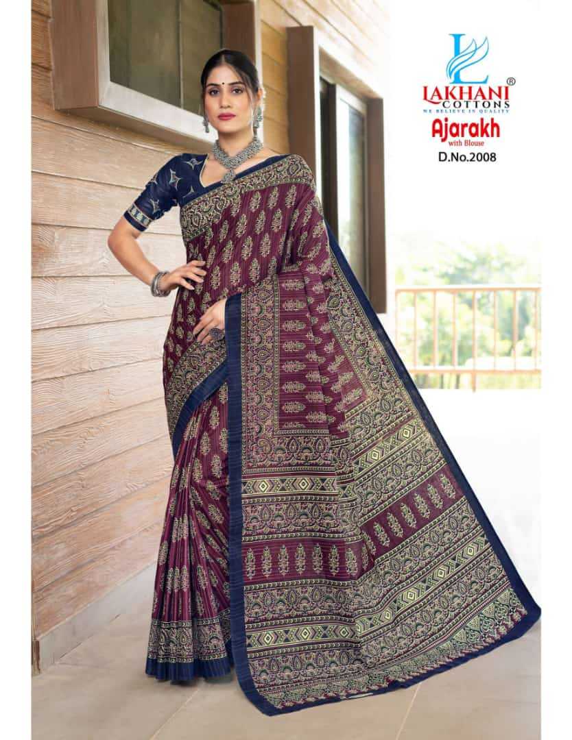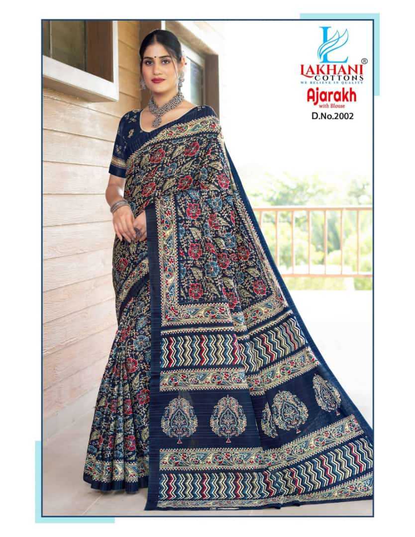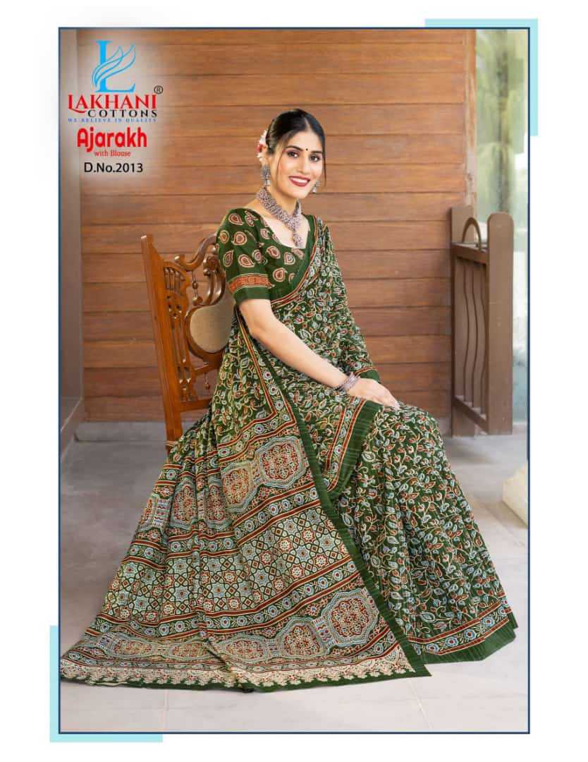 LAKHANI COTTON AJARAKH VOL 2 PURE COTTON MALAI COTTON SAREE WITH BLOUSE PCS :- 20 |