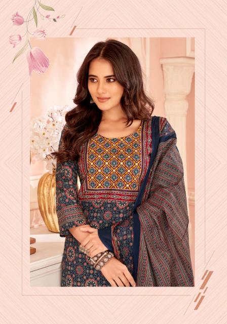Catalog :- 🌞 AJARAKH VOL 5 🌞 👗TOP :- Fully stich Pure Cotton ajarakh print with beautiful neck thread work Bottom :- Pure cotton pant with fancy Style Rate :- 540/- ☣Designs :- 10 pcs PACKING DETAILS