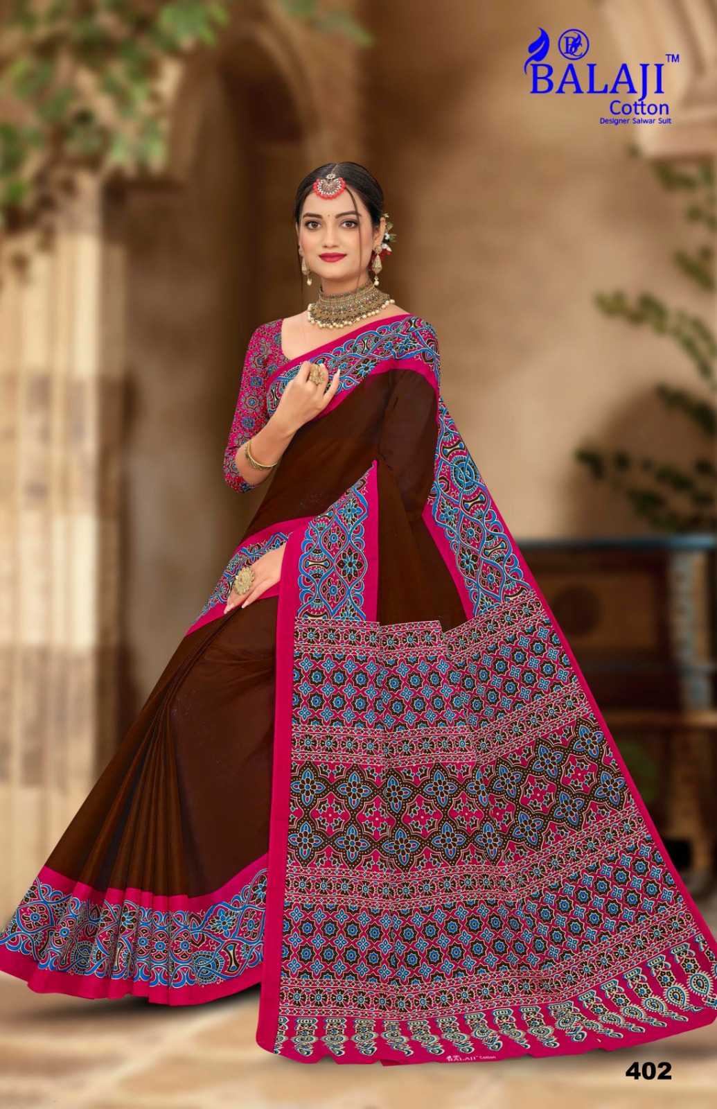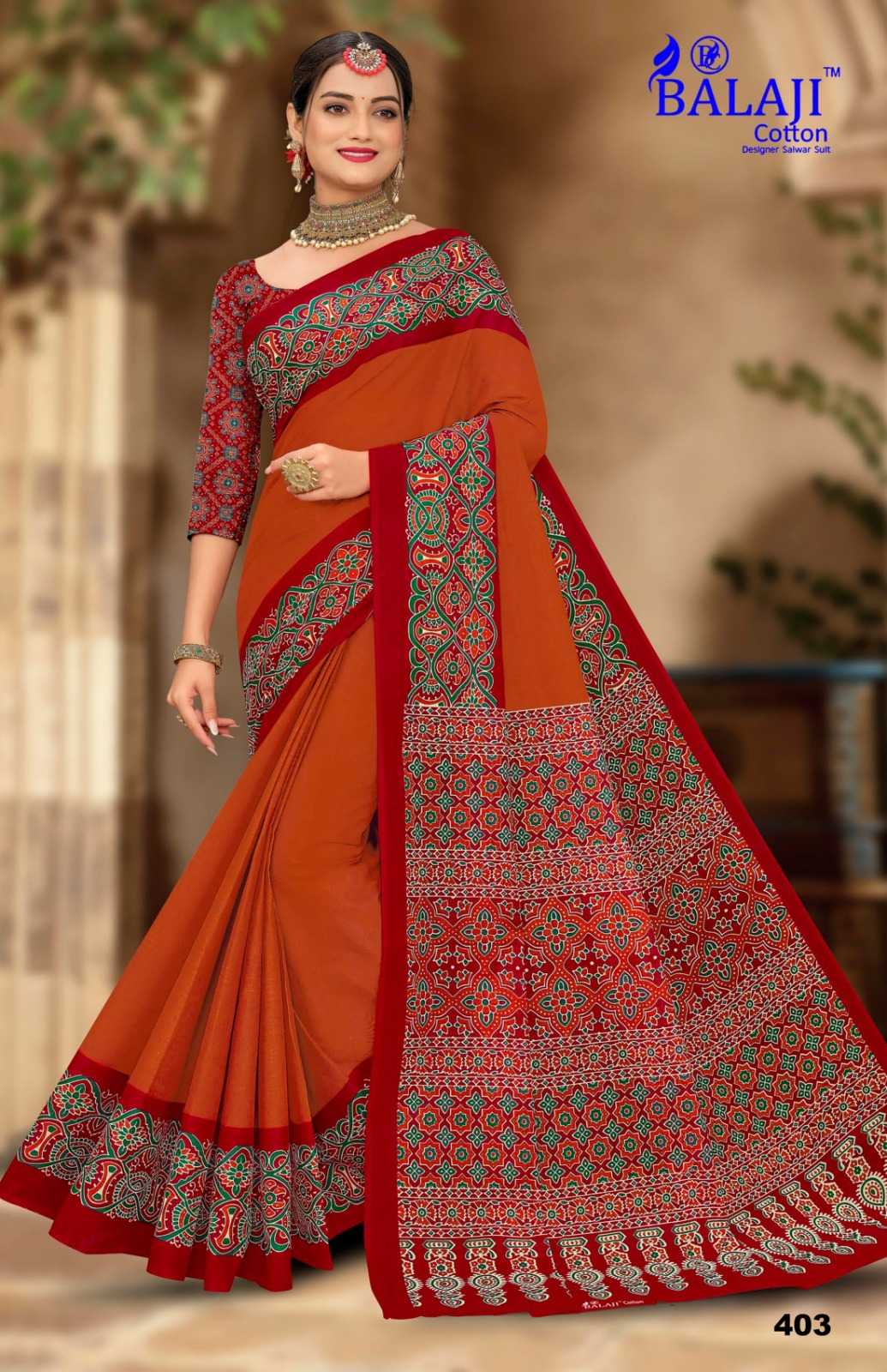 BALAJI COTTON AJARK MASLEEN VOL 4 COTTON SAREE WITH BLOUSE RATE 315/- PC :- 10 |