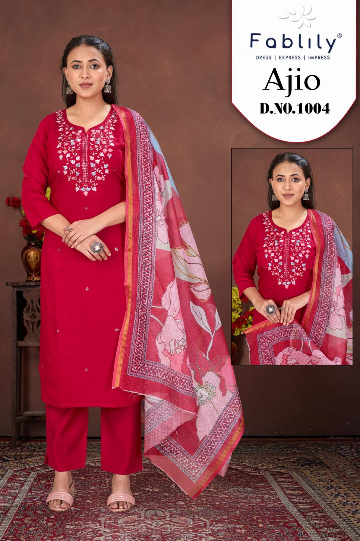 ajio by fablily readymade luxurious silk berline silk combo suit for womens