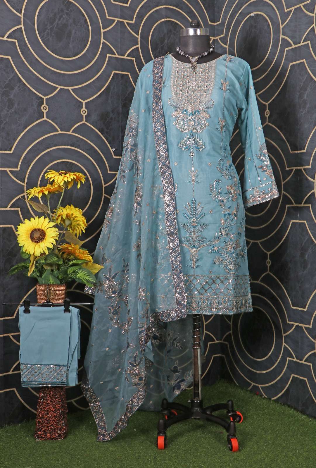 ----AJRAA---- DNO - P106A TO P106C 👗TOP - PURE ORGENZA WITH EMBROIDERY AND KHATLI HAND WORK 👖BOTTOM - VISCOUS SILK WITH EMBROIDERY WORK 🏳️🌈DUPPATA - PURE ORGENZA DIGITAL PRINT WITH EMBROIDERY SIZE - L - 40 |