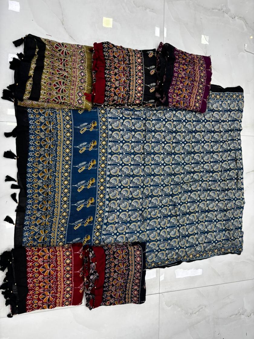 BOOK CATALOGUE AJRAKH DUPATTA ON KRISHNA CREATION. CALL ON +91-8866778727.