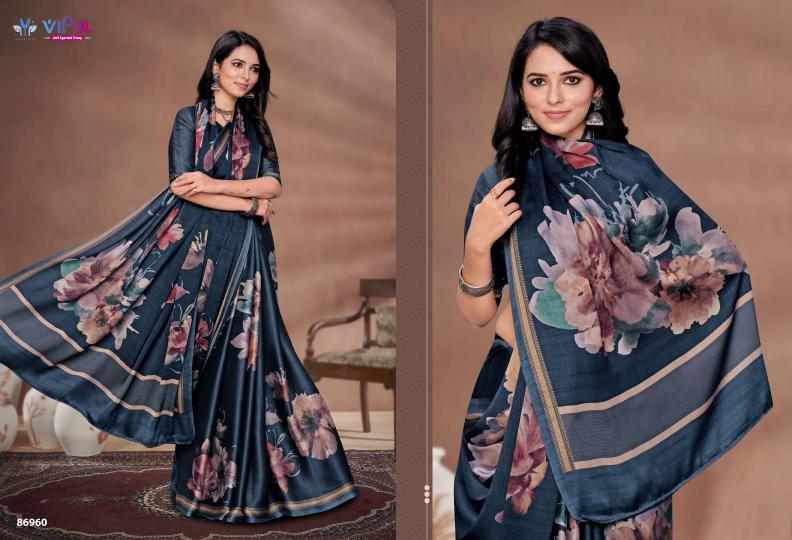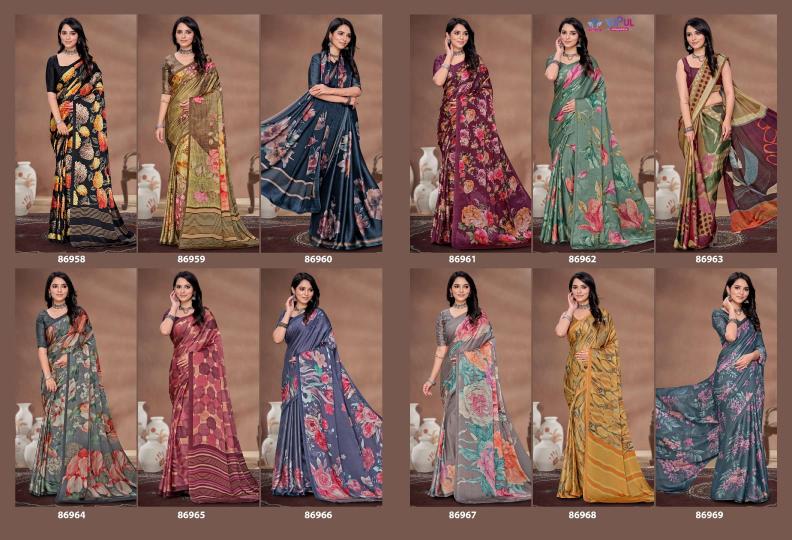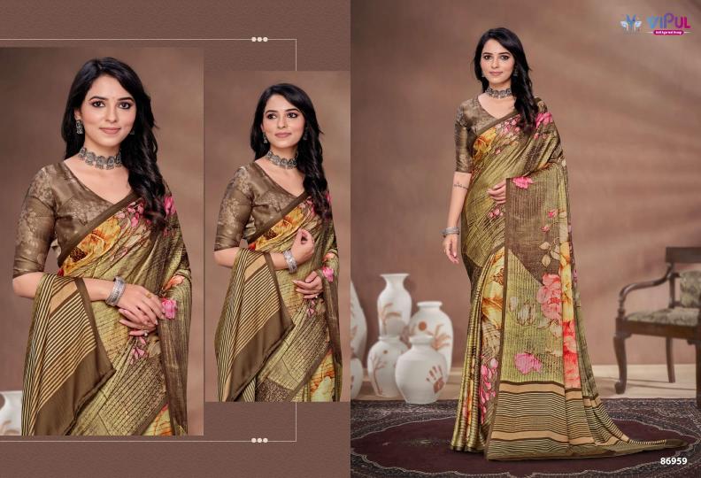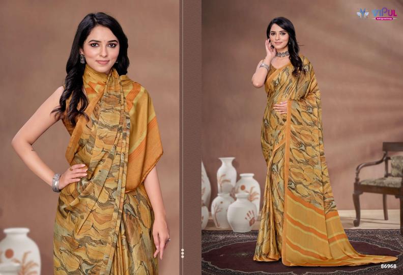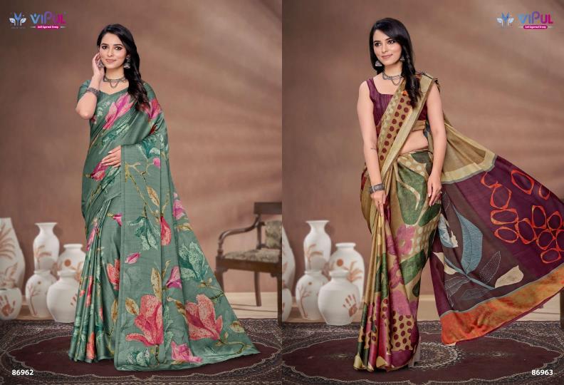 akasaa by vipul 86958 - 86869 satin silk casual wear saree wholesaler