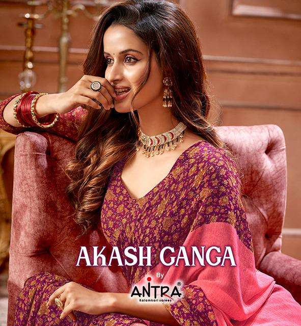 Brand = ANTRA Catalog = AKASH GANGA FANCY WEIGHTLESS PRINTE SAREE Packing : READY |