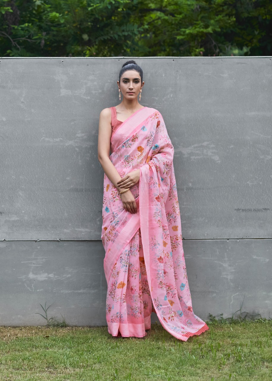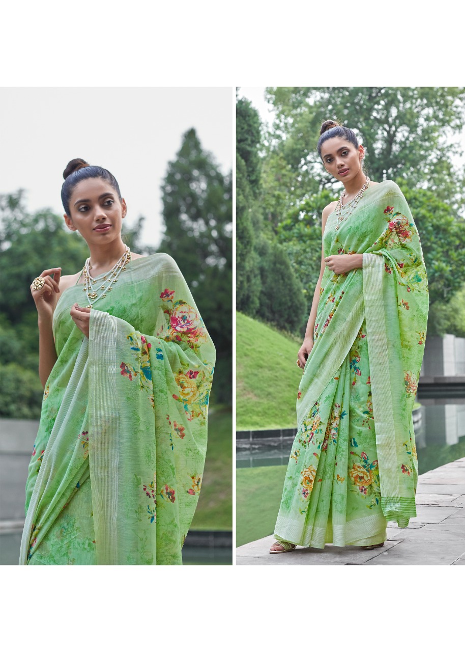 Akira Cotton By Shangrila Linen Cotton Floral Print Base Rich Collections Saree Trader