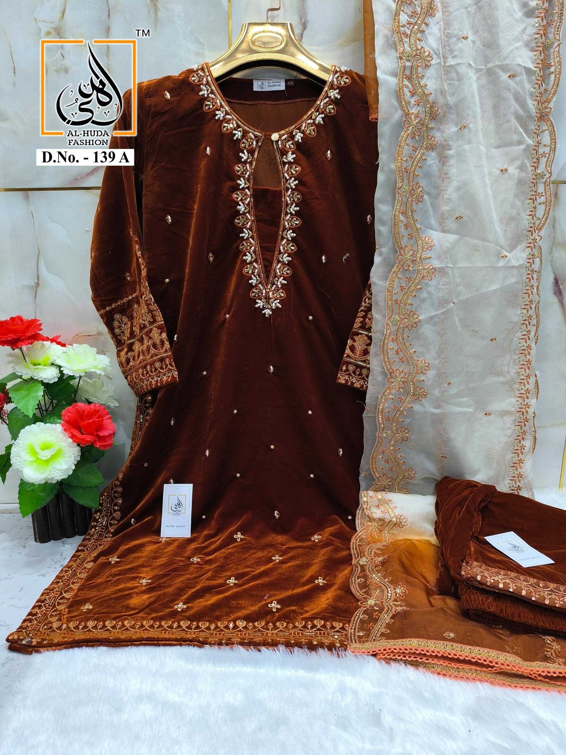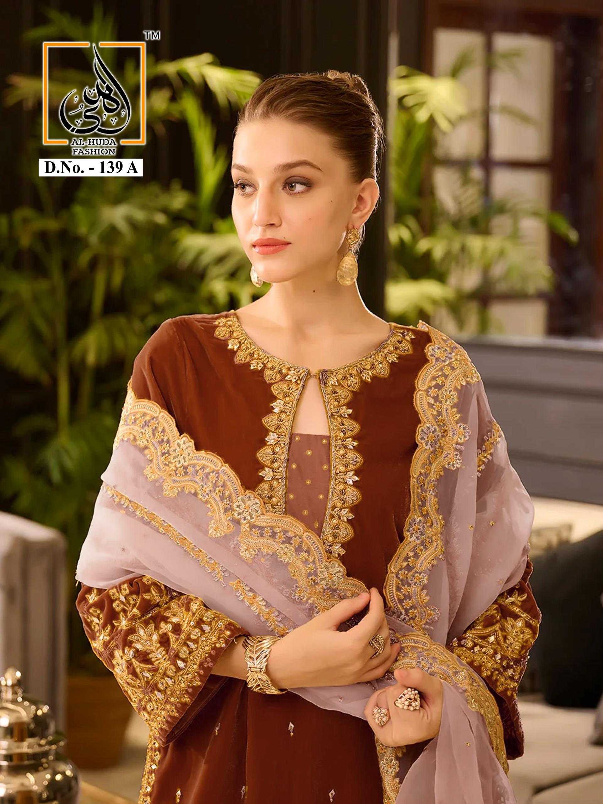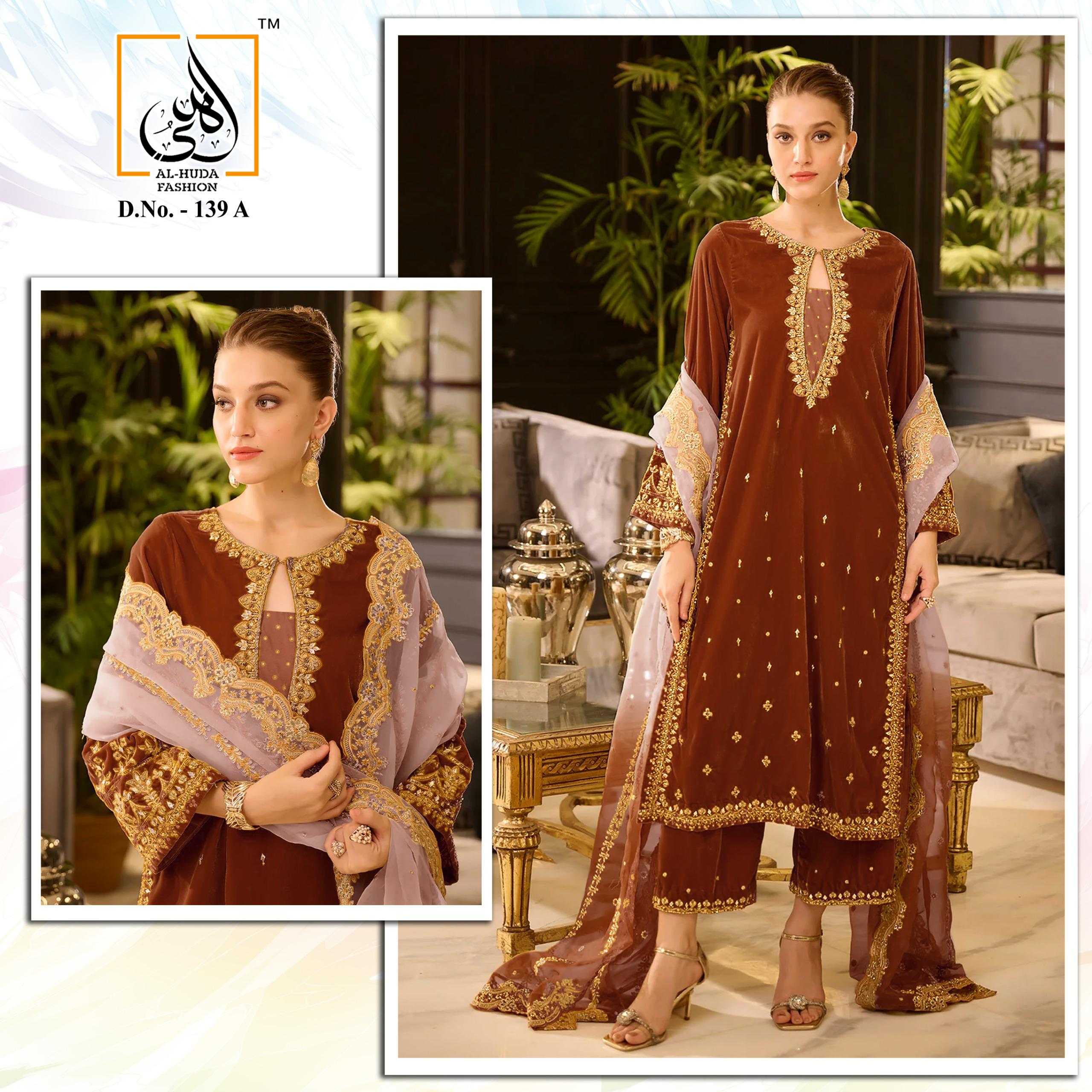 al huda fashion 139 winter special pakistani velvet readymade suits