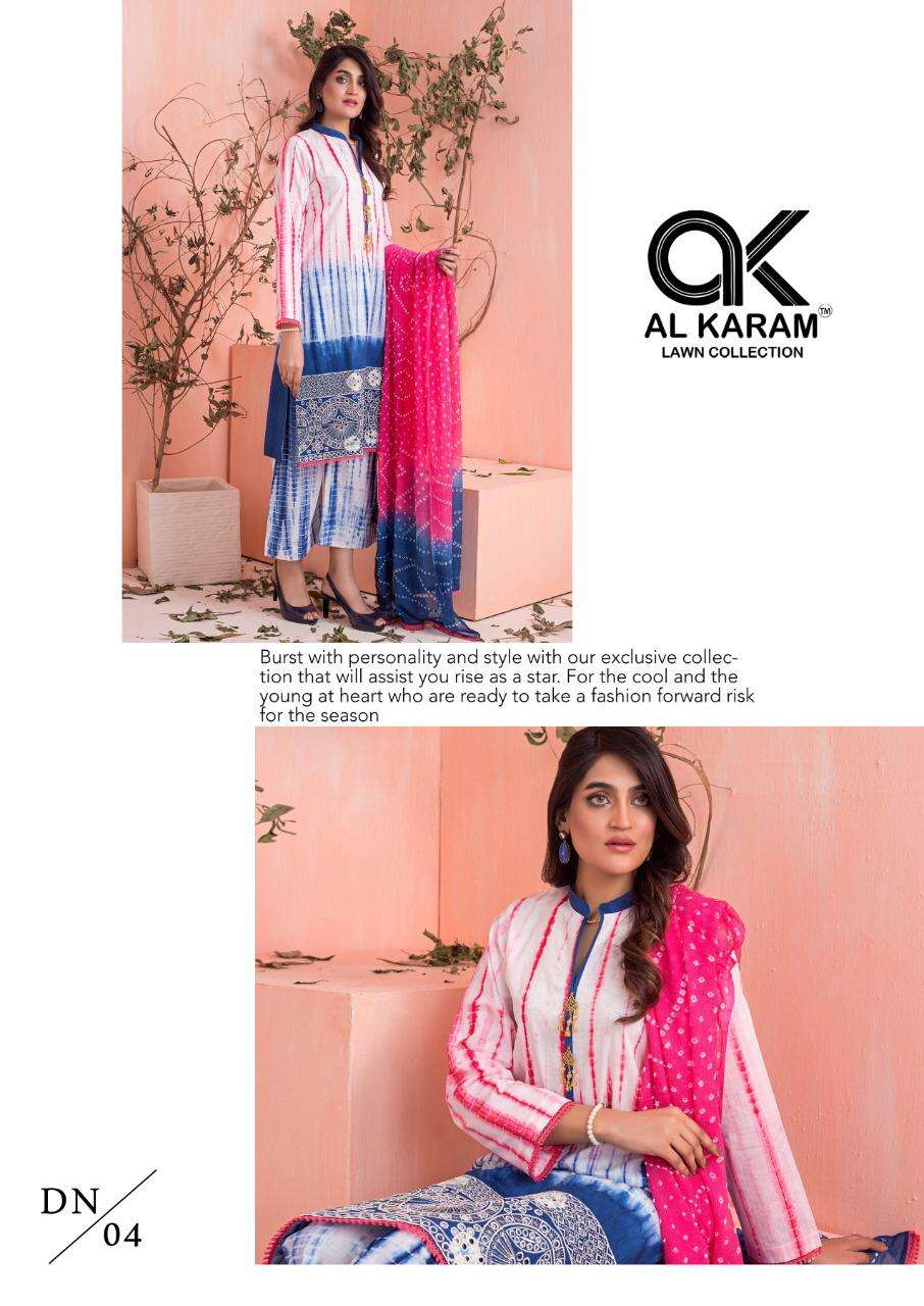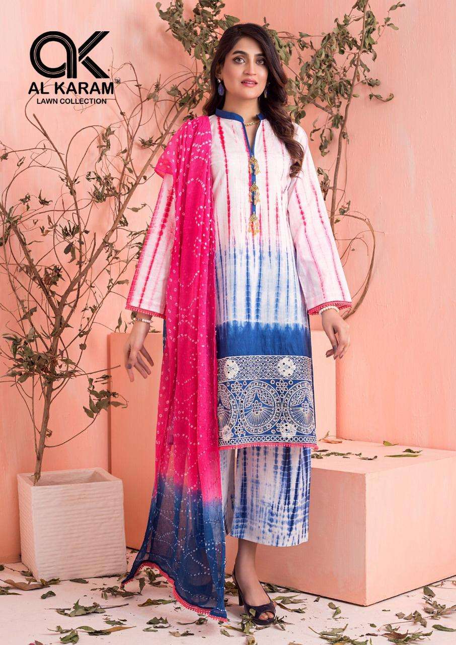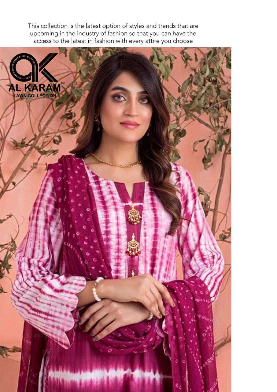 AL KARAM PRESENTS PURE CAMBRICE COTTON EMROIDERY COLLECTION 👗👗👗👗👗👗👗👗 ➡ Catlouge Name ➡ fabric Details 👗 TOP :- CAMBRICE COTTON WITH SELF EMROIDERY (2.40Mtr) 👖 BOTTEM PRINTED COTTEN (2/30 MTR ) 🧣 Dupatta:-*pure mal mal Printed (2.25Mtr) ➡ Packing Details:- 04 DESIGNES |
