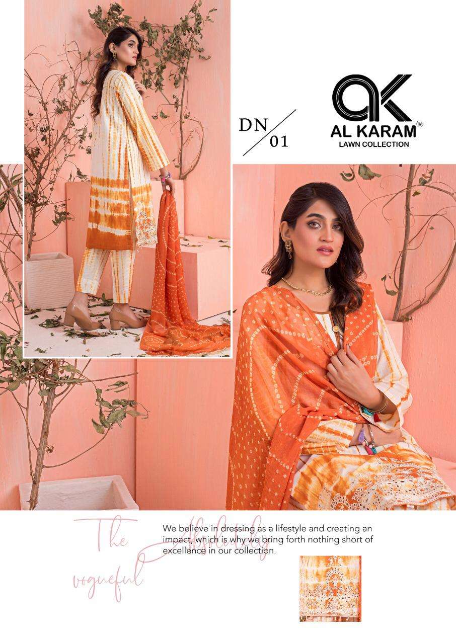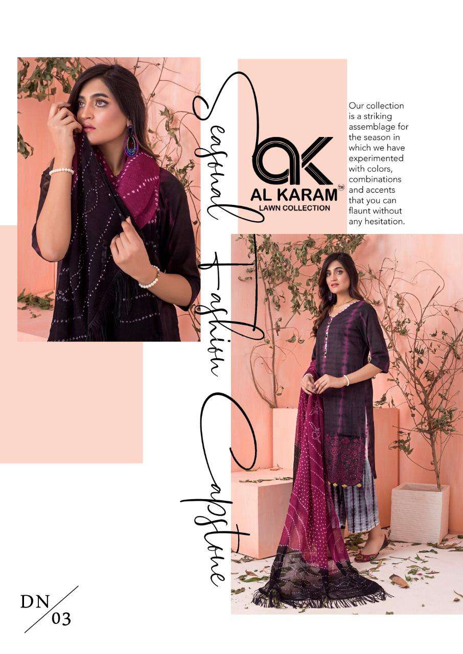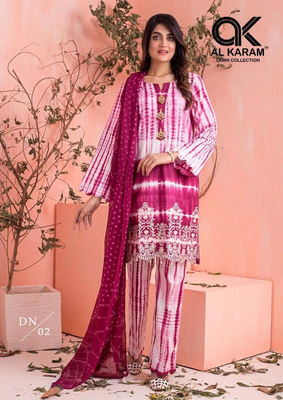 AL KARAM PRESENTS PURE CAMBRICE COTTON EMROIDERY COLLECTION 👗👗👗👗👗👗👗👗 ➡ Catlouge Name ➡ fabric Details 👗 TOP :- CAMBRICE COTTON WITH SELF EMROIDERY (2.40Mtr) 👖 BOTTEM PRINTED COTTEN (2/30 MTR ) 🧣 Dupatta:-*pure mal mal Printed (2.25Mtr) ➡ Packing Details:- 04 DESIGNES |