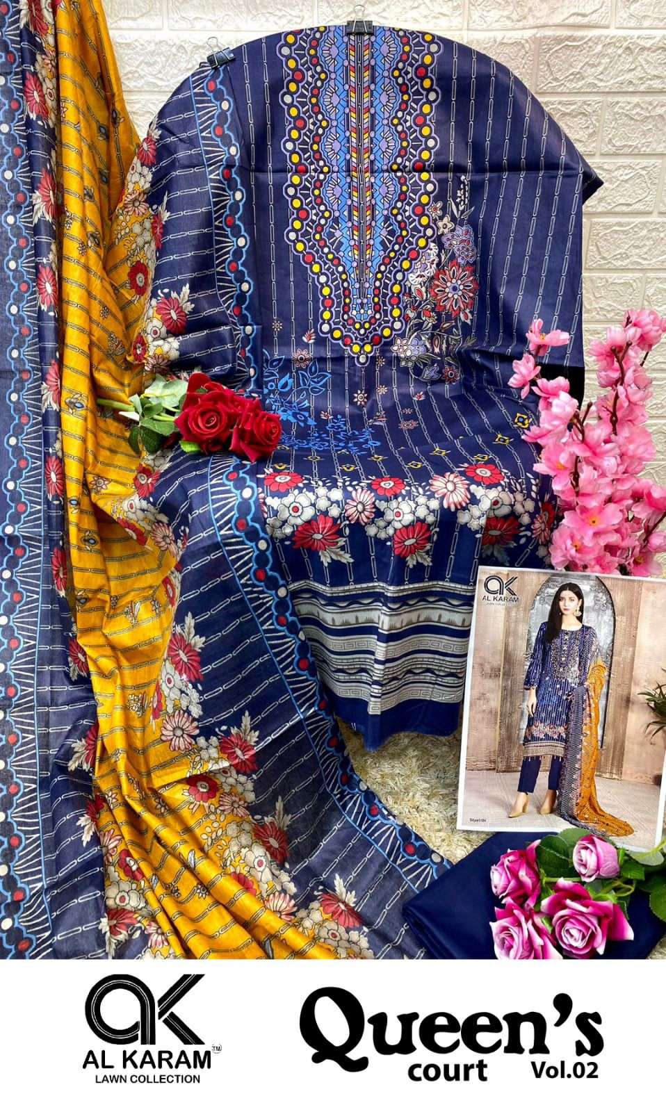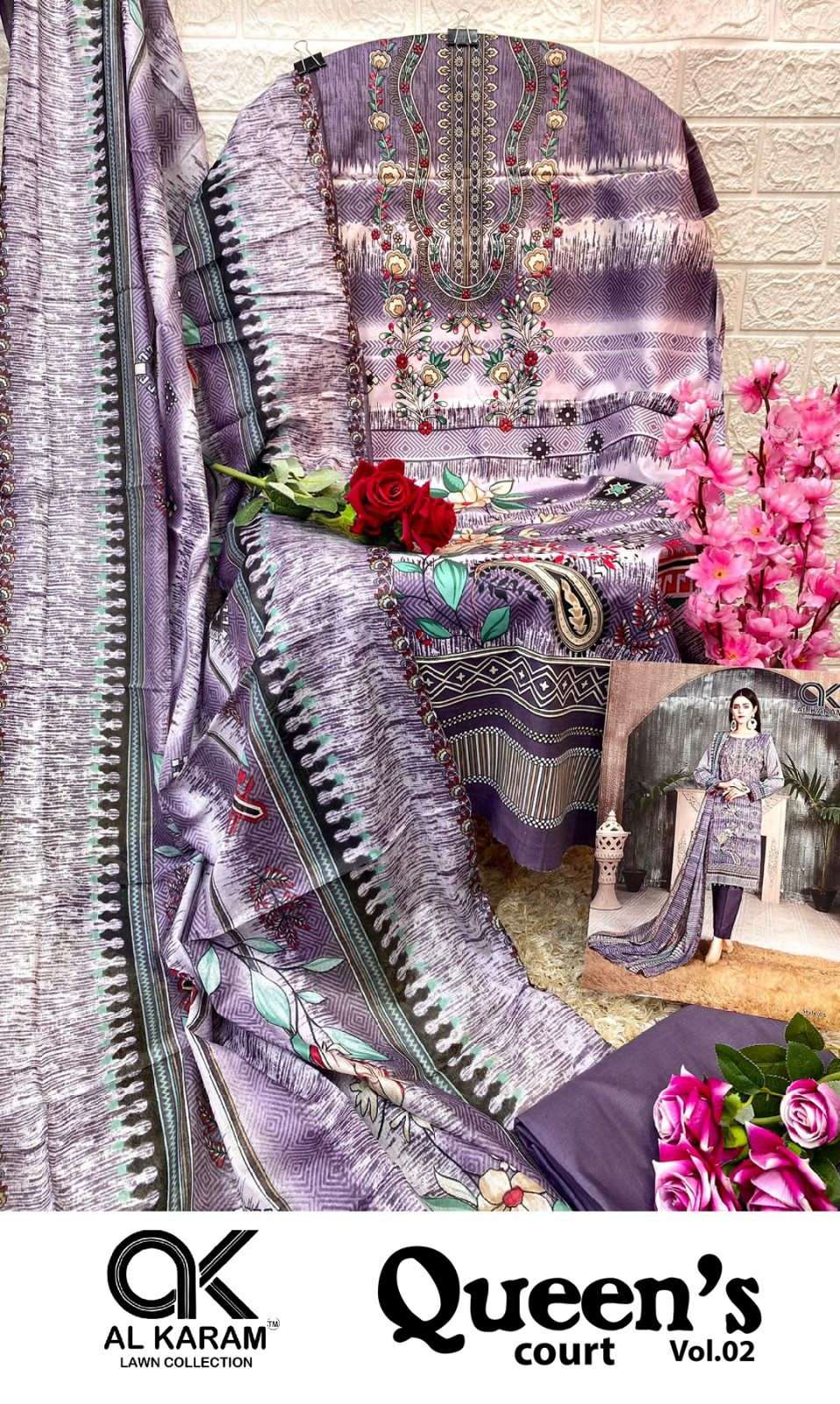 HERE IT COMES💐💐 ♥️YOUR FAVOURITE BRAND♥️ 🌹AL KARAM 🌹 QUEEN’S COURT VOL 02 PRINTED COLLECTION Pure cambric collection with mal mal dupatta 👗Top : Pure Cambric 120 gsm (cut:2.40mtr) 👖Bottom : cotten cut:2 .00 mtr ) 🧣Dupatta: Pure Cotton Mal Mal (cut 2.25 mtr) Designs : 06 With attractive pouch and bag 💼 packing *PRICE 420/- |