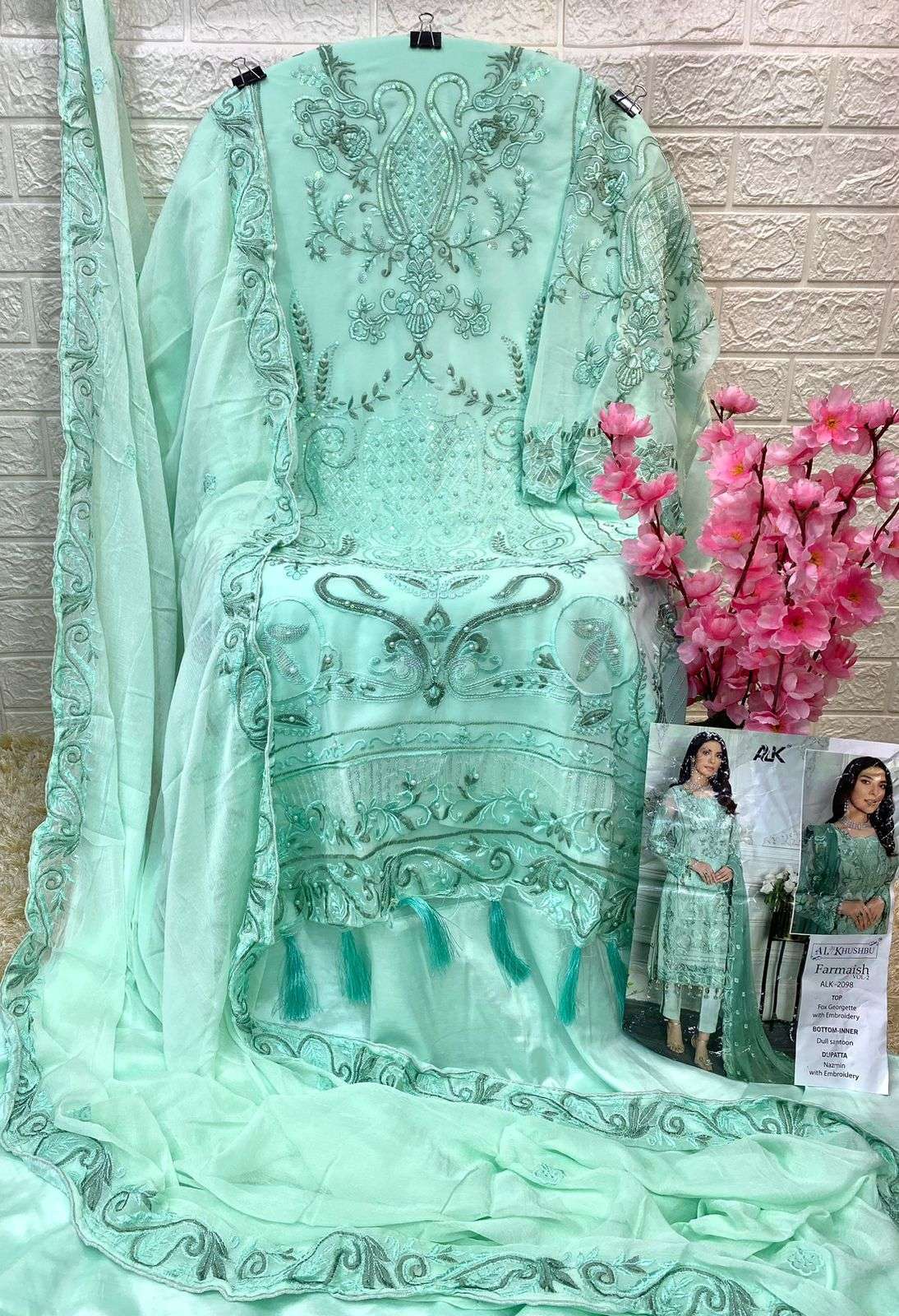 al khushbu alk 2098 sea green singel design of pakistani dress