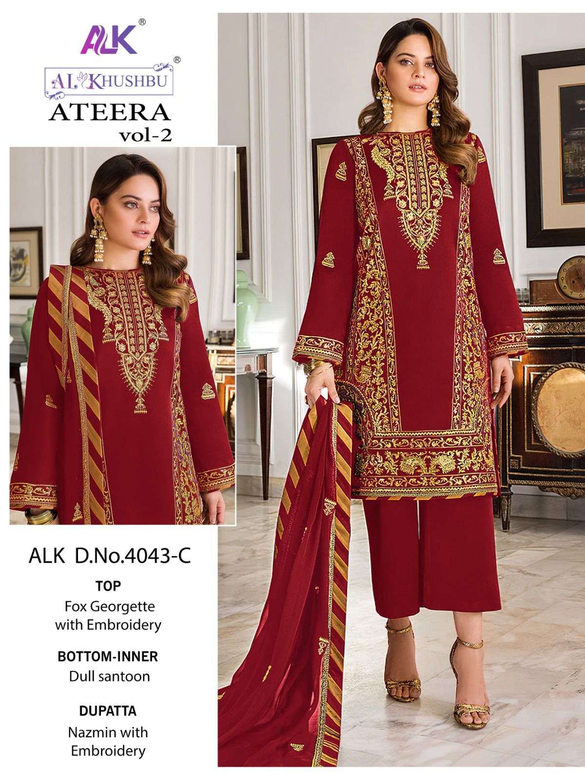 al khushbu ateera vol 2 designer unstitch pakistani suit with embroidery work