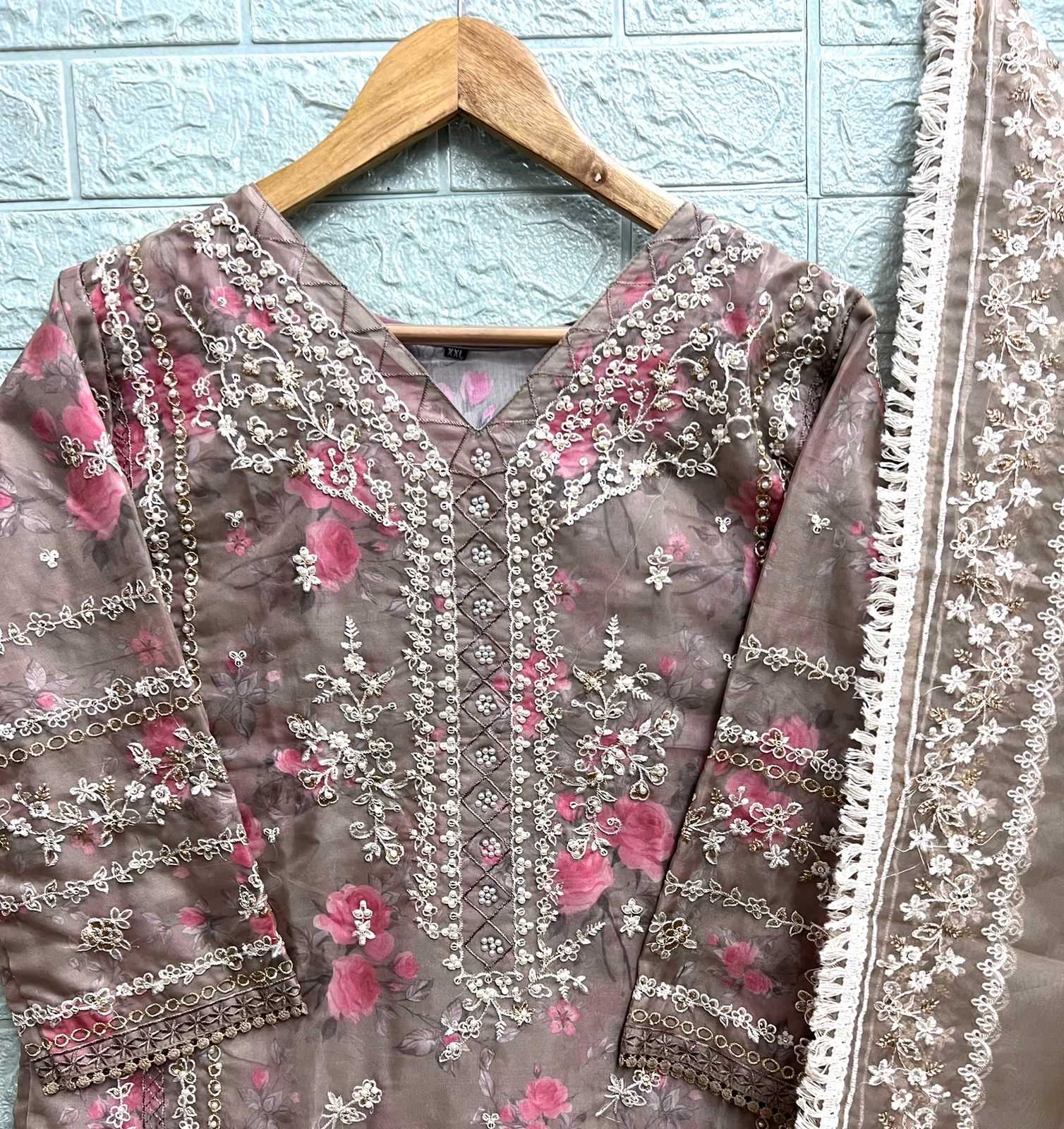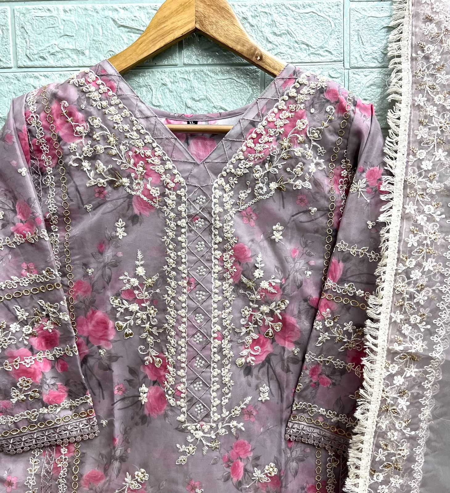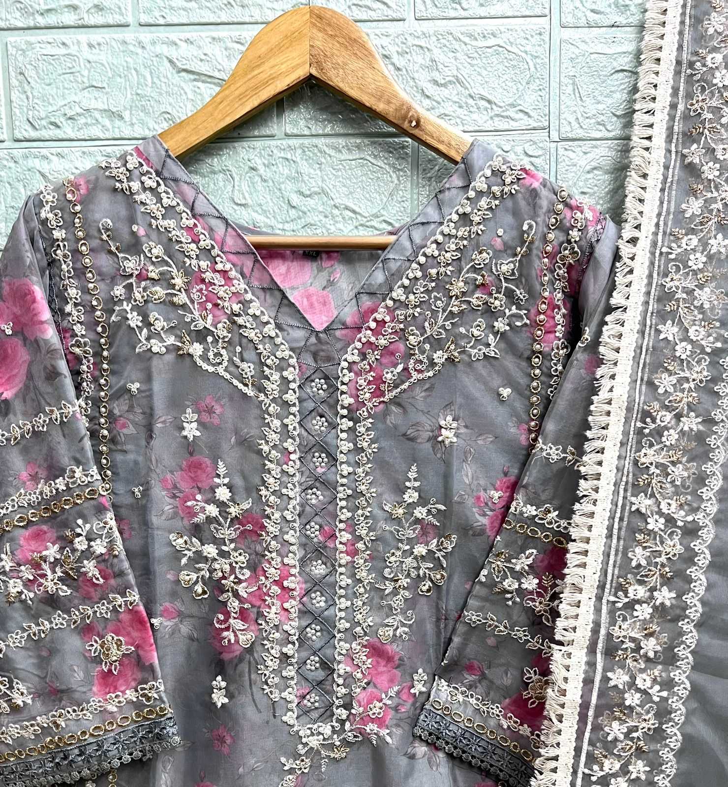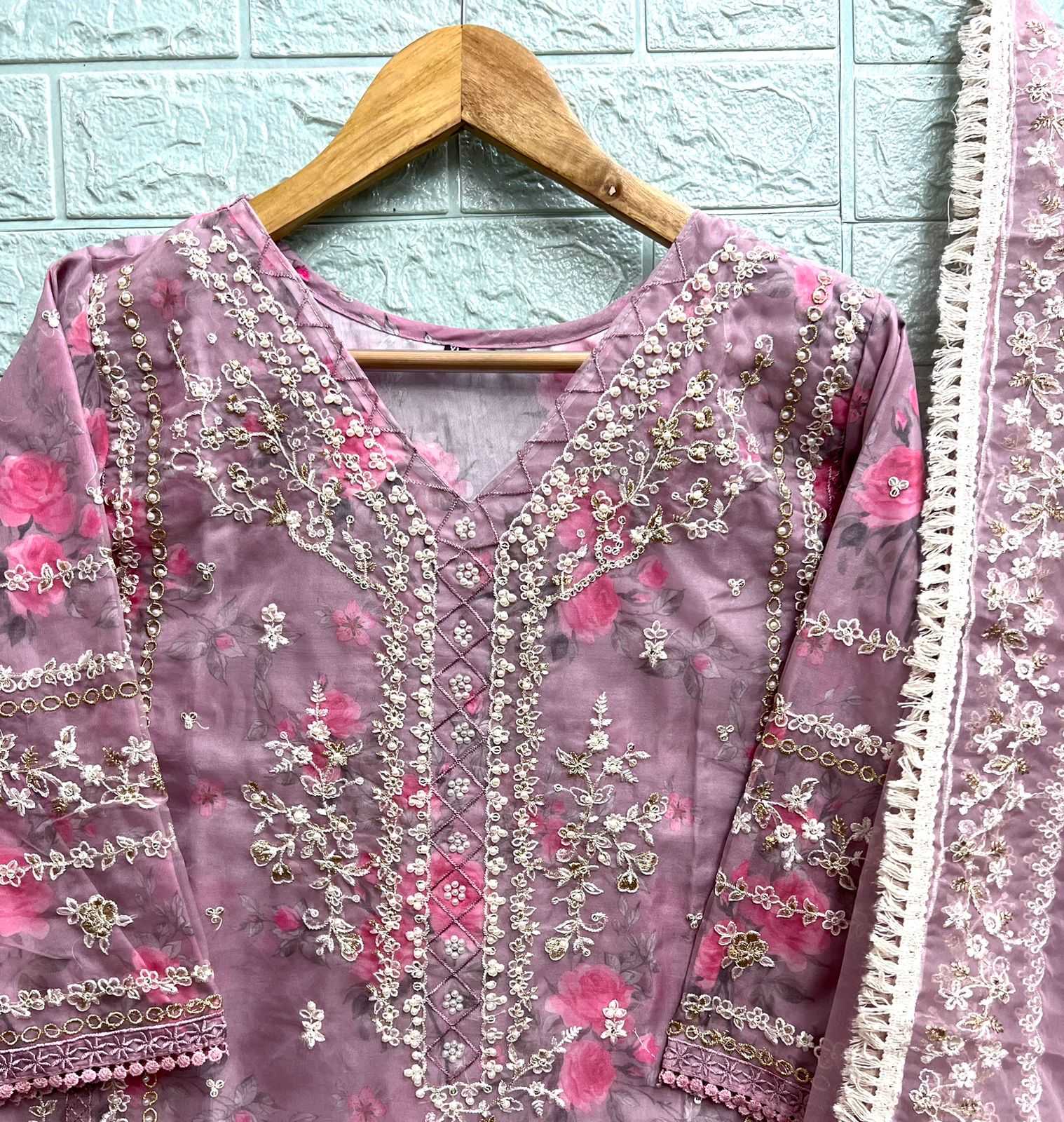 🙏🏻Dear AL_KHUSHBU 👇🏻Fabric details 👇🏻 👗 Top : ORANGZA WITH HEAVY EMBROIDERED 👖Bottom :DULL SANTOON WITH PRINT BOTTOM 🏳️🌈Dupatta : ORANGZA WITH HEAVY EMBROIDERED 🏳️⚧️INNER :- SANTOON GST EXTRA Set to set |