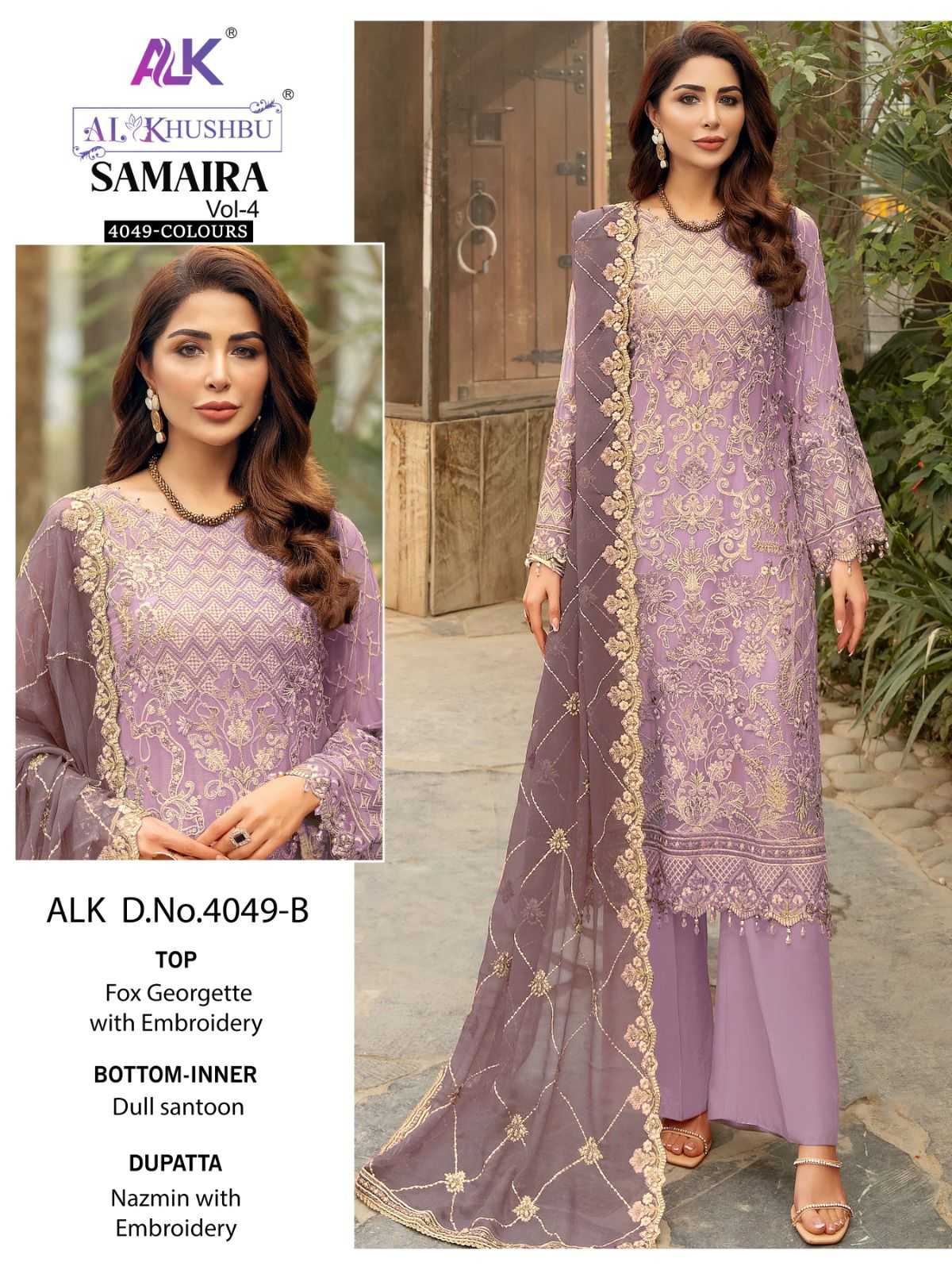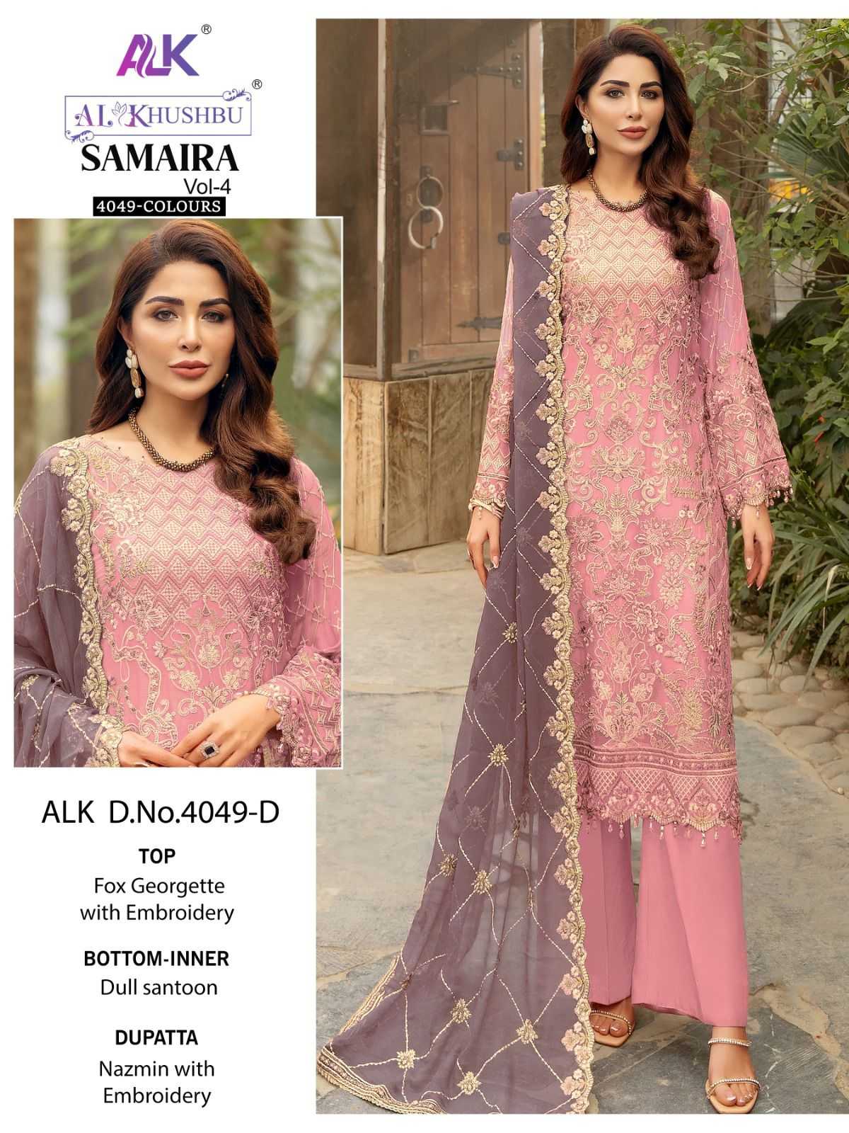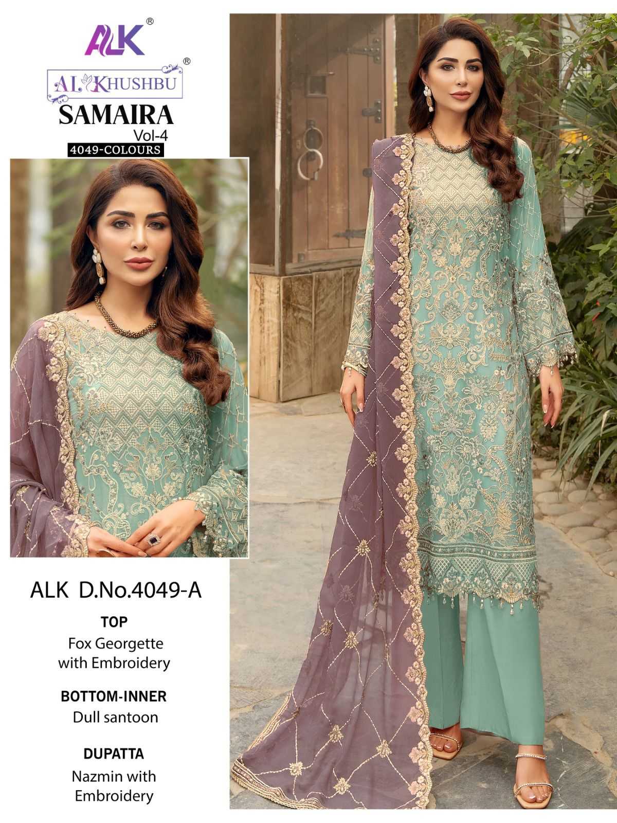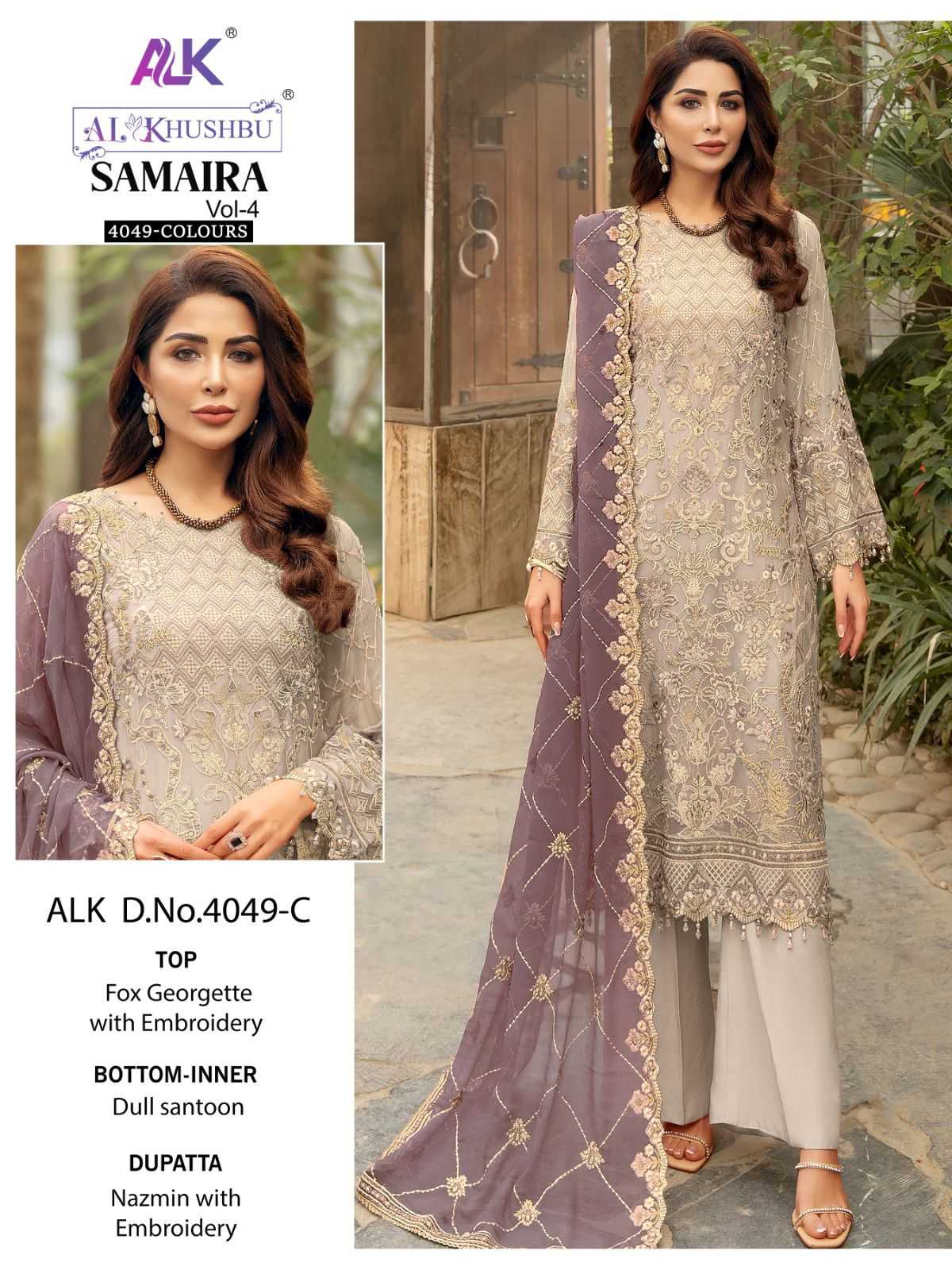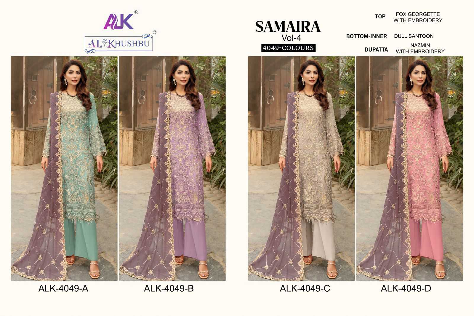 al khushbu samaira vol 4 4049 colours beautiful designer pakistani 3pcs dress material