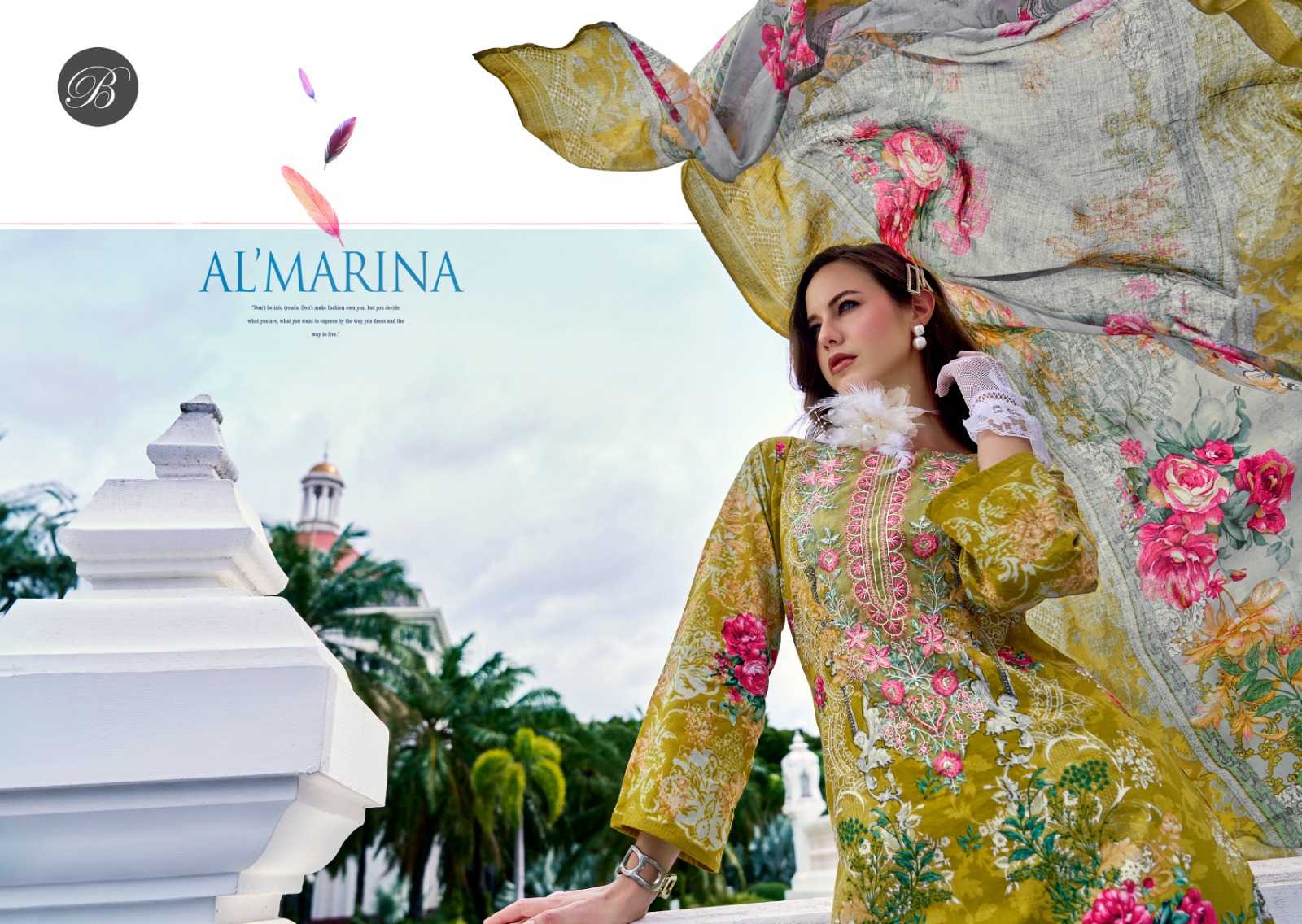 # AL’MARINA BY BELLIZA ......BelliZa DesigNer StuDio...... presents ”AL’MARINA" 🔺Dupatta: 100% Pure MAL MAL Cotton Dupatta Digital Print (2.30 mtrs apx) 🔺Bottom: 100% Pure Cotton (3 mtrs apx) 🔺Pcs: 08 🔺 Rate: 610/- |