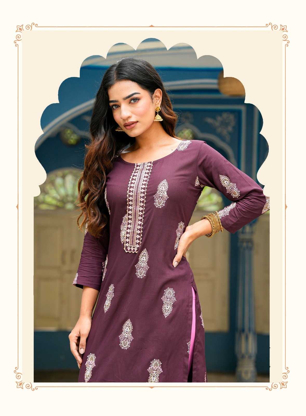 albeli vol 2 by passion tree fancy gold print casual straight kurtis