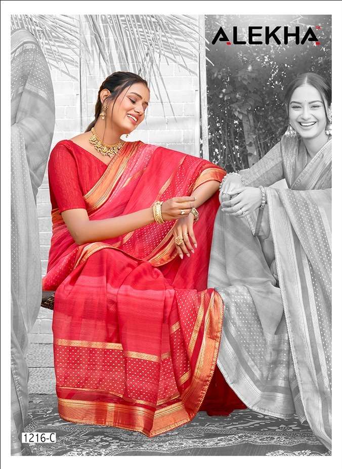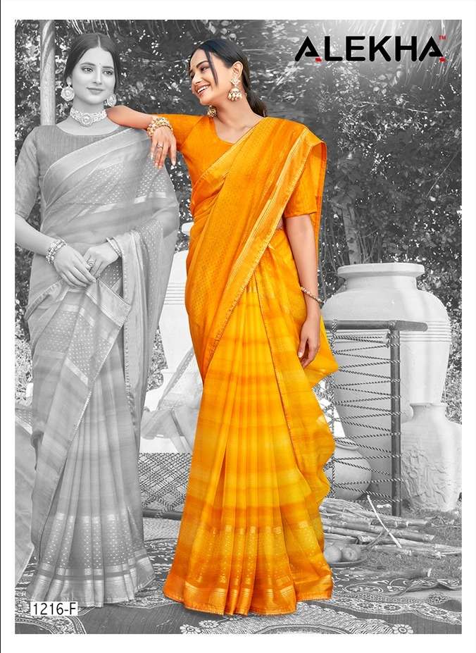 BRAND = ALEKHA CATLOG = ALEKHA 1216 FANCY NYLON PRINT SAREE LACE & BLOUSE STITCH |