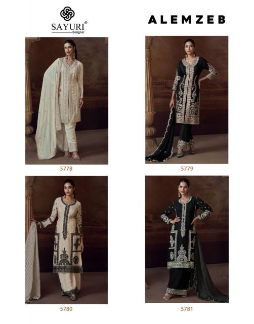 SAYURI DESIGNER ALEMZEB (4 PCS) FABRIC - PREMIUM REAL CHINON SILK ( FULL HEAVY LOOK EMBROIDERED TOP , PANT AND EMBROIDERED DUPATTA ) PRICE - 2599/- |
