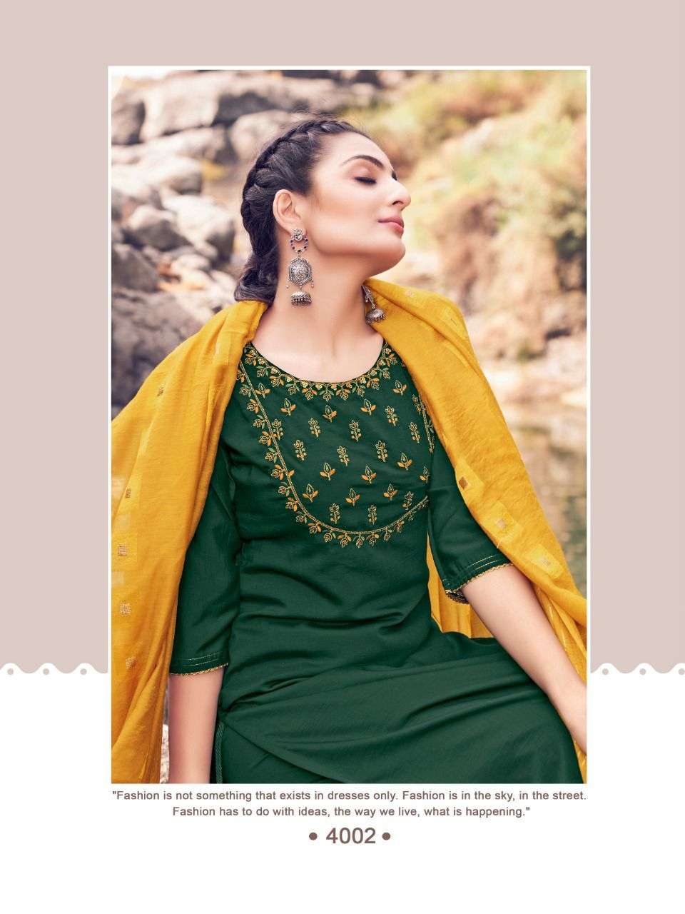 🎀 *vitara fashion launches exclusive designer kurti plazo with dupatta *🎀 plazo - alexa (maska fabric ) dupatta- viscos chanderi size-,L(40),xl(42),xxl(44) 3xl(46) ☣Designs- 4 rate 1050 GST +5% ADD ON BILL AMT |
