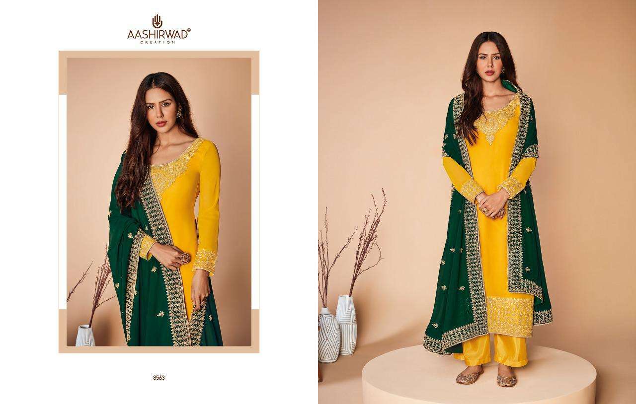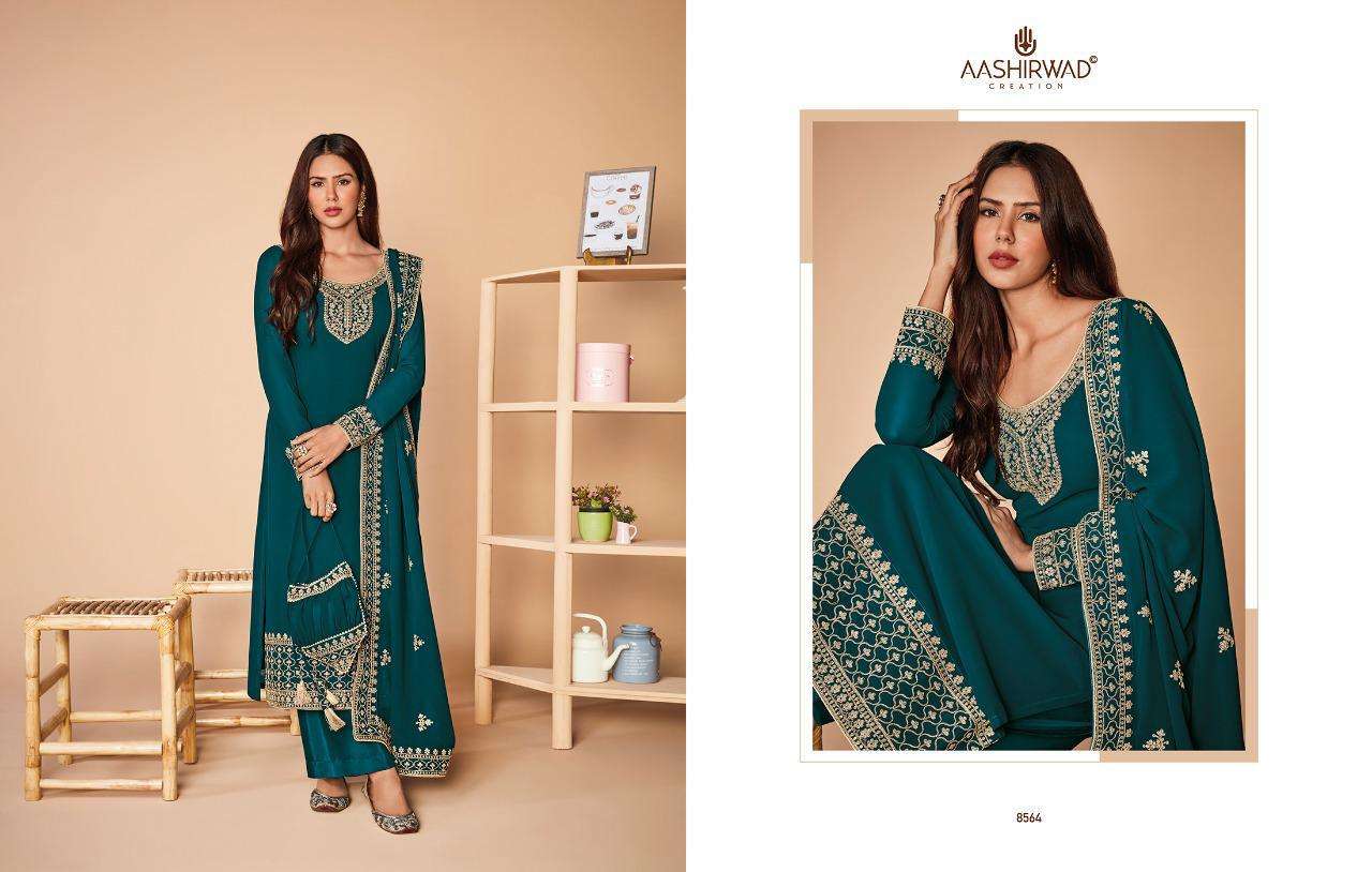 Aashirwad Creation Presents Latest Collection Launched on 18-10-2021. Presenting Beautiful collection of 8 PCS with Unstitched .