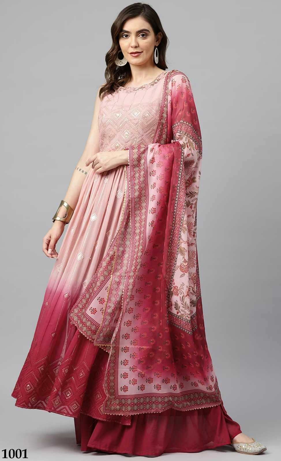 alfaaz faiza 1001-1004 readymade designer long gown sharara dupatta set