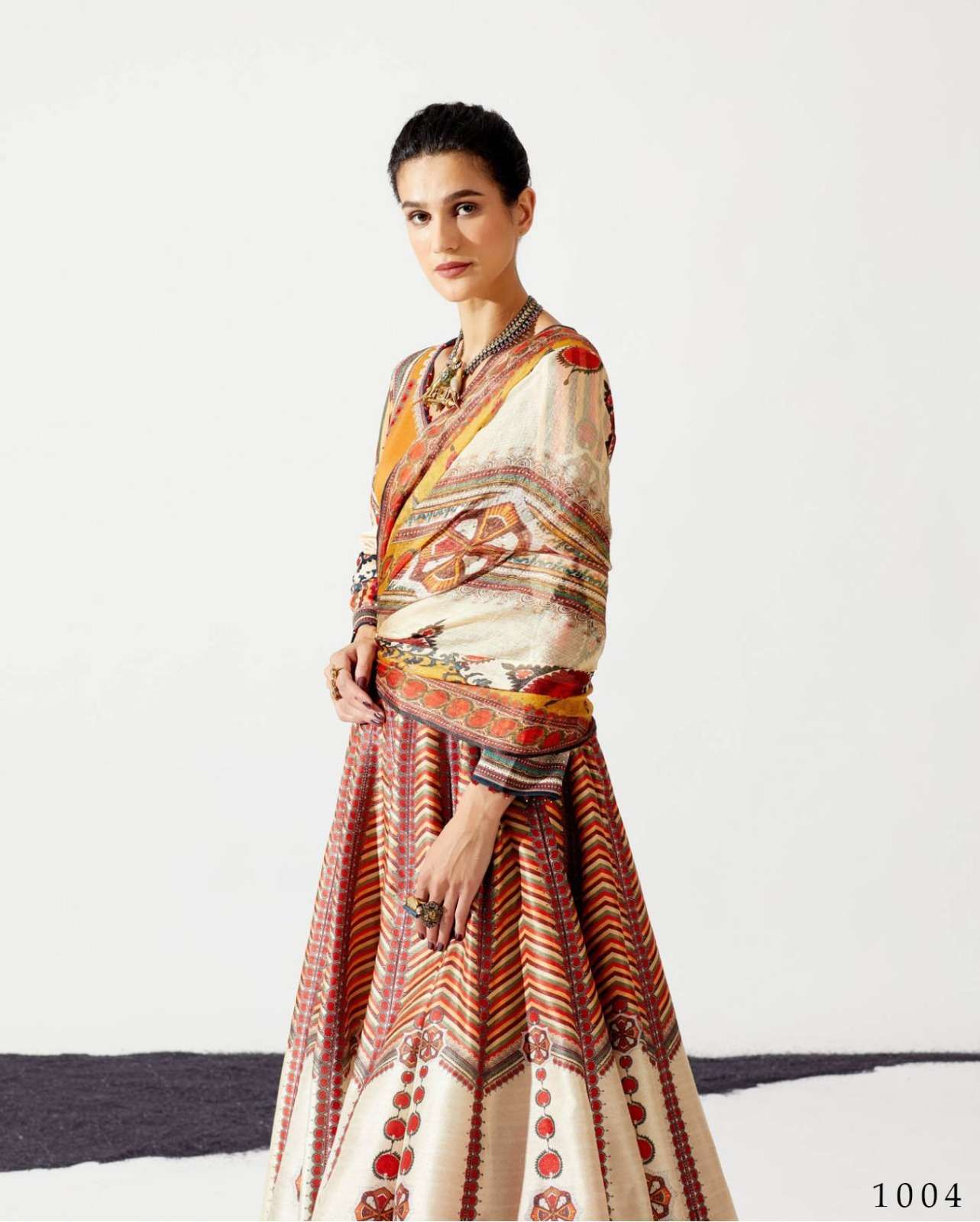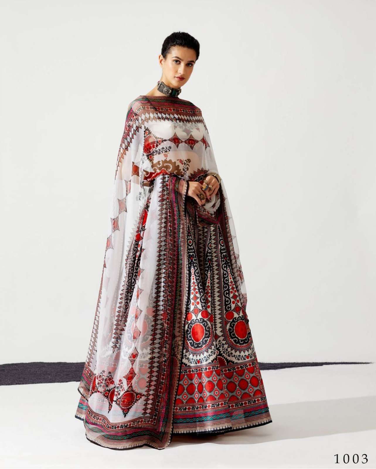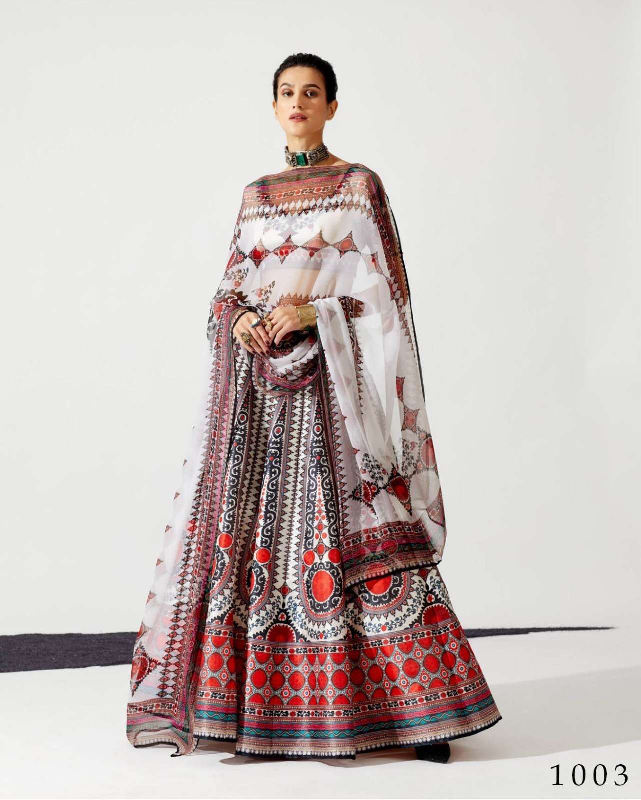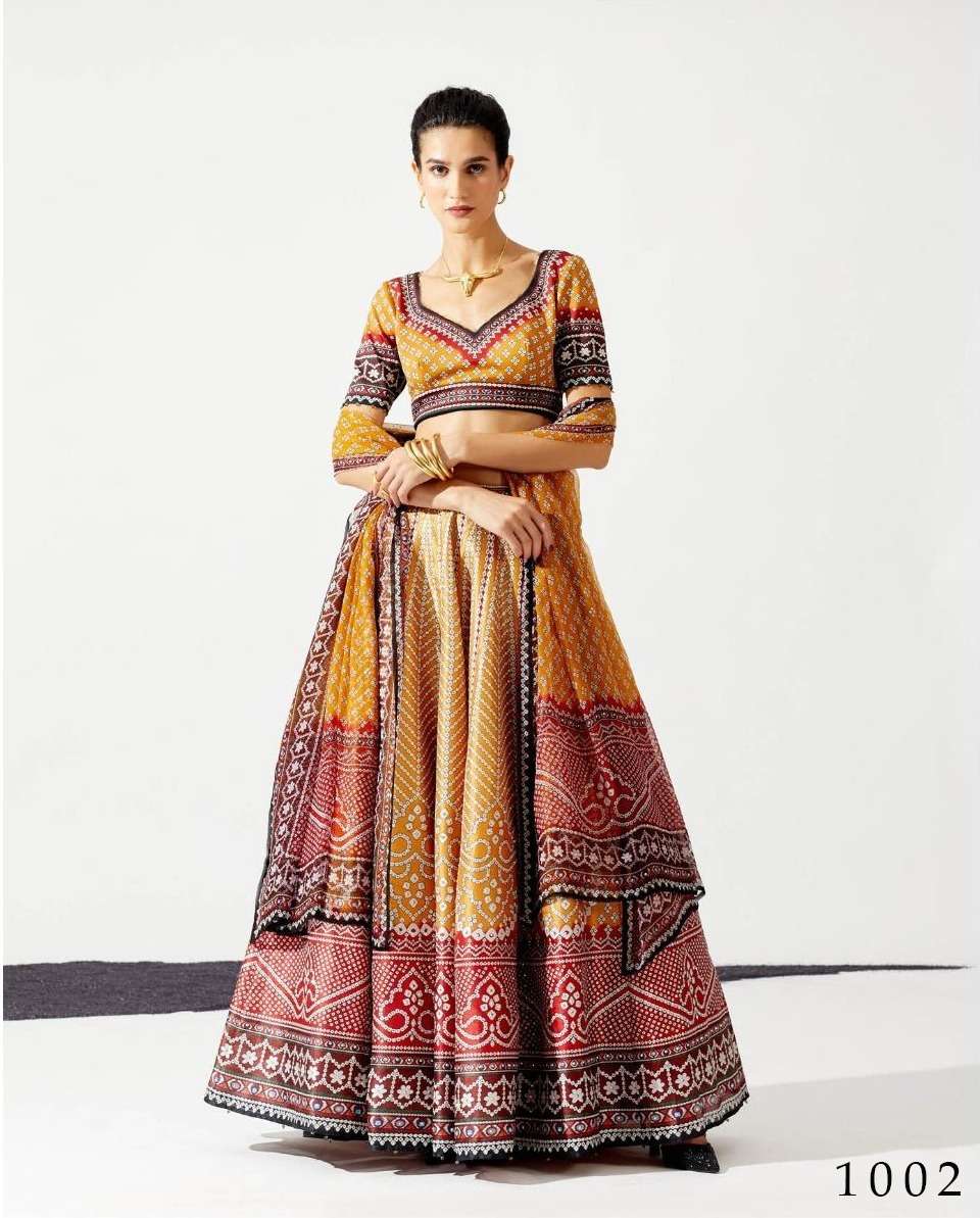 alfaaz present durva festive wear chinon digital print lehenga choli with georgette dupatta