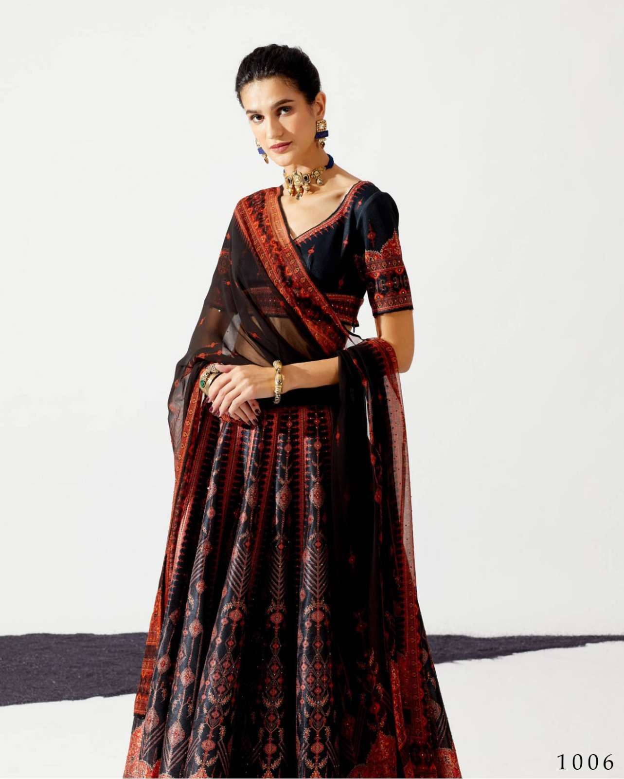Brand - Alfaaz Fabric Details- Blouse size : 44 inch Type : Semistitched/ Blouse Unstitched GST : 5% Rate : 1699/- per pcs |