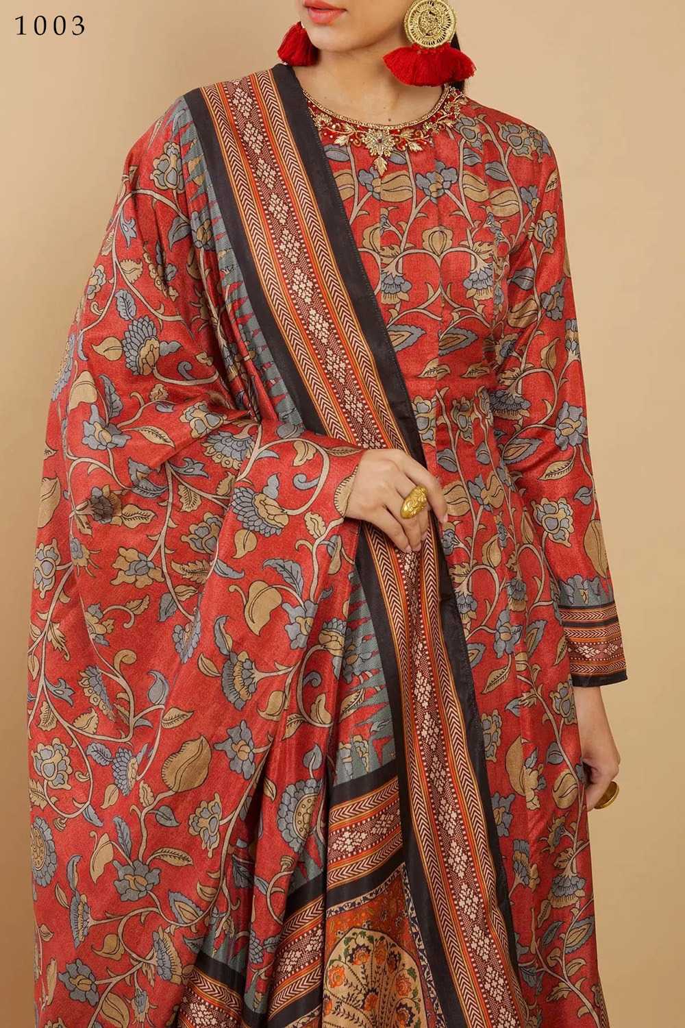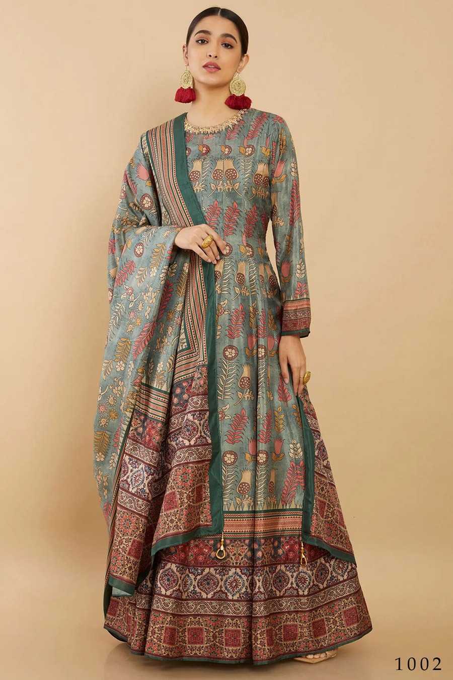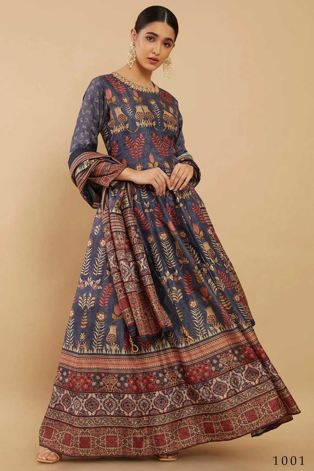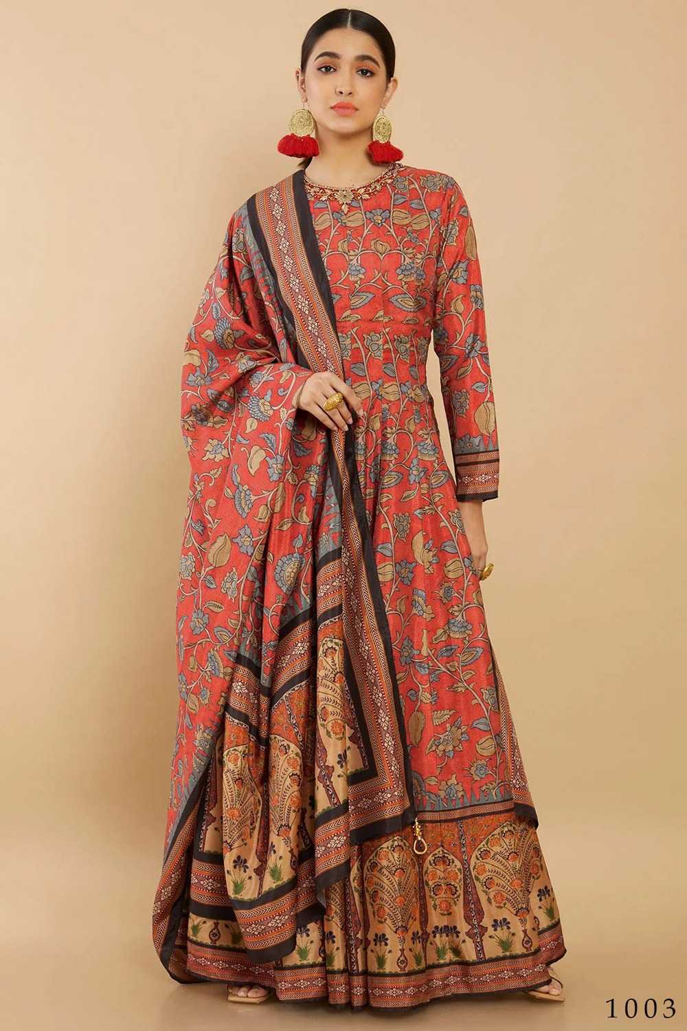 alfaaz present kalistha traditional digital print readymade gown and dupatta collection