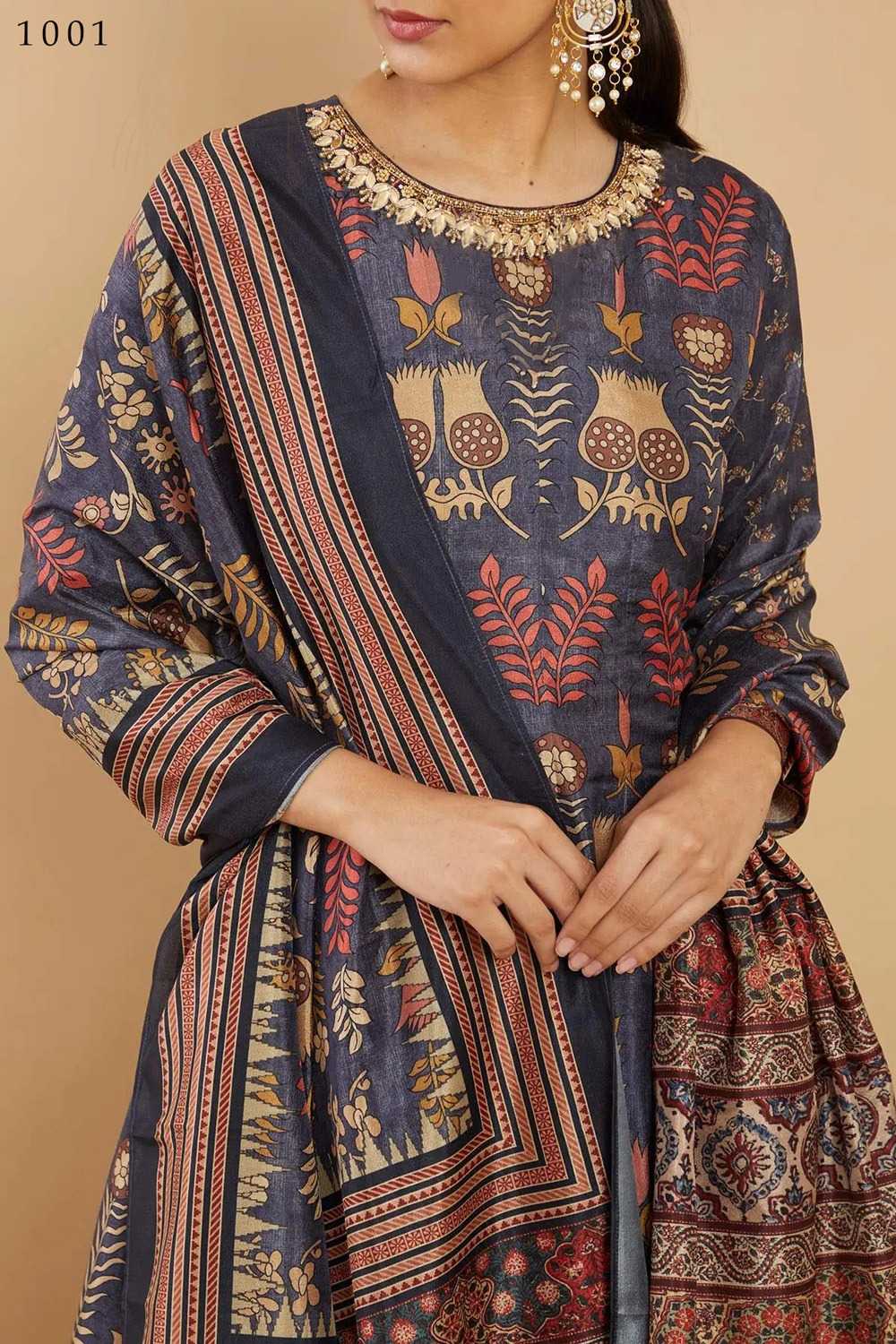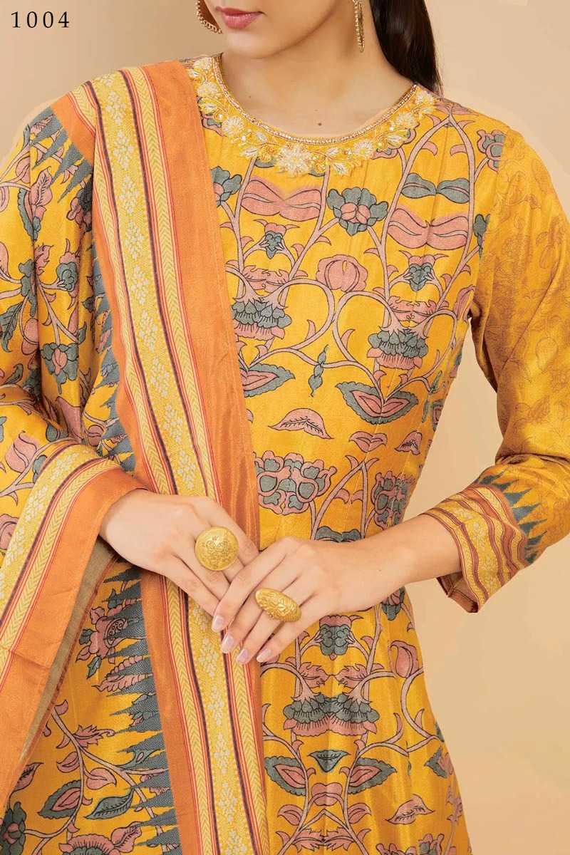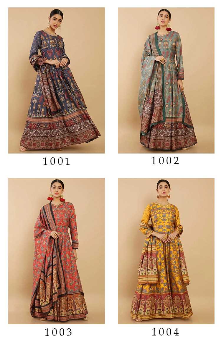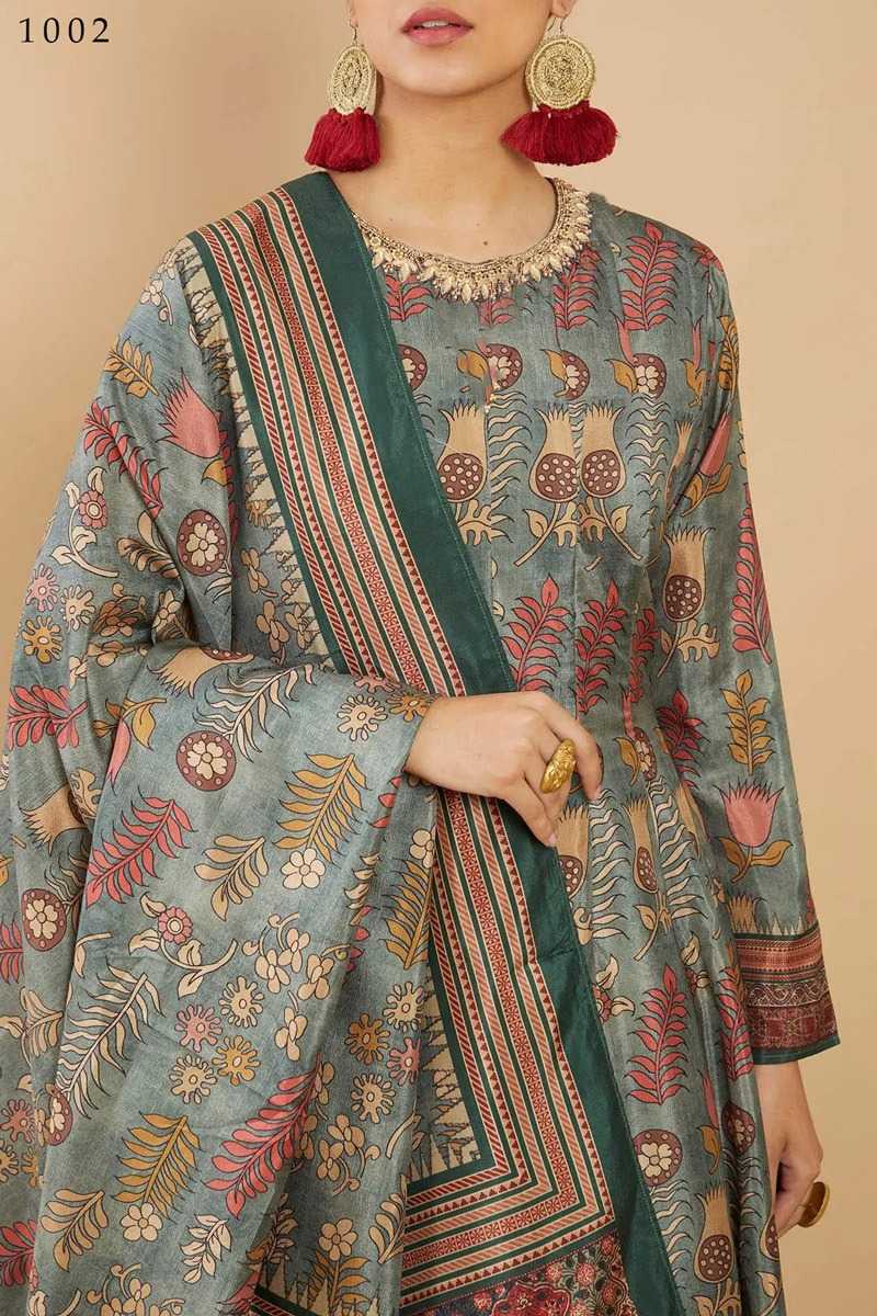 alfaaz present kalistha traditional digital print readymade gown and dupatta collection