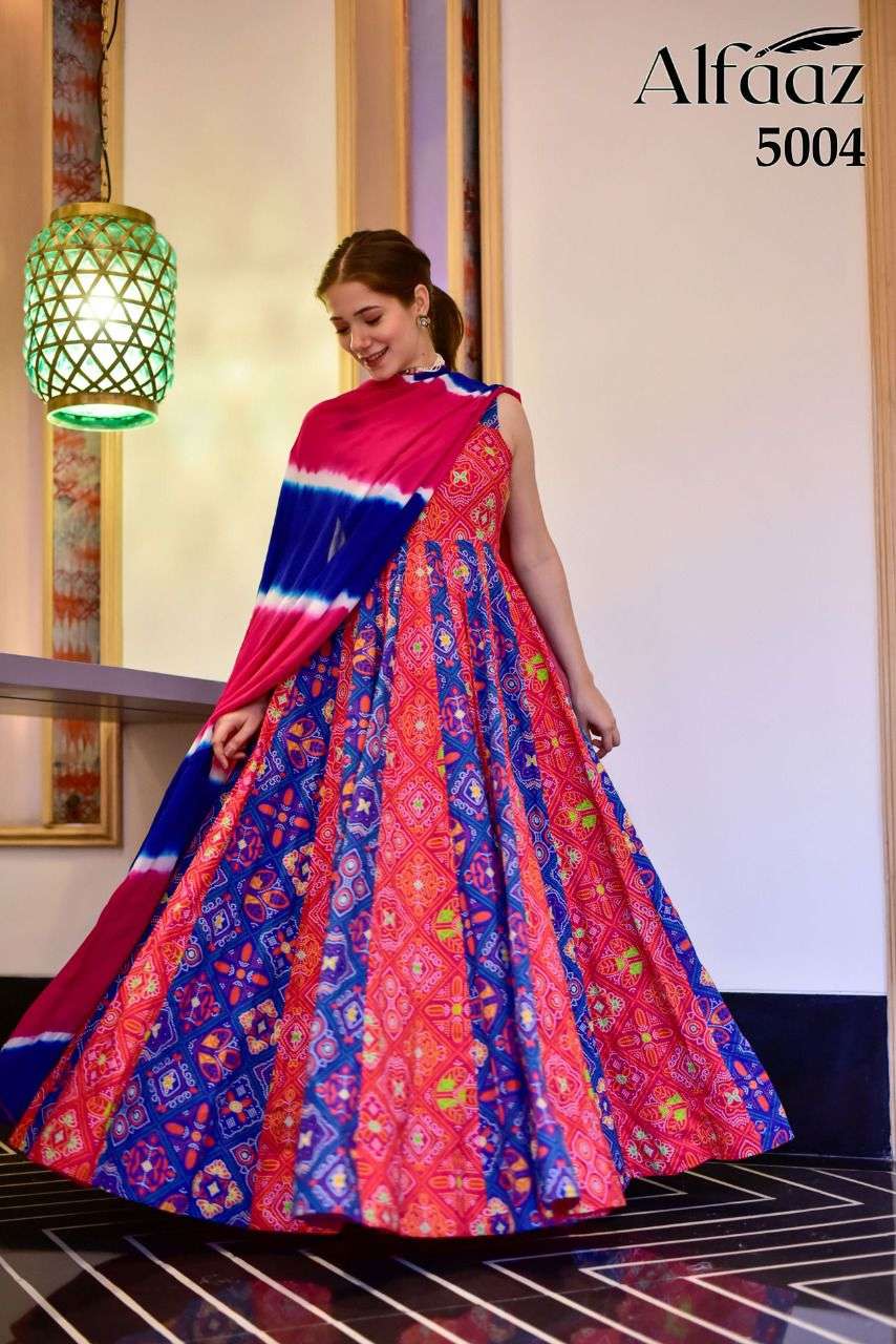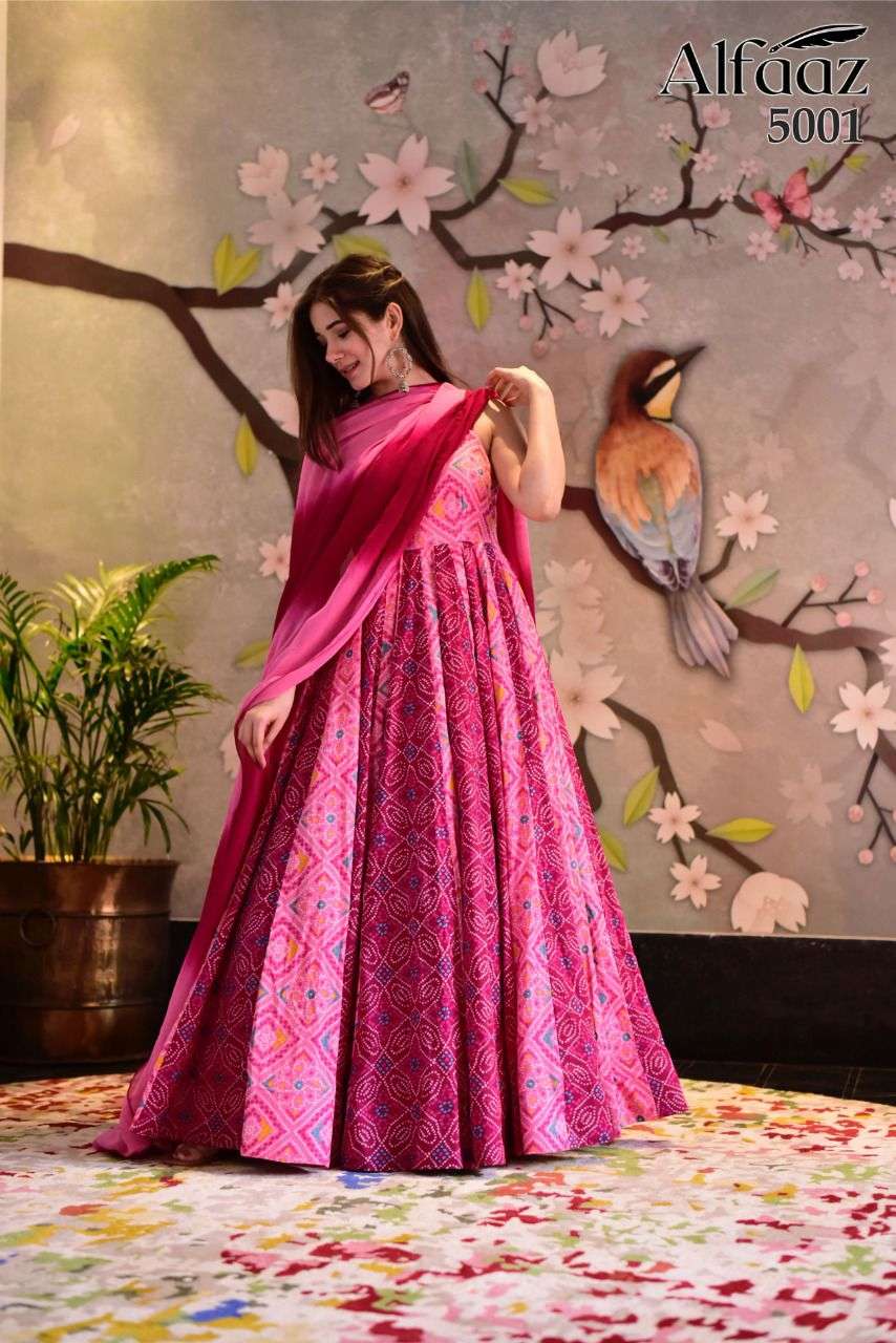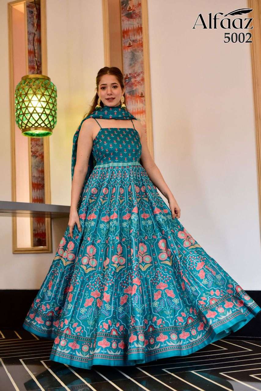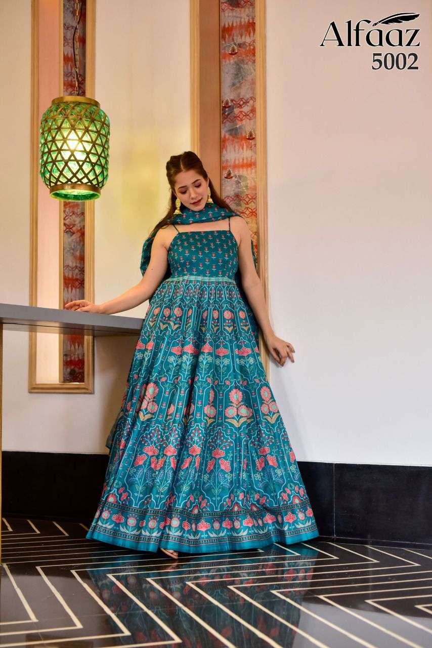 alfaaz vol 5 by stylishta silk cotton long readymade gown with dupatta