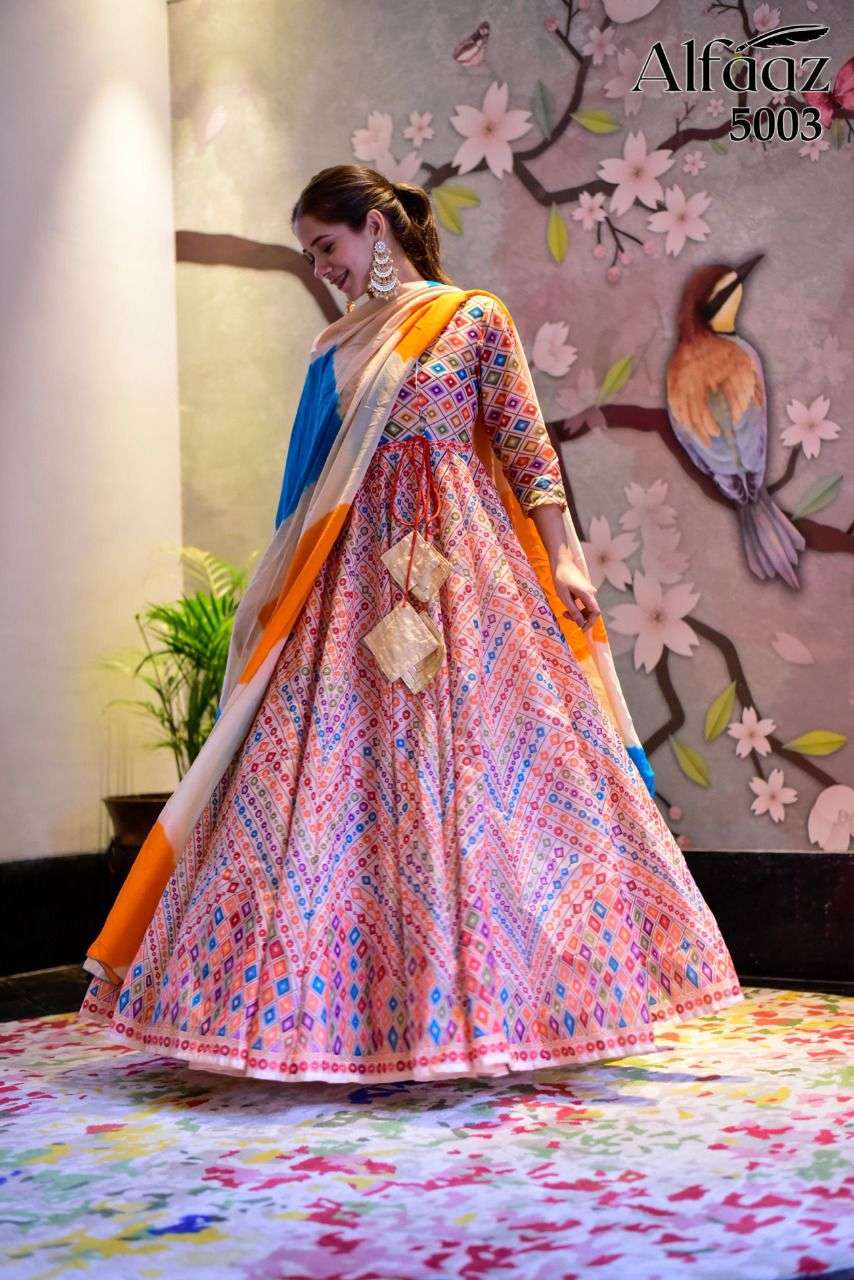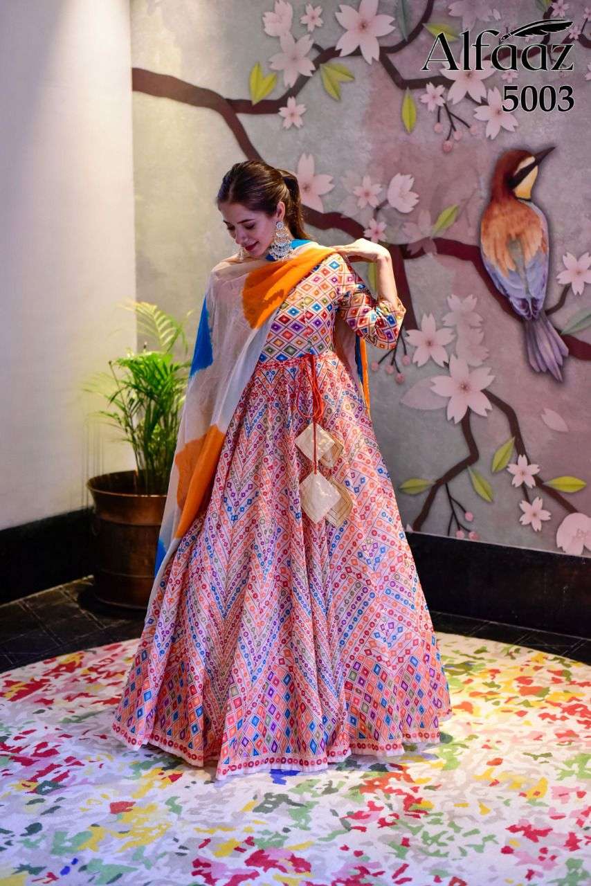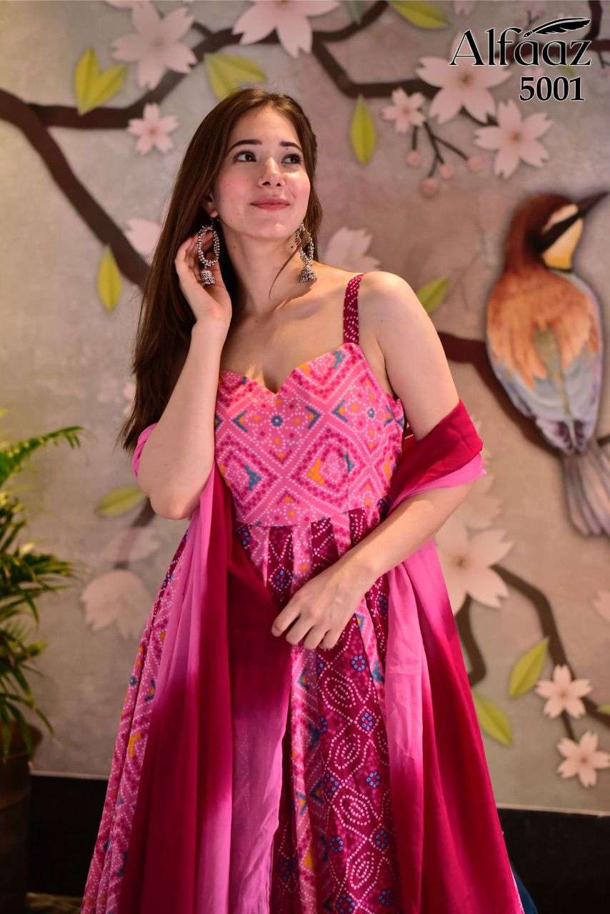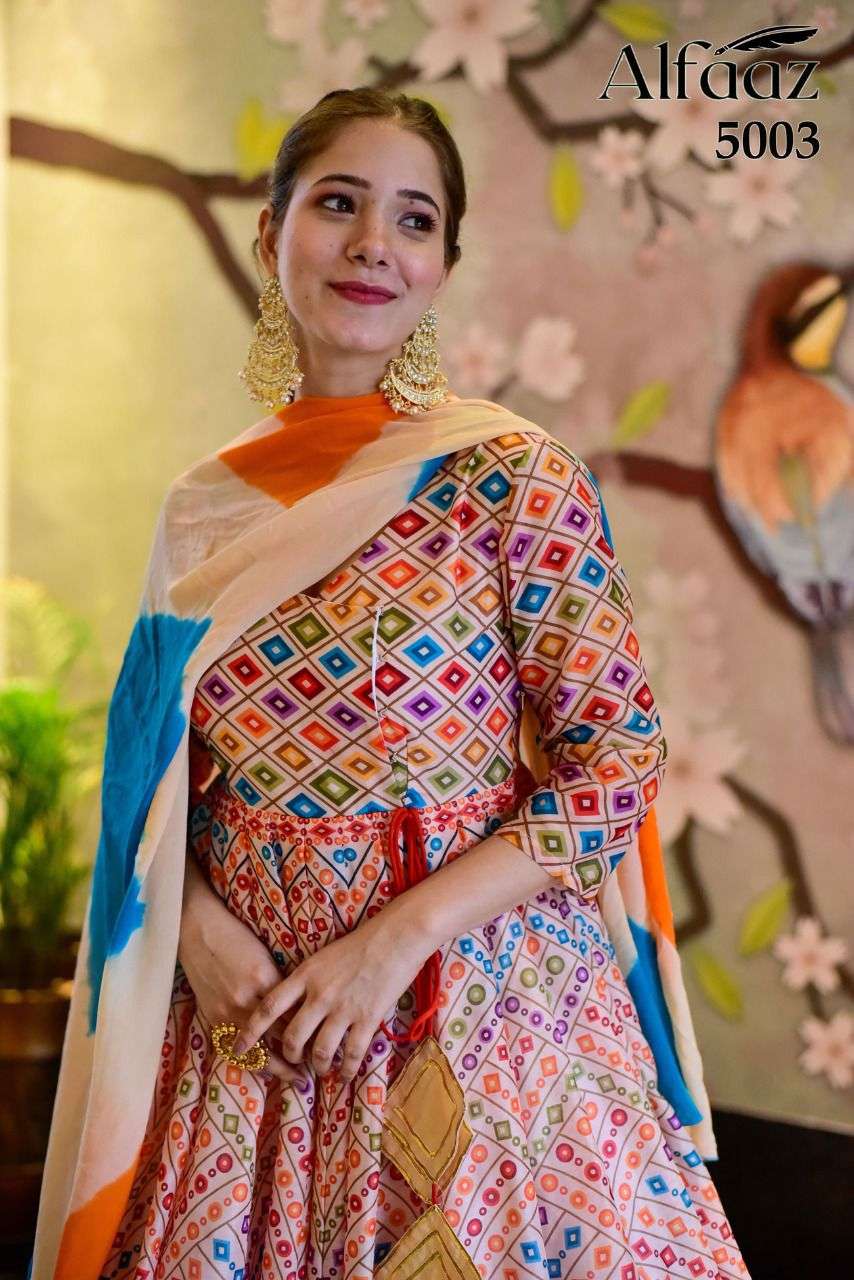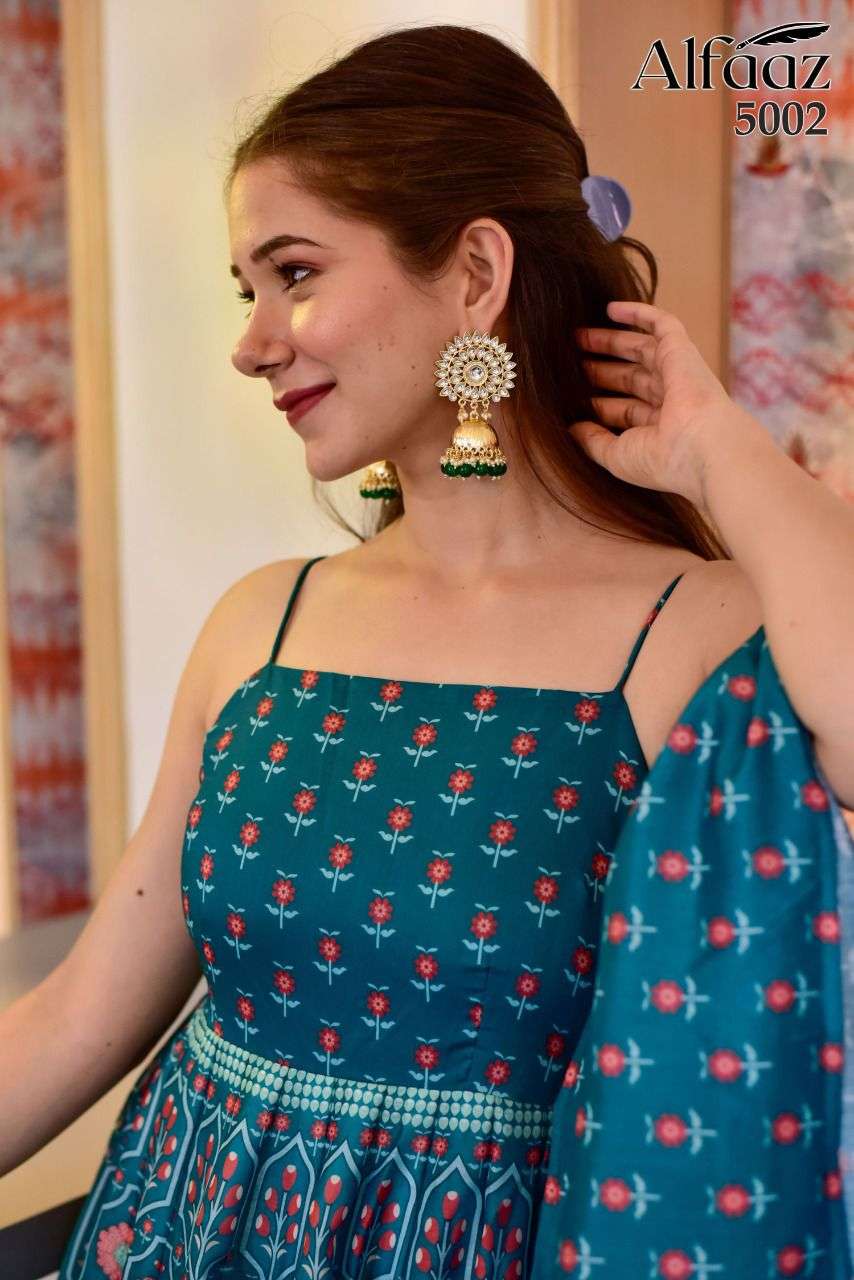 alfaaz vol 5 by stylishta silk cotton long readymade gown with dupatta