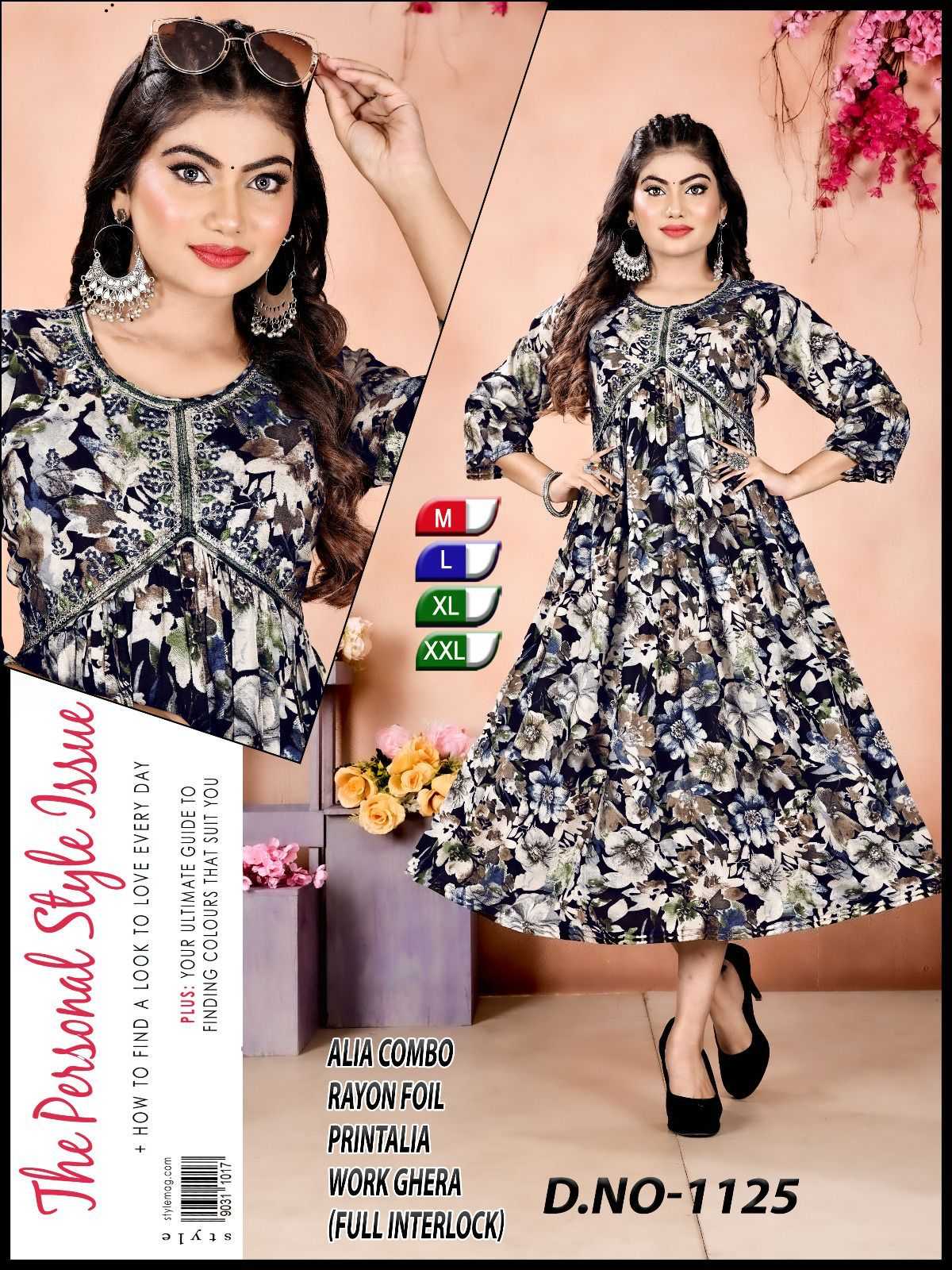 ALIA SERIES-1125.A PREMIUM REYON FOIL PRINT COMBO KURTI