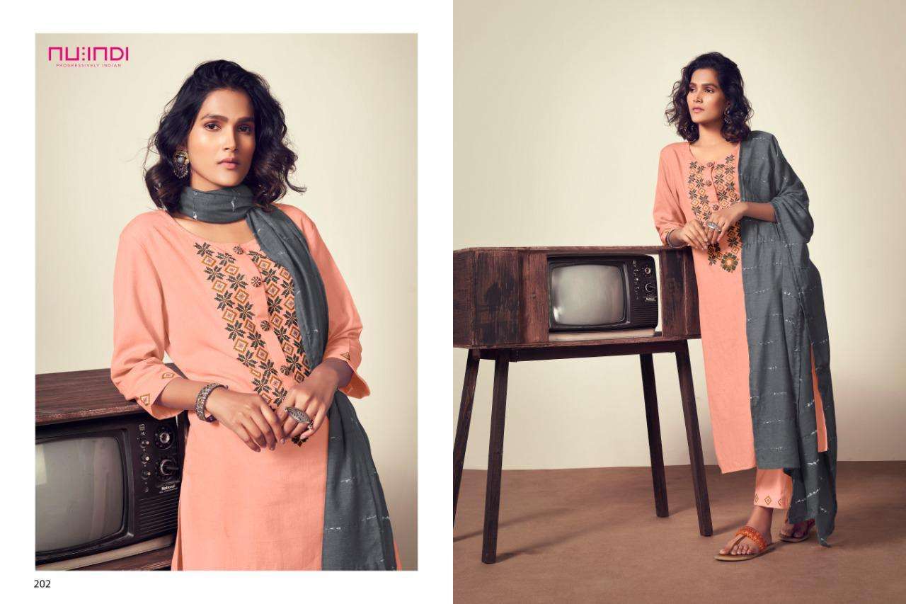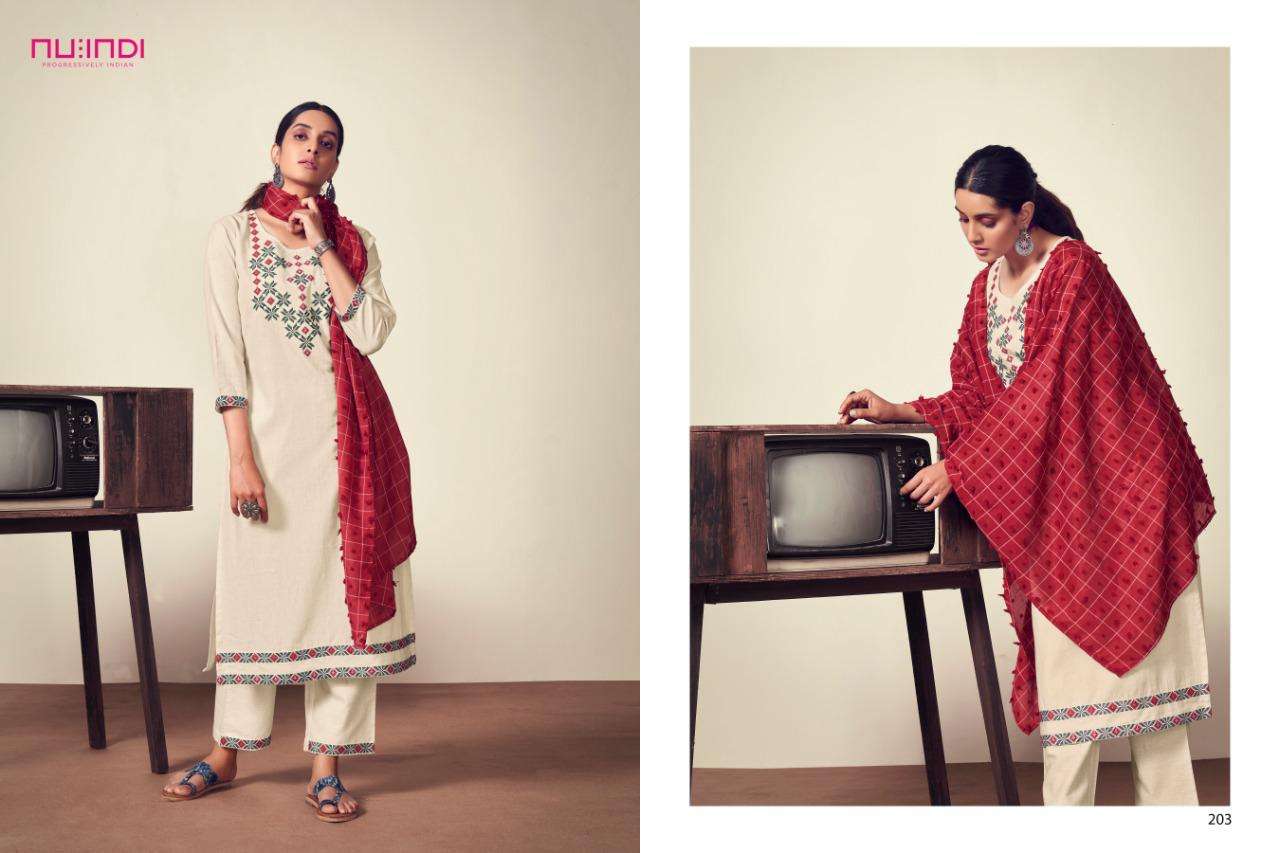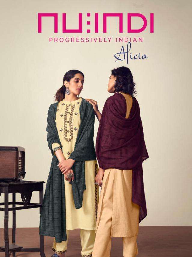 NU-INDI Is back with its lates 3 piece collection, Pure COTTON top and bottom embellished with cross stich embroidery, & Viscose woven Dupattas Catlog Name - Alicia Fabric â PURE COTTON Rate - 1049/- No. Of Pieces â 6 Sizes Available - L, XL, XXL Full Set only. Today Delivery. GST extra |