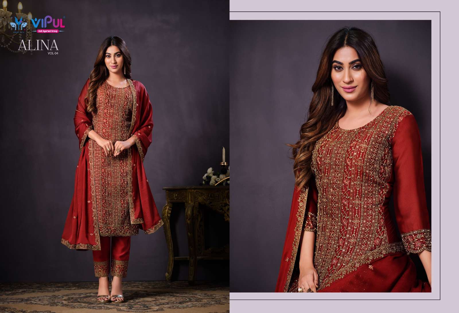 alina vol 4 by vipul designer heavy embroidery salwar suit collection