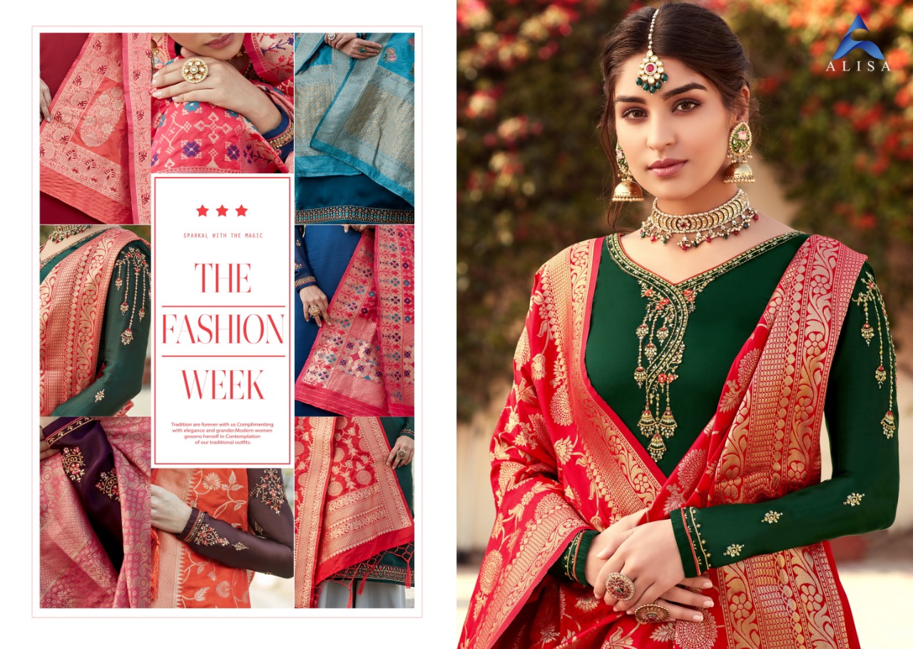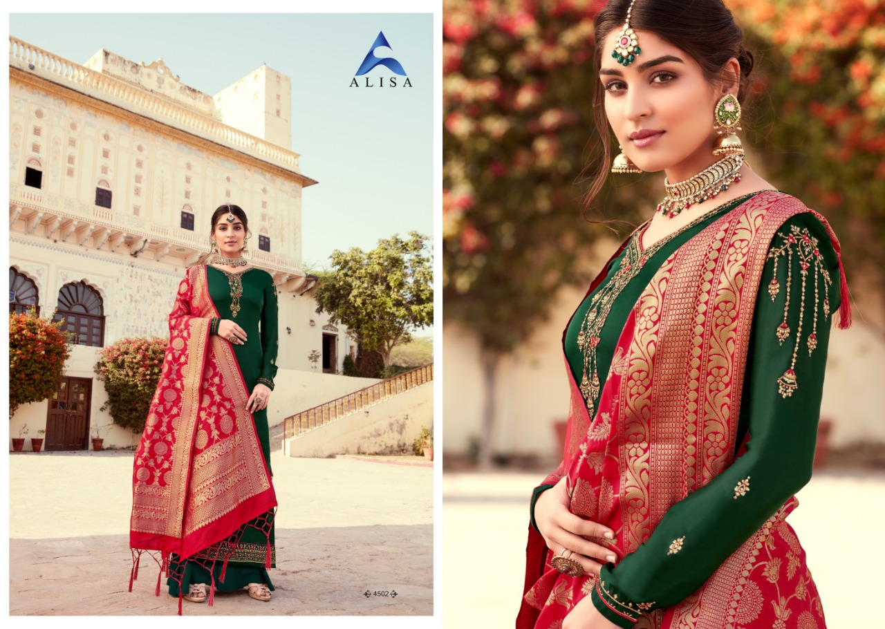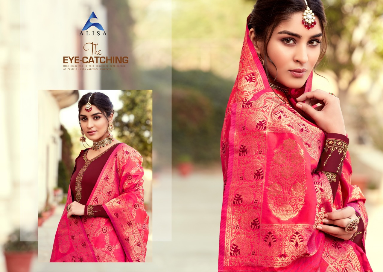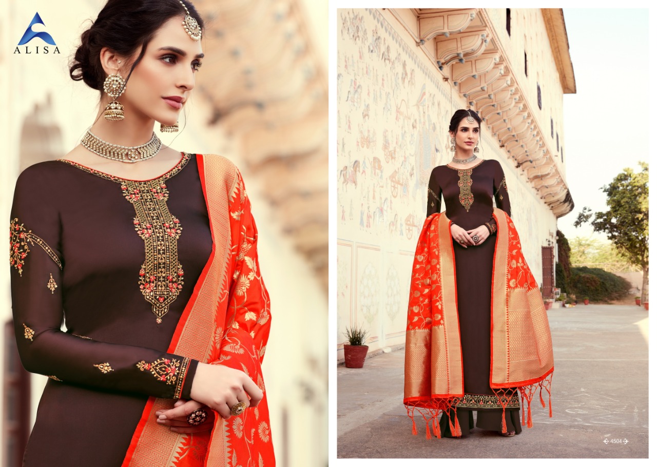 Alisa Amira Vol 13 Satin Georgette Salwar Suit With Banaras Dupatta
