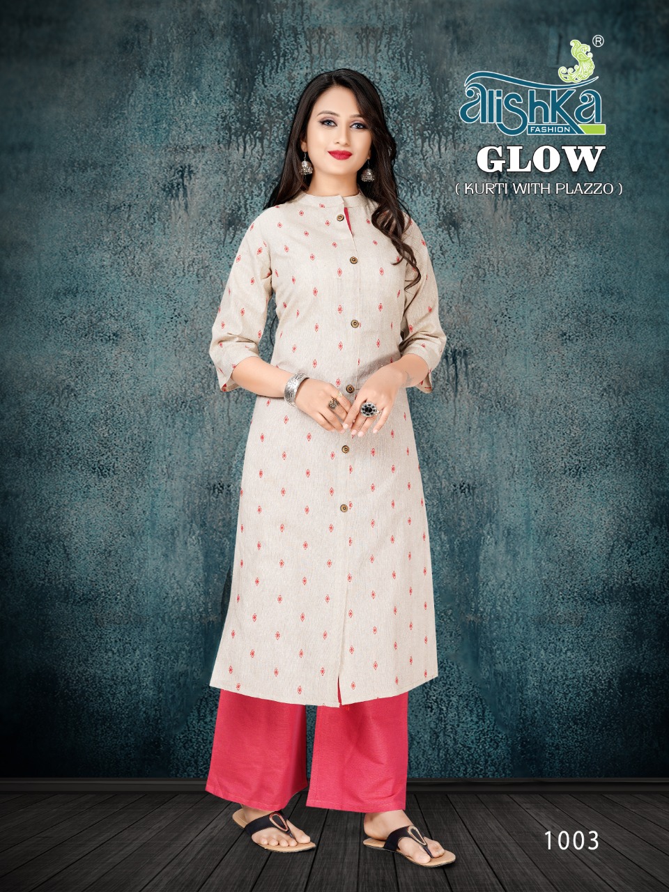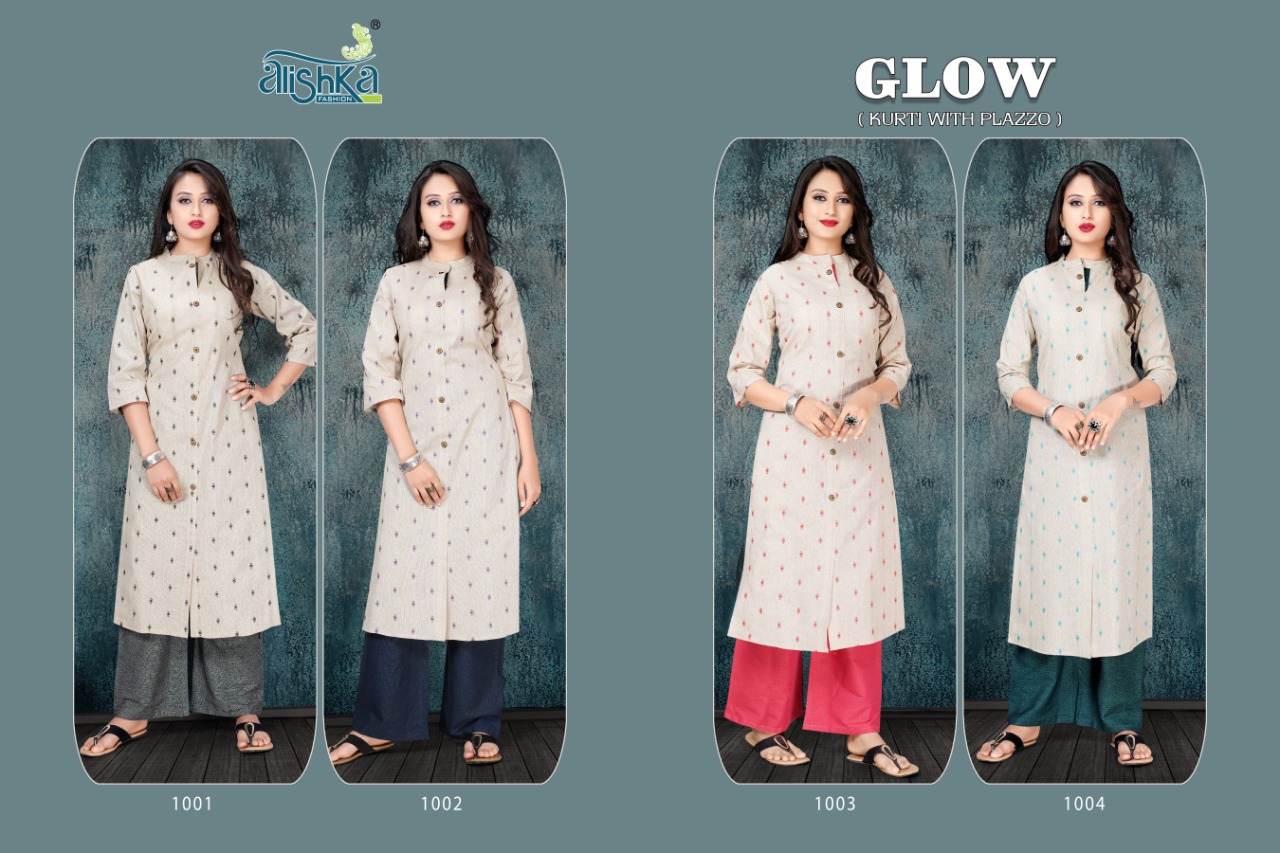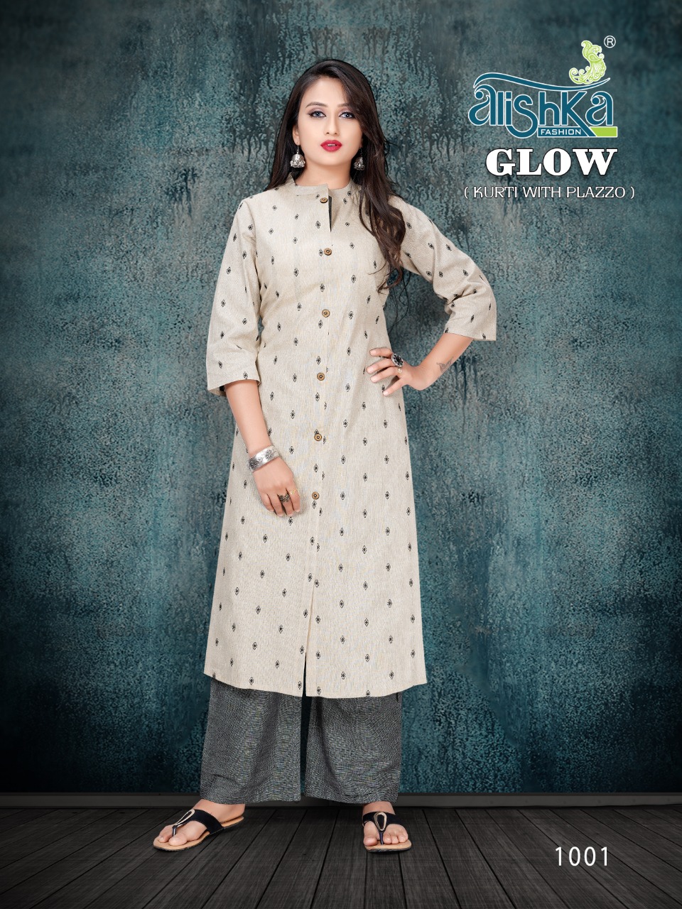 Alishka Fashion Glow Cotton Classy Look Kurti With Plazzo Wholesaler