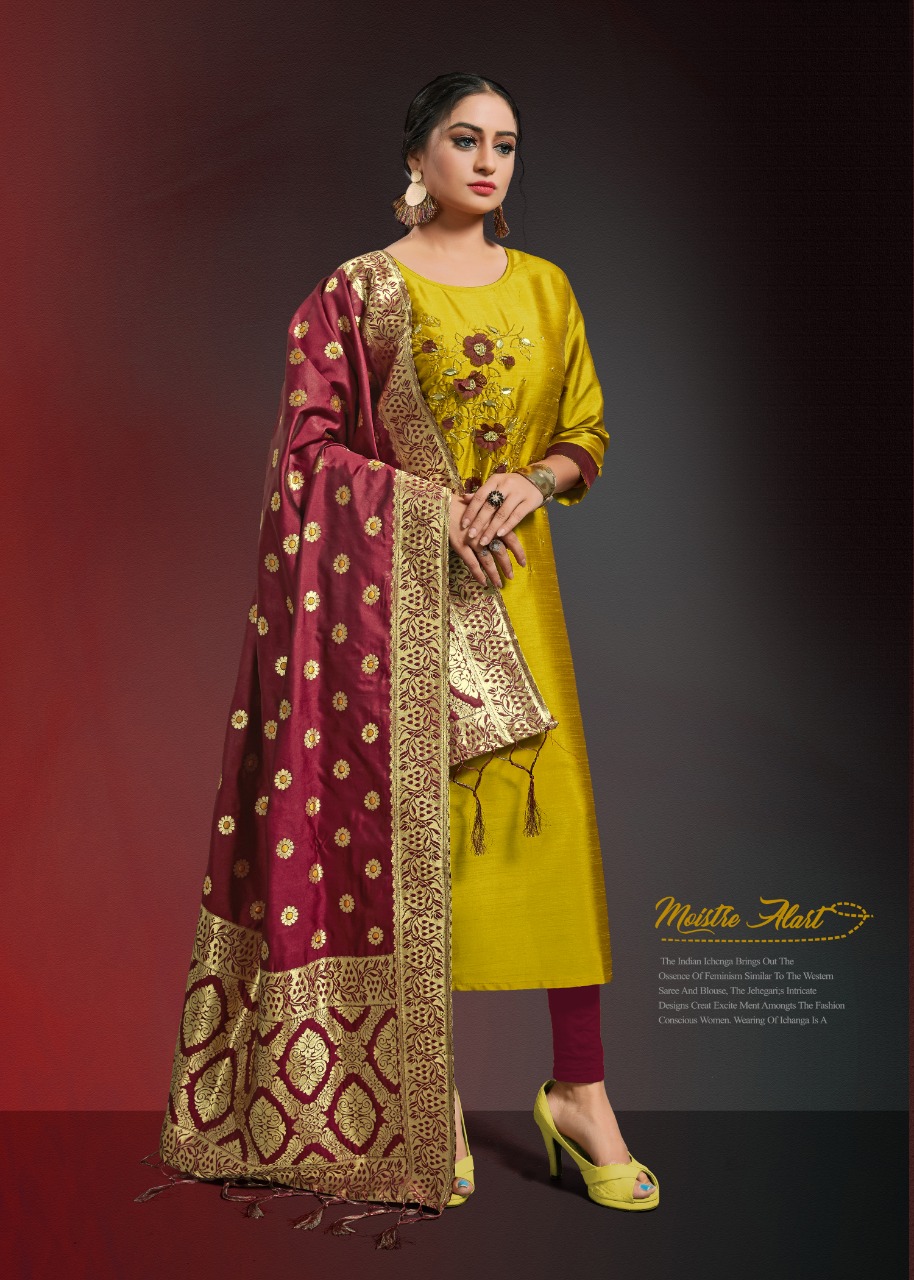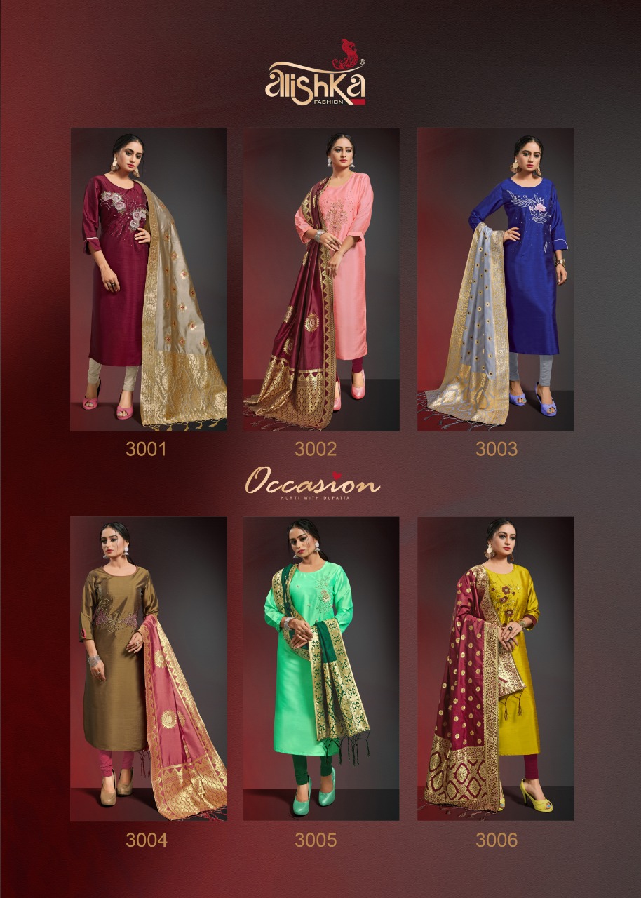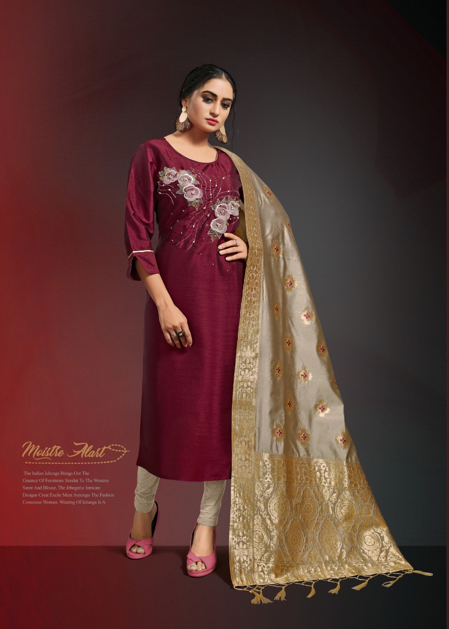 Alishka Fashion Launch Occasion Vol 3 Silk Stylish Traditional Wear Kurti With Banarasi Dupatta