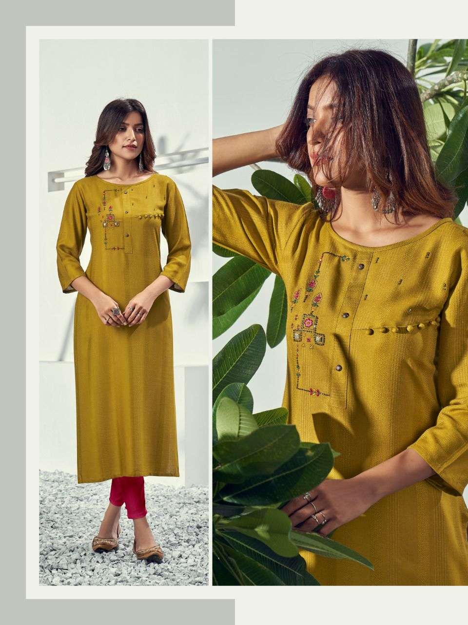 Alivia By Riya Rayon Work Fancy Kurtis