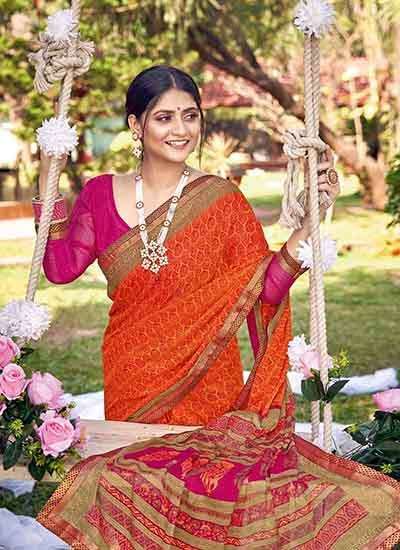 Brand = ANTRA ALFINO CHIFFON PRINT LACE SAREE |