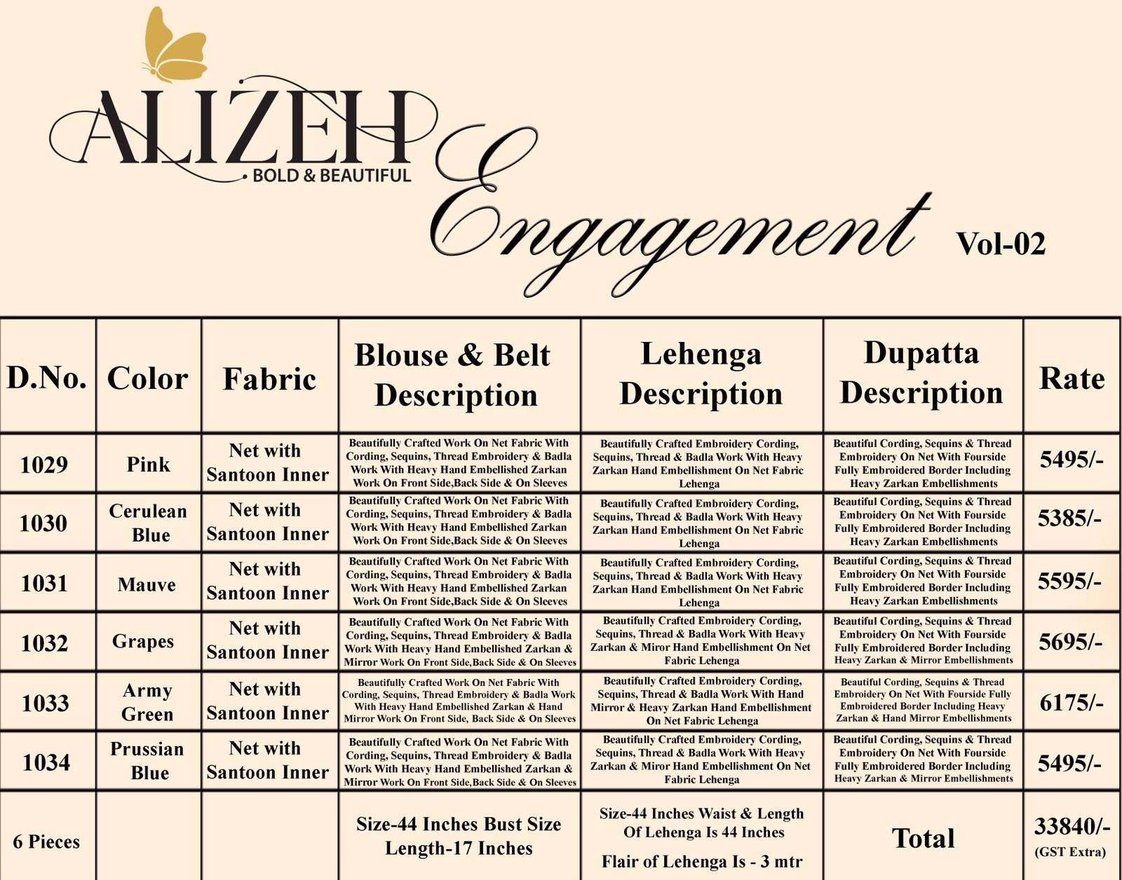 ALIZEH OFFICIAL Presenting ENGAGEMENT VOL 2 Exclusive And Fancy Collection With Belt For Wedding And Festival Season New Colours With Extraordinary Designs And Hand Work Embellishments Delivery-Starts After 2-3 Days |