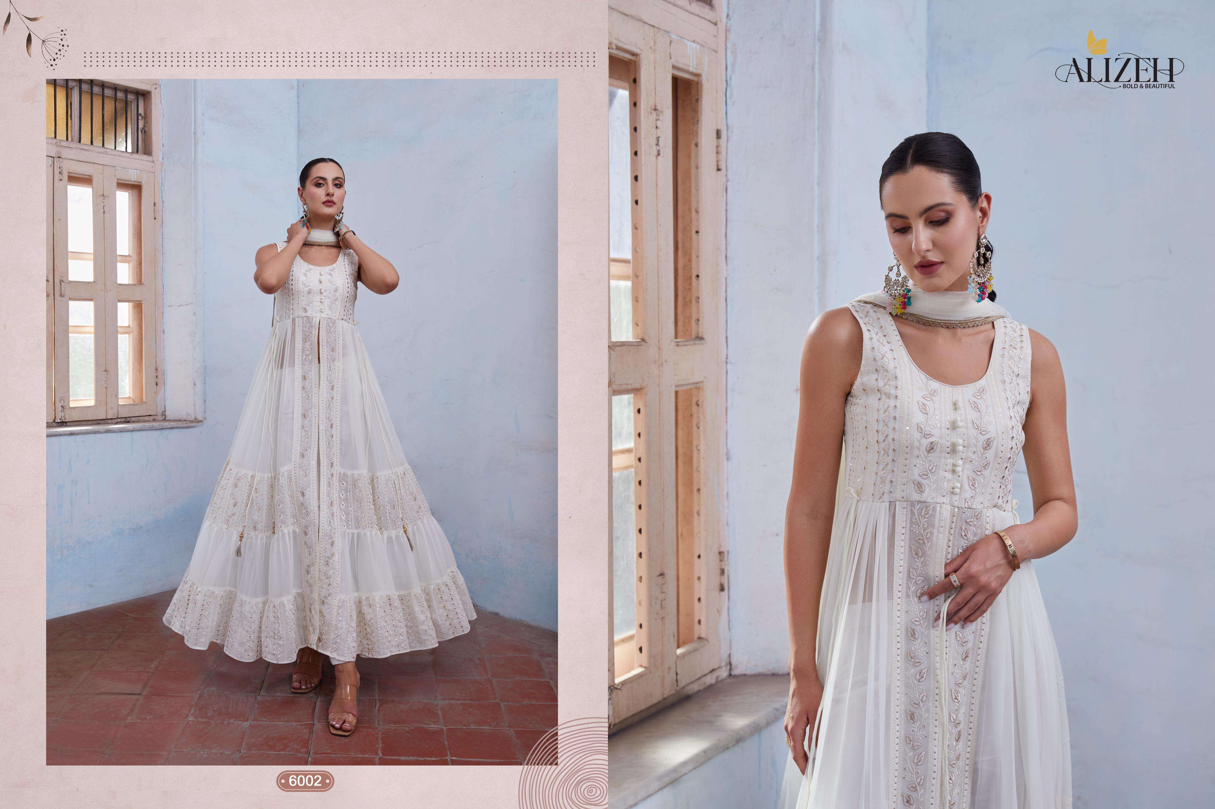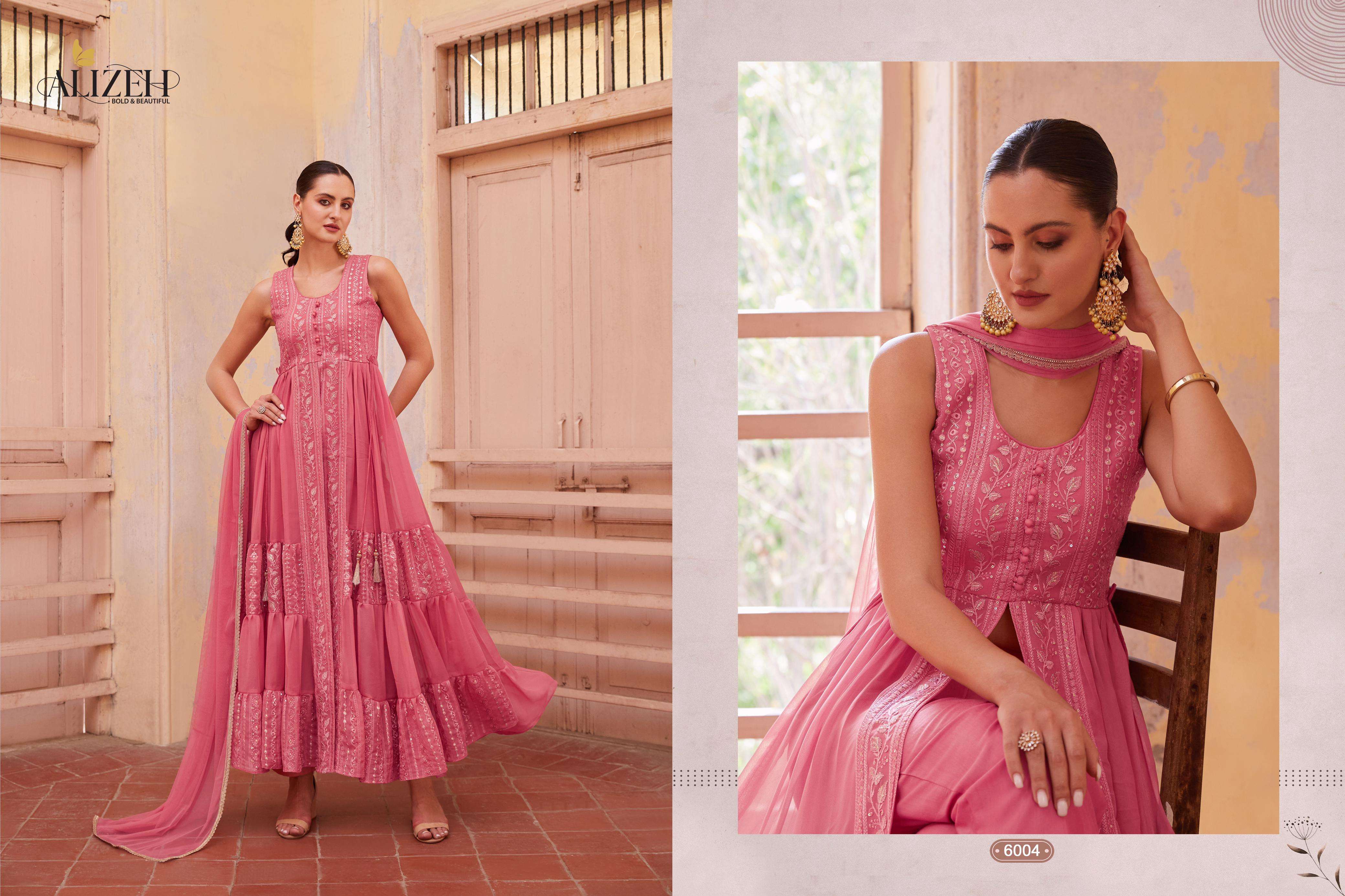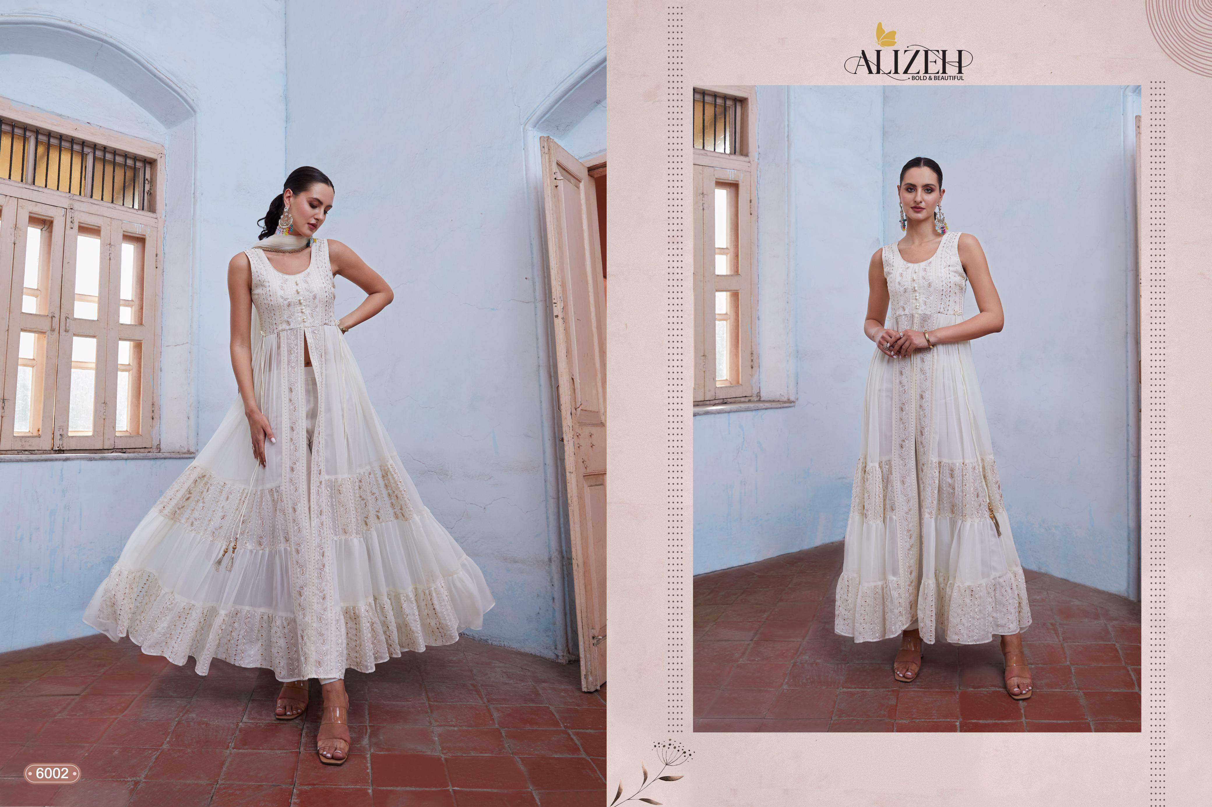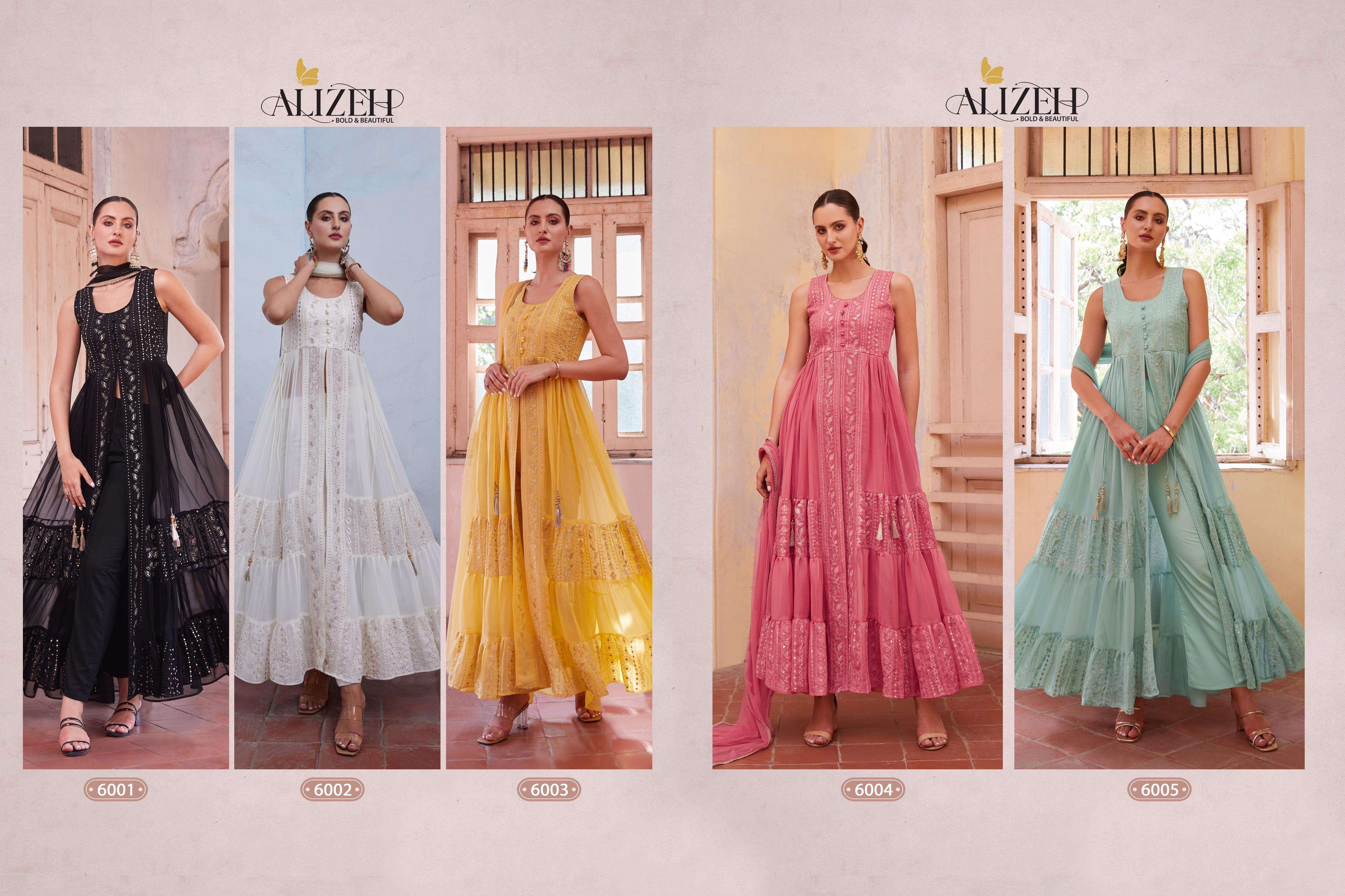 Alizeh Gulbahar Vol 4 Elements of traditional Indian clothing with Western styles🦋✨ Unique and contemporary outfits👌 Launching our full frilled long gowns in five vibrant Colors and absolutely stunning design with front slit. Readymade Free Size Outfit Without Sleeves D.NO 6001 to 6005 Book your orders now! Note :- M TO XXL ON BOOKING RATE 2995/- |