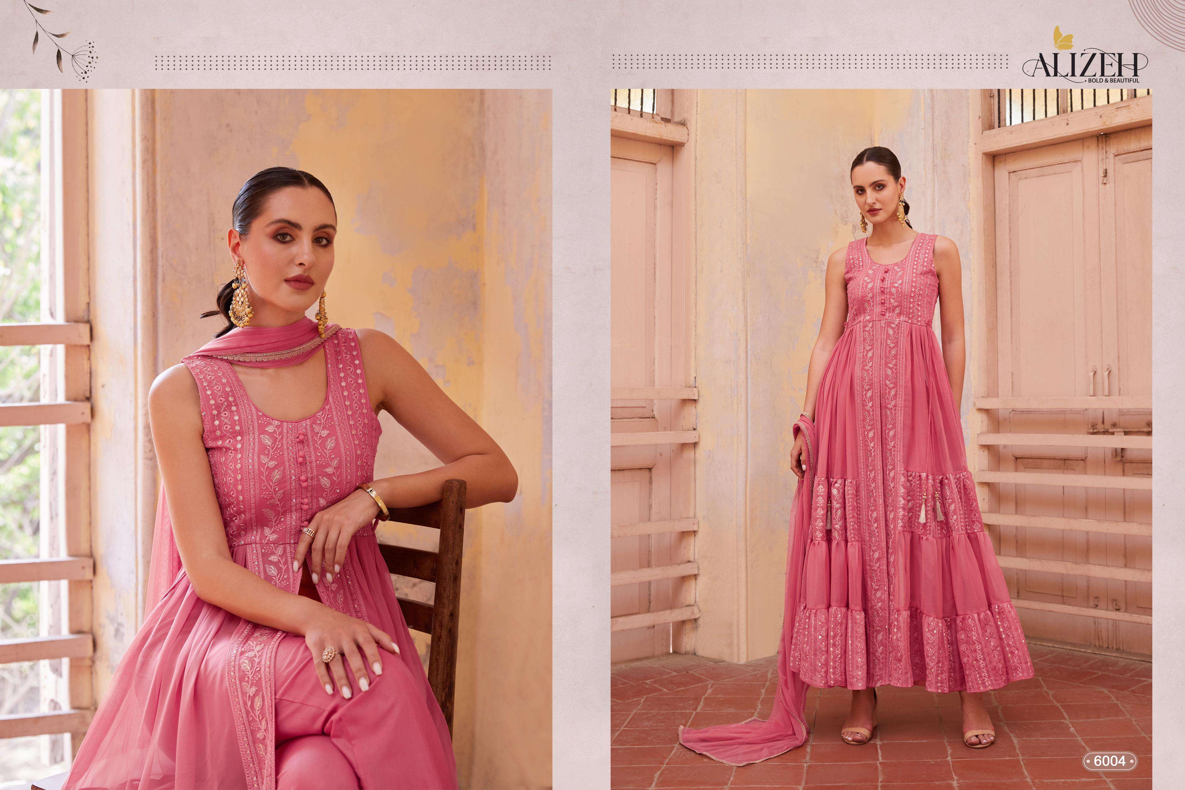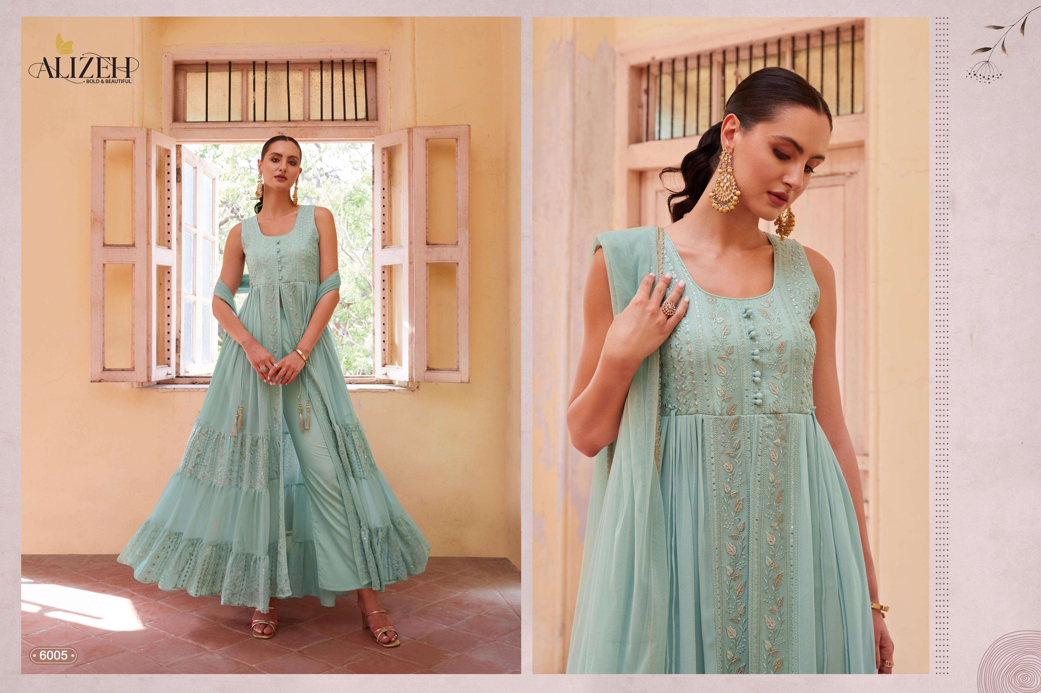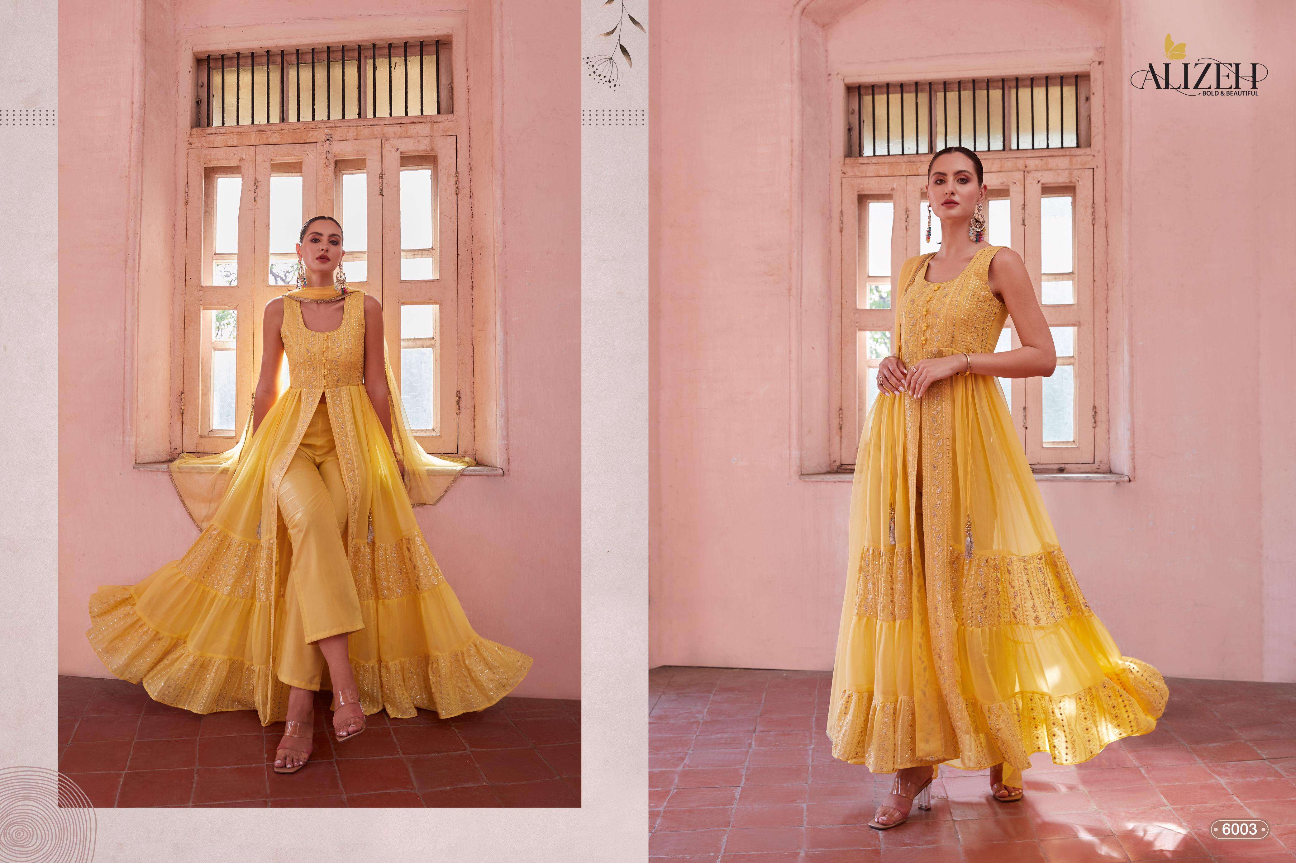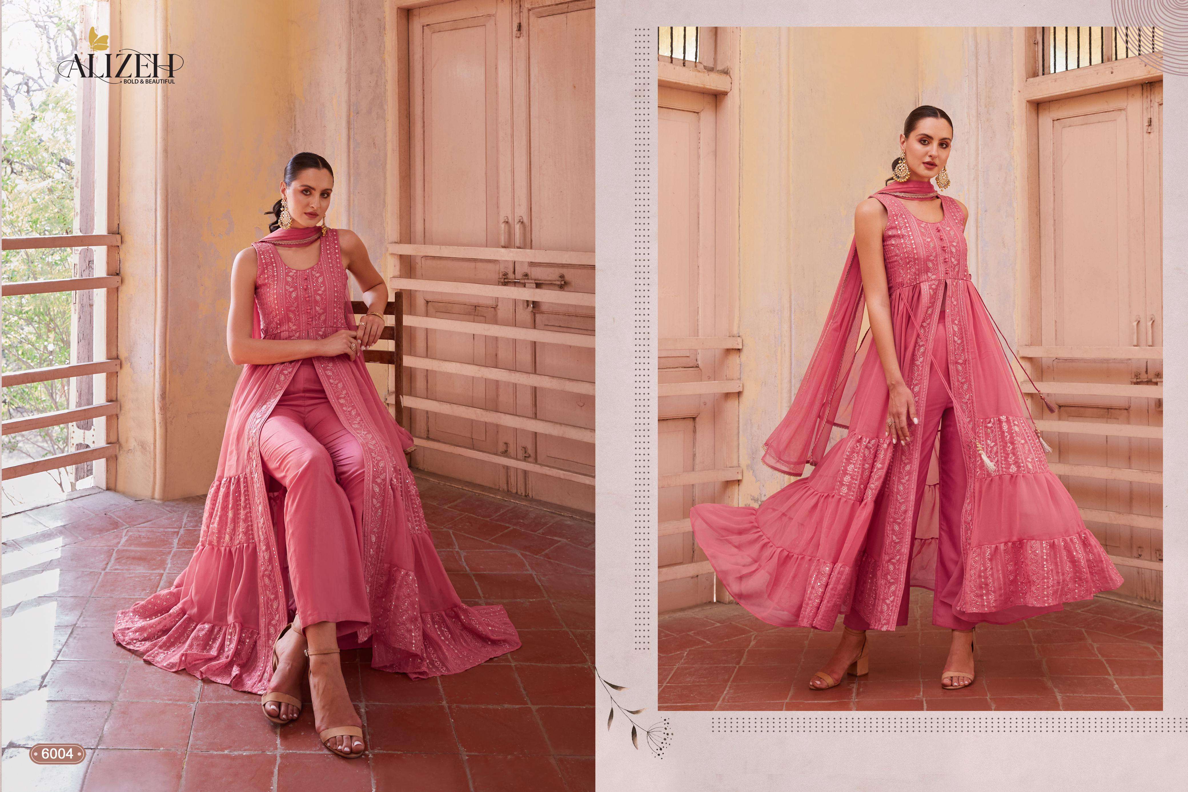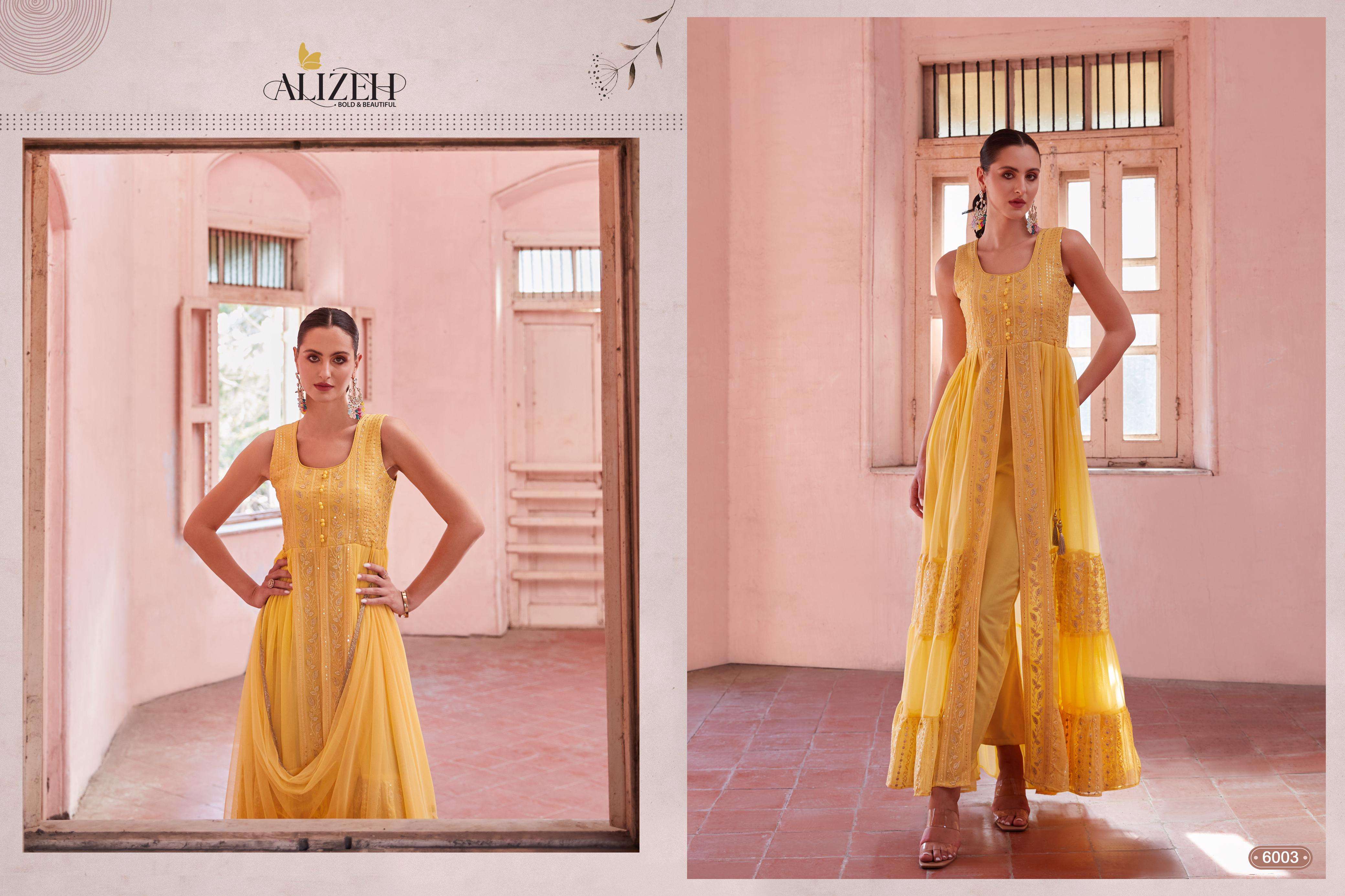 Alizeh Gulbahar Vol 4 Elements of traditional Indian clothing with Western styles🦋✨ Unique and contemporary outfits👌 Launching our full frilled long gowns in five vibrant Colors and absolutely stunning design with front slit. Readymade Free Size Outfit Without Sleeves D.NO 6001 to 6005 Book your orders now! Note :- M TO XXL ON BOOKING RATE 2995/- |