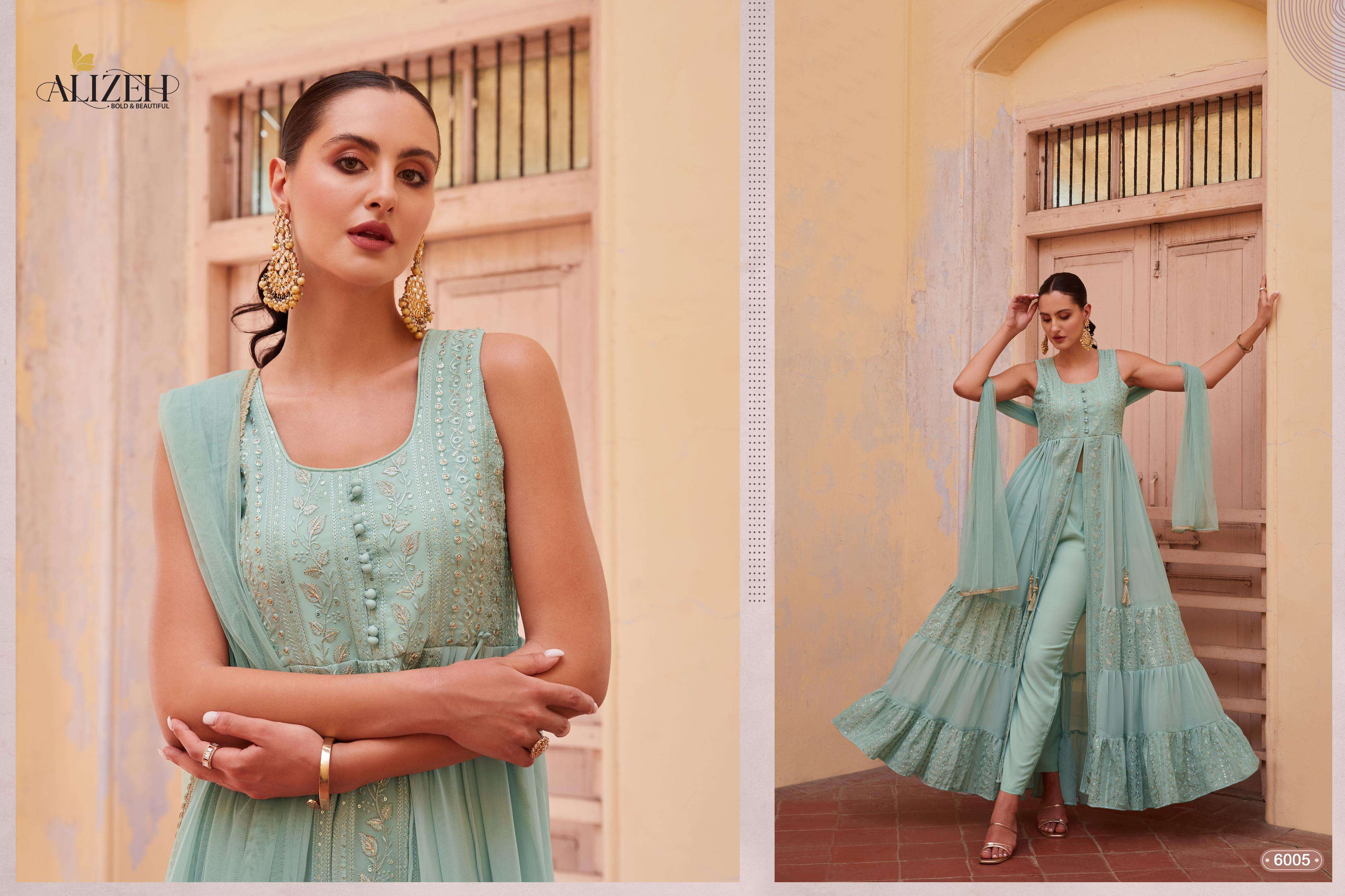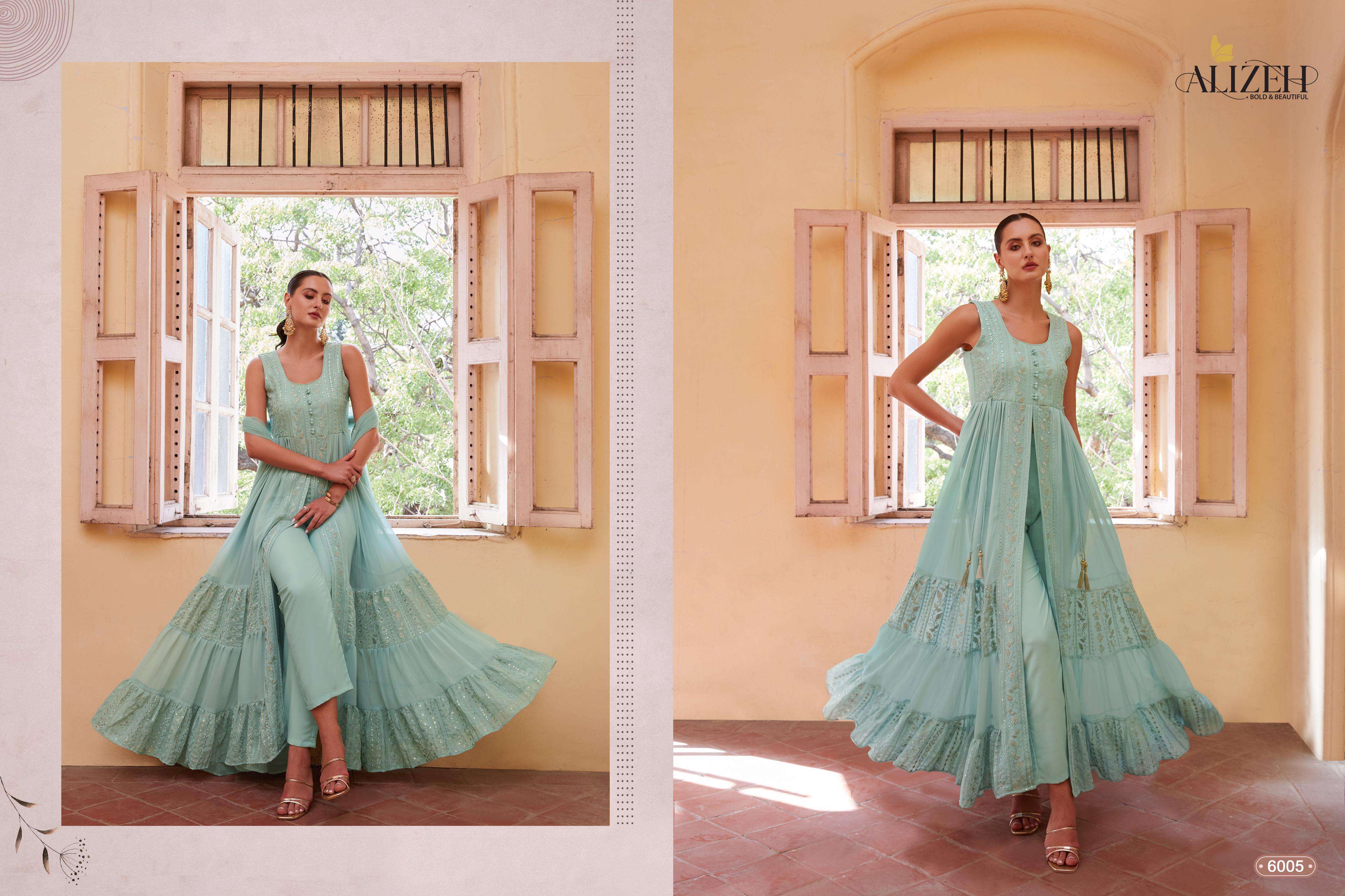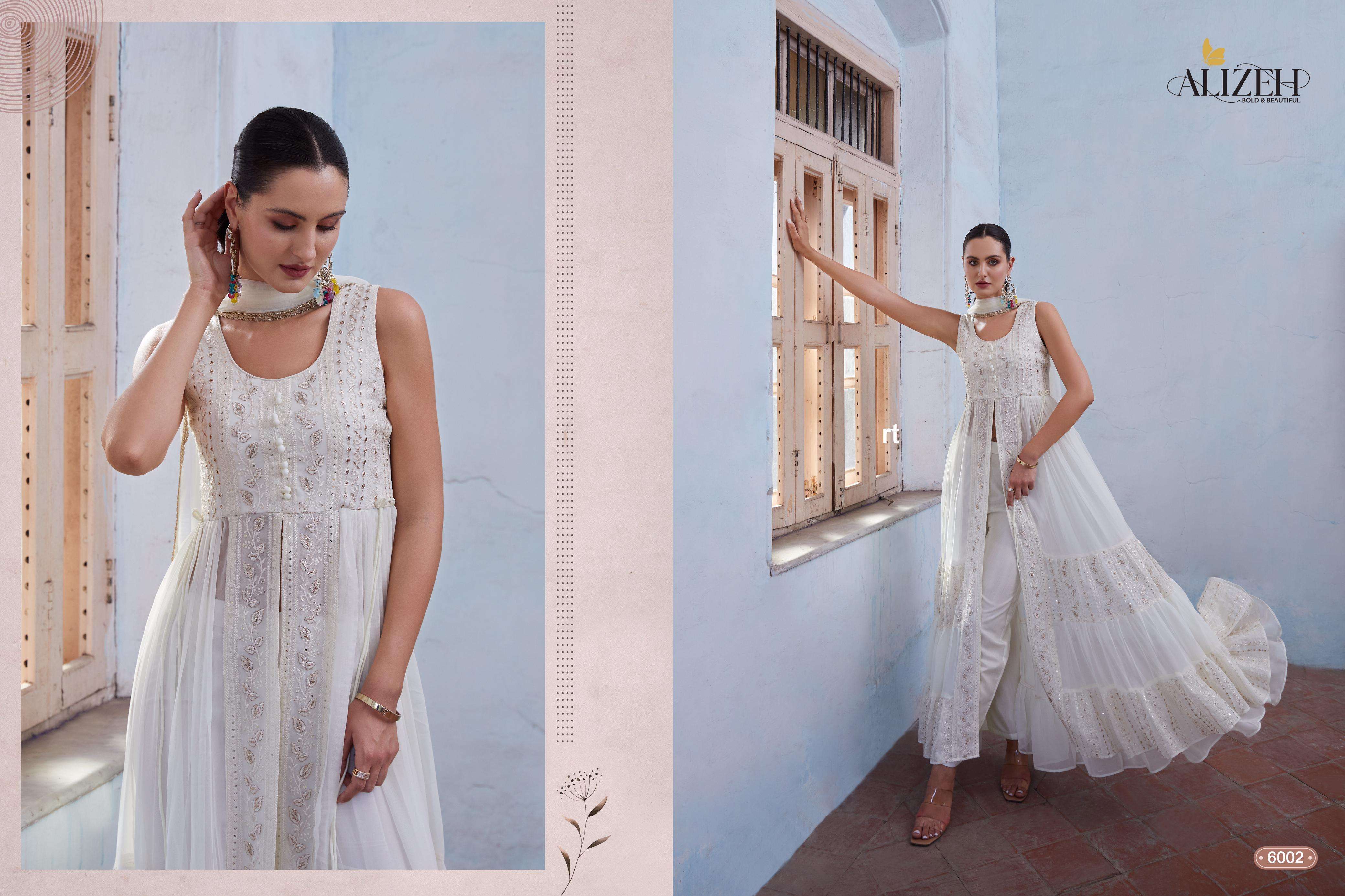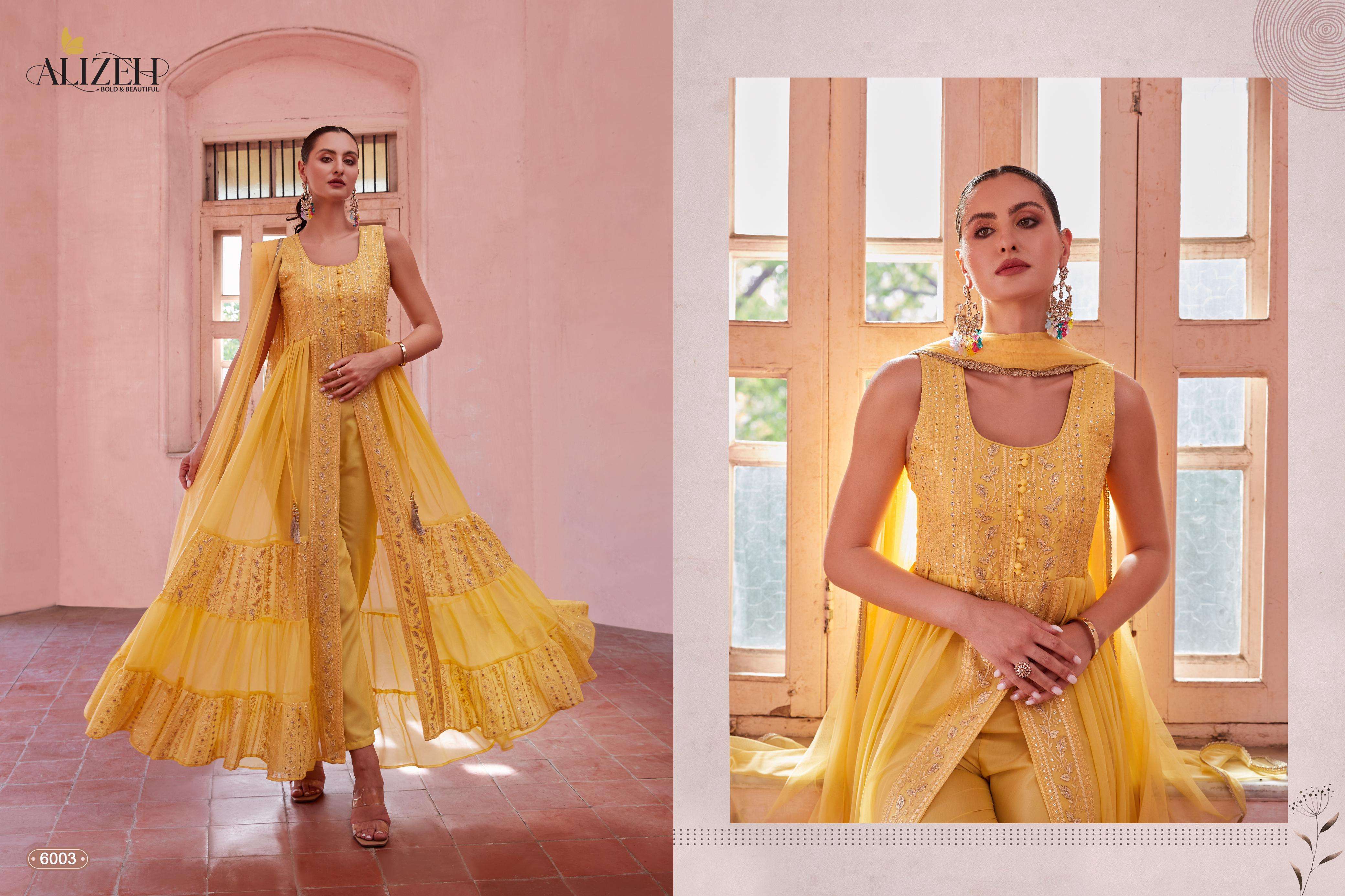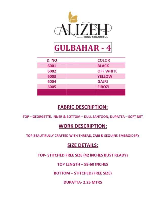 Alizeh Gulbahar Vol 4 Elements of traditional Indian clothing with Western styles🦋✨ Unique and contemporary outfits👌 Launching our full frilled long gowns in five vibrant Colors and absolutely stunning design with front slit. Readymade Free Size Outfit Without Sleeves D.NO 6001 to 6005 Book your orders now! Note :- M TO XXL ON BOOKING RATE 2995/- |