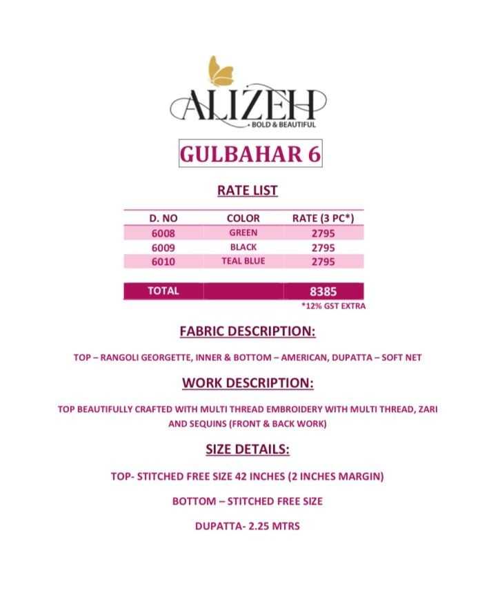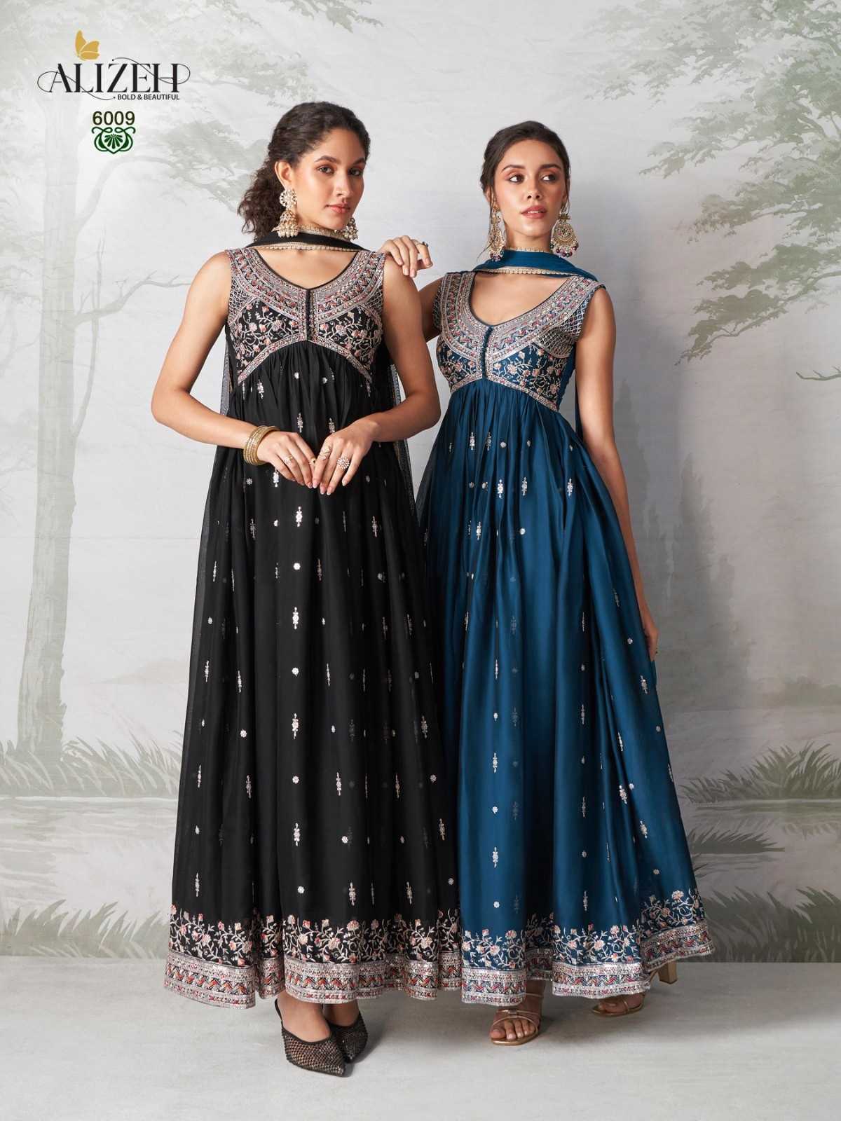 alizeh gulbahar vol 6 6008 - 6010 readymade traditional indian gown set