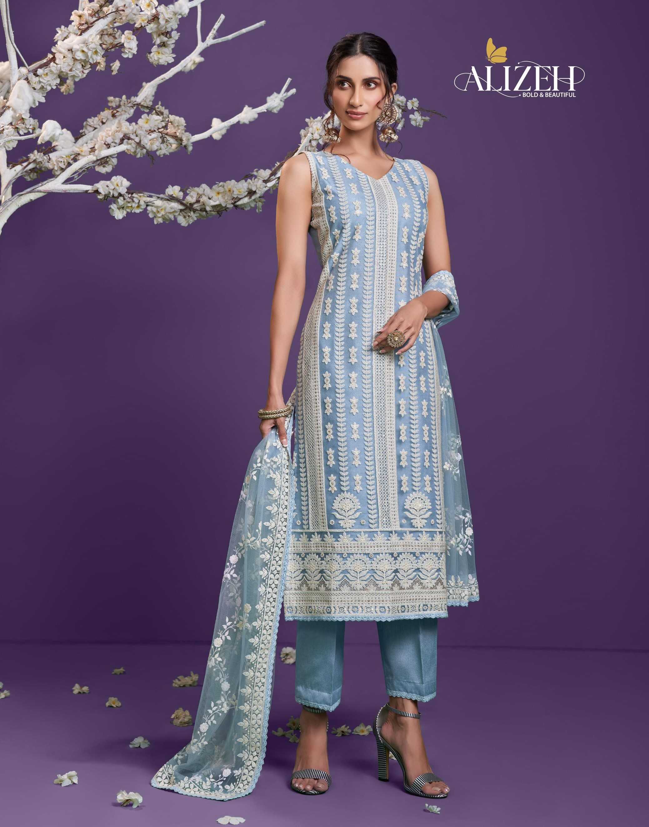 alizeh official lucknowi 2024 & 2025 butterfly net stylish unstitch salwar suit
