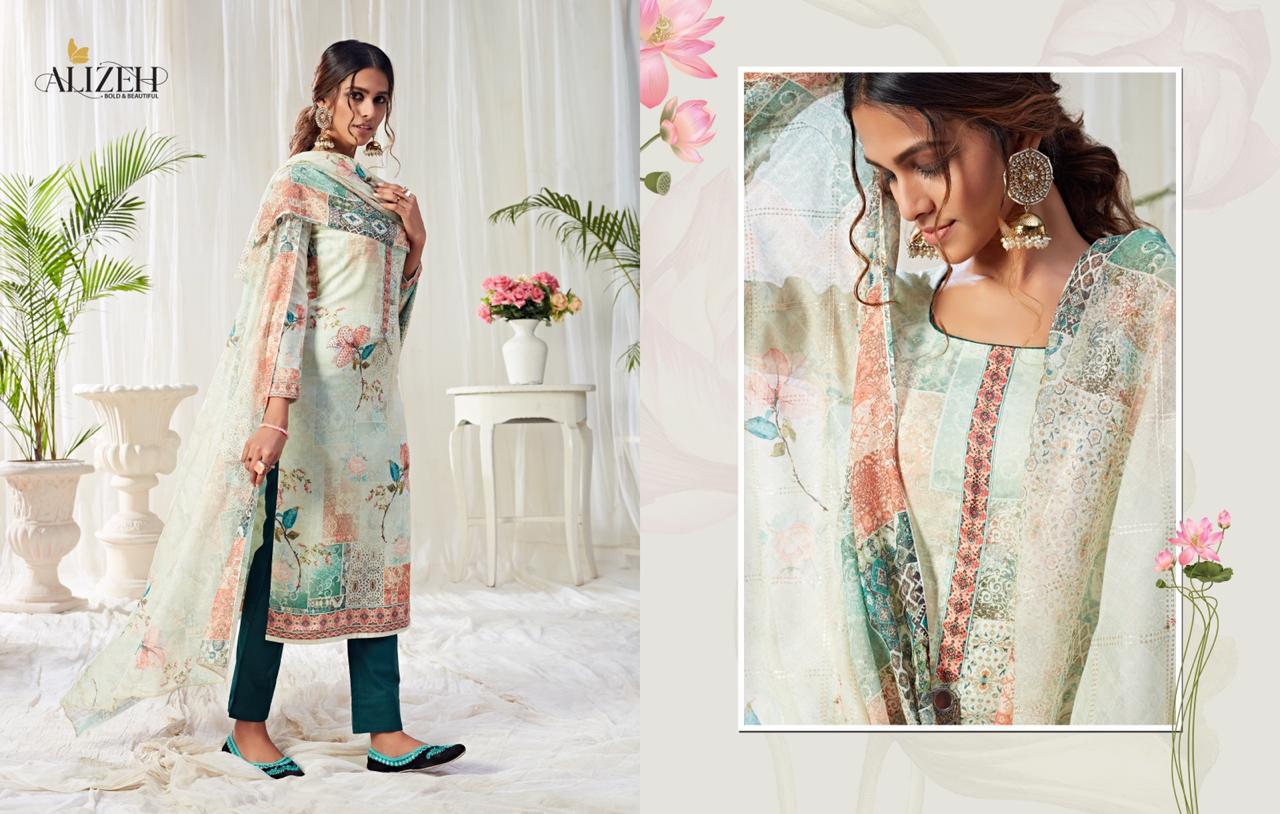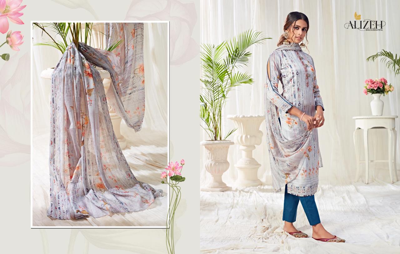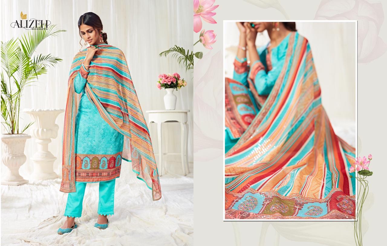 Alizeh Suit Presents Latest Collection Launched on 17-09-2020. Presenting Beautiful collection of 8 PCS with Unstitched .