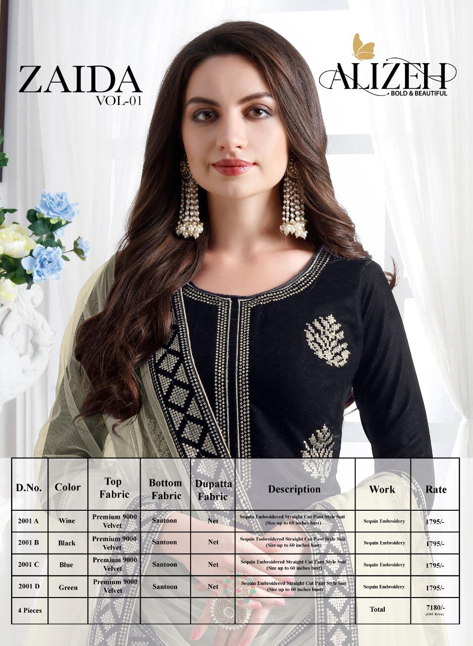 Alizeh Present Zaida Vol 1 Premium Velvet Party Wear Designer Salwar Suit